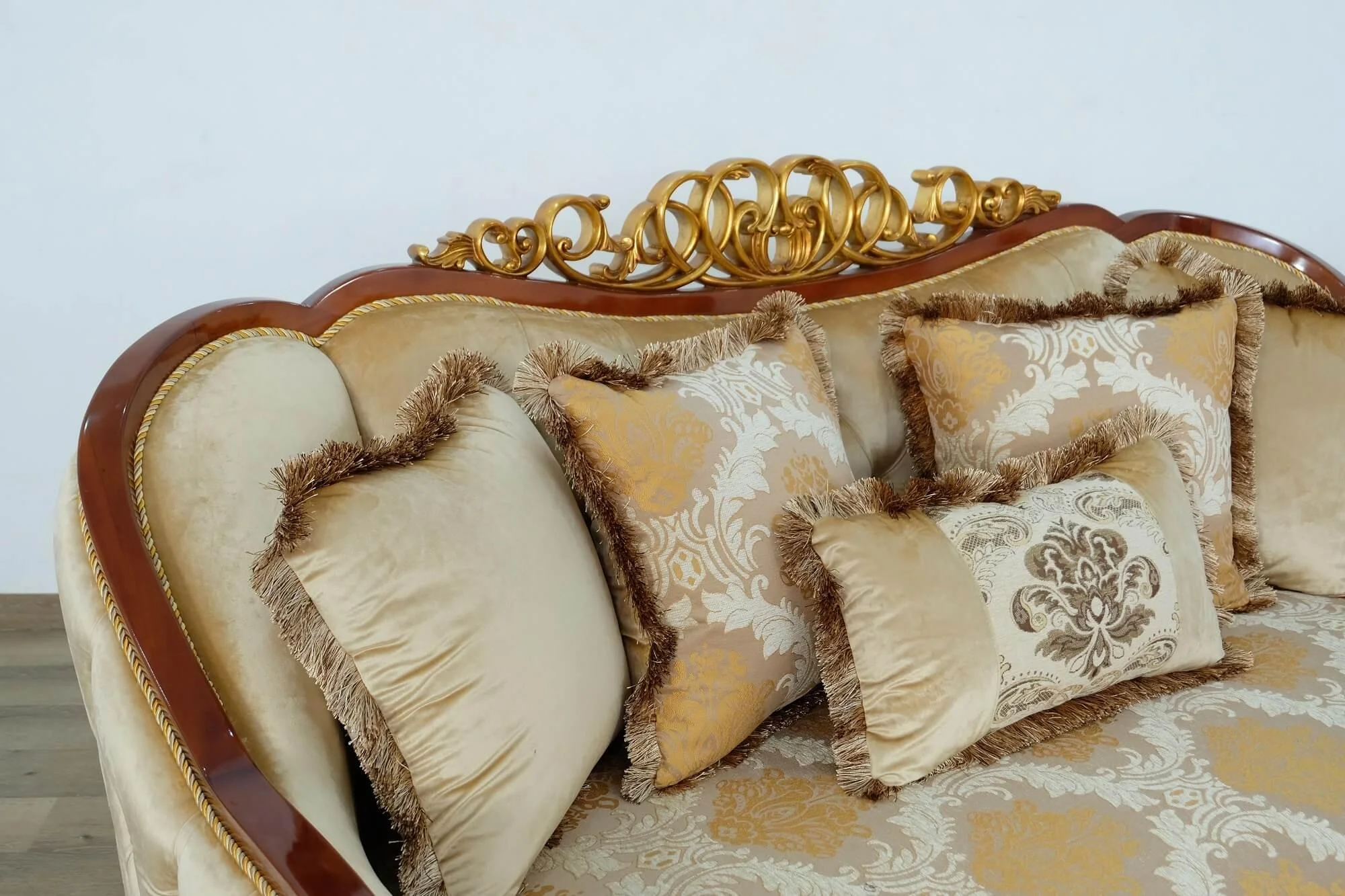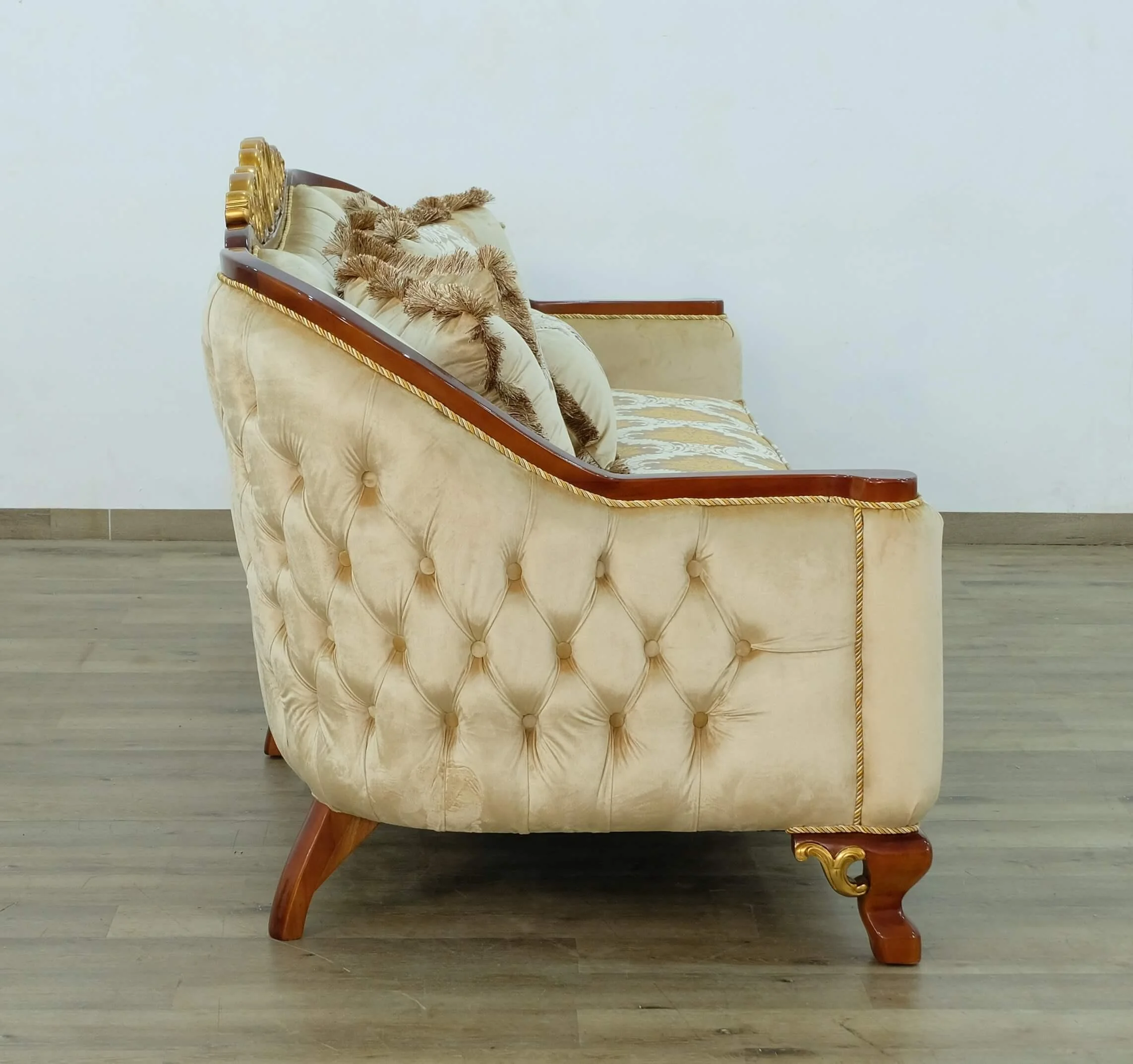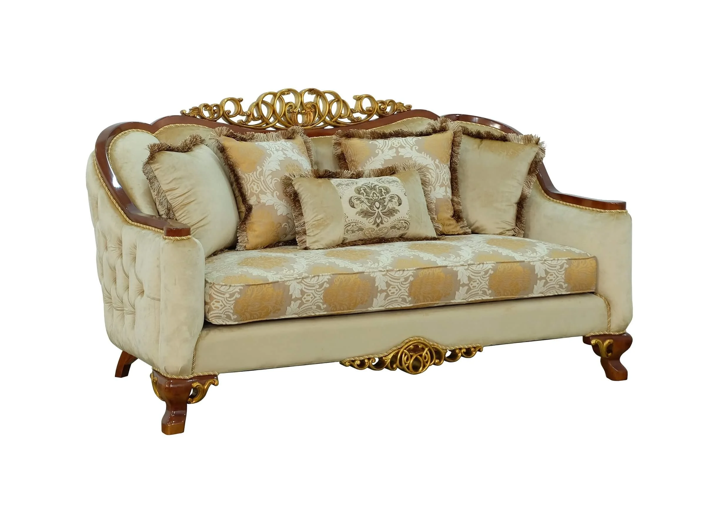 Luxury Brown & Gold Wood Trim ANGELICA II Loveseat EUROPEAN FURNITURE Classic