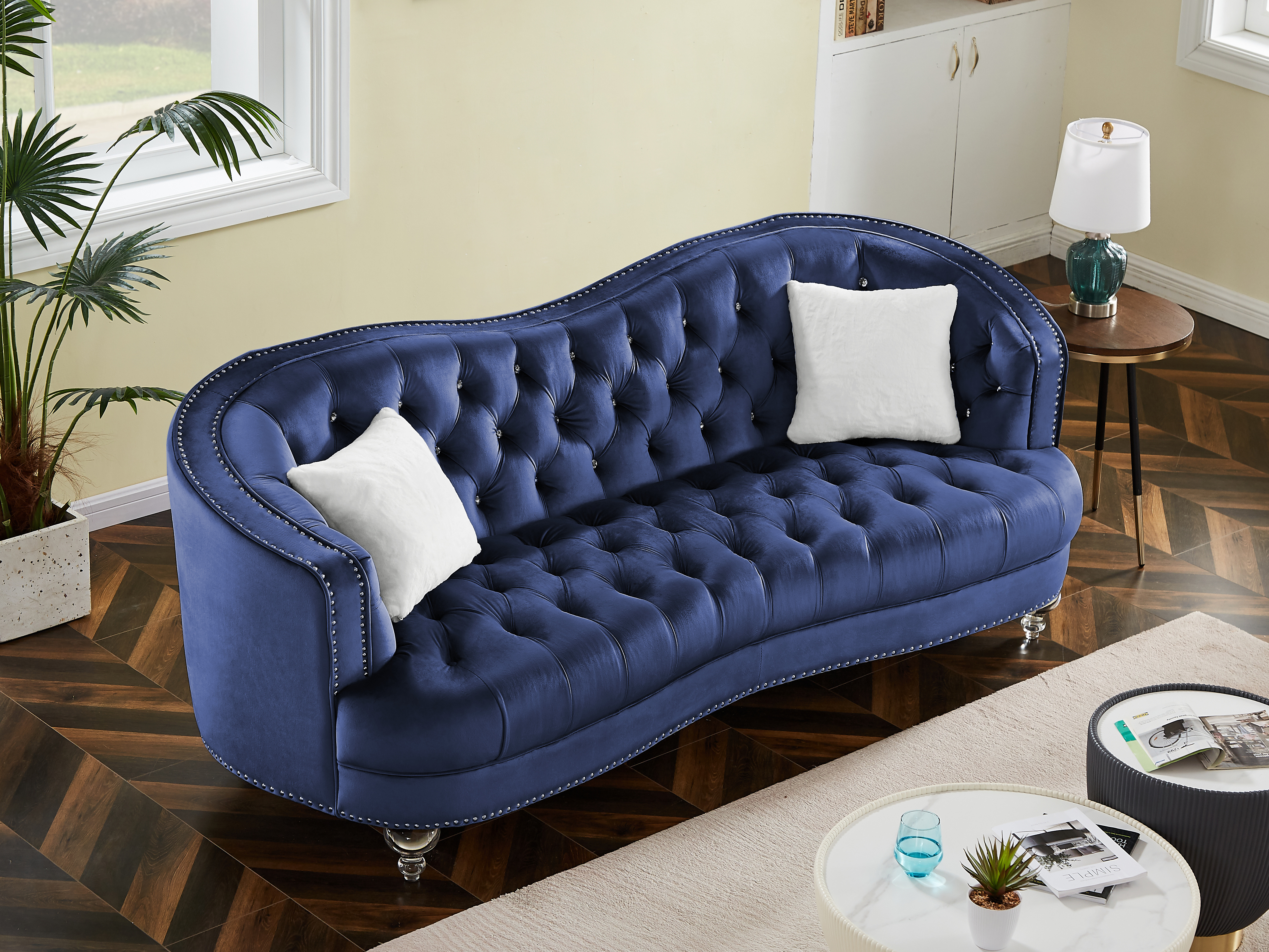 LANTRO JS 1757 Navy Blue Light Luxury Crystal Feet Tufted 3P Sofa