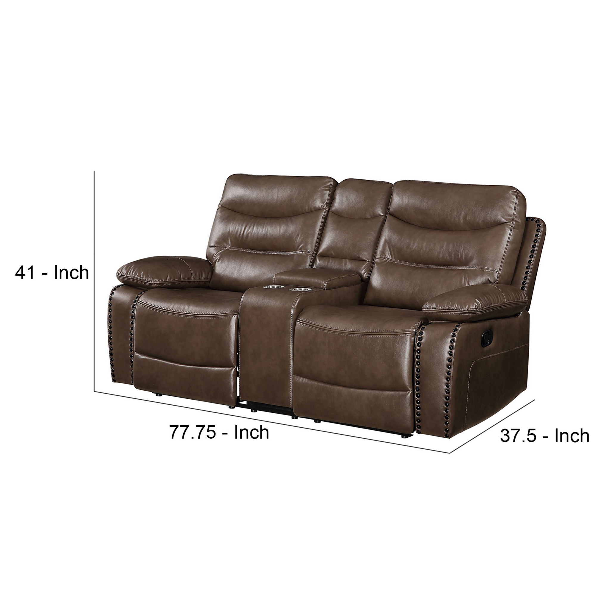 Benjara Motion Loveseat with Leatherette Upholstery and Tufted Seat, Brown