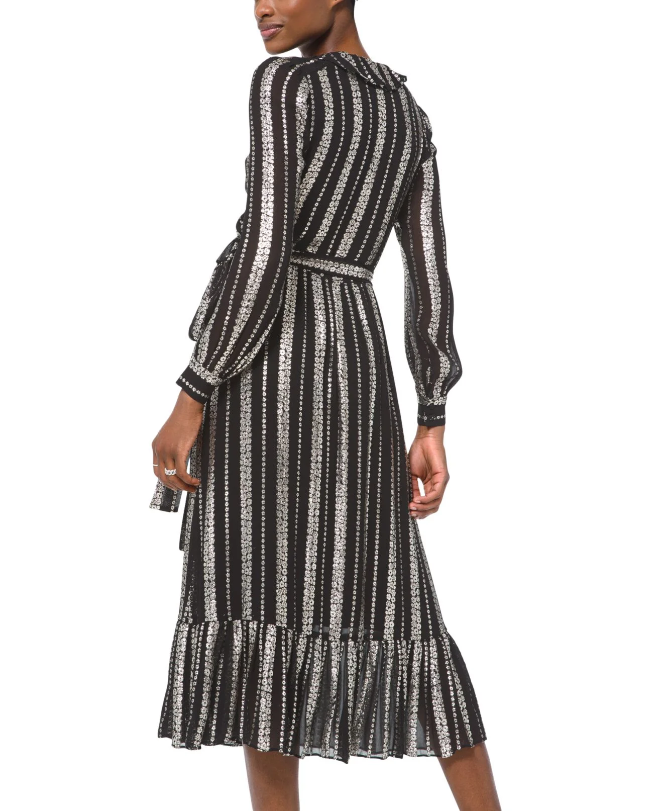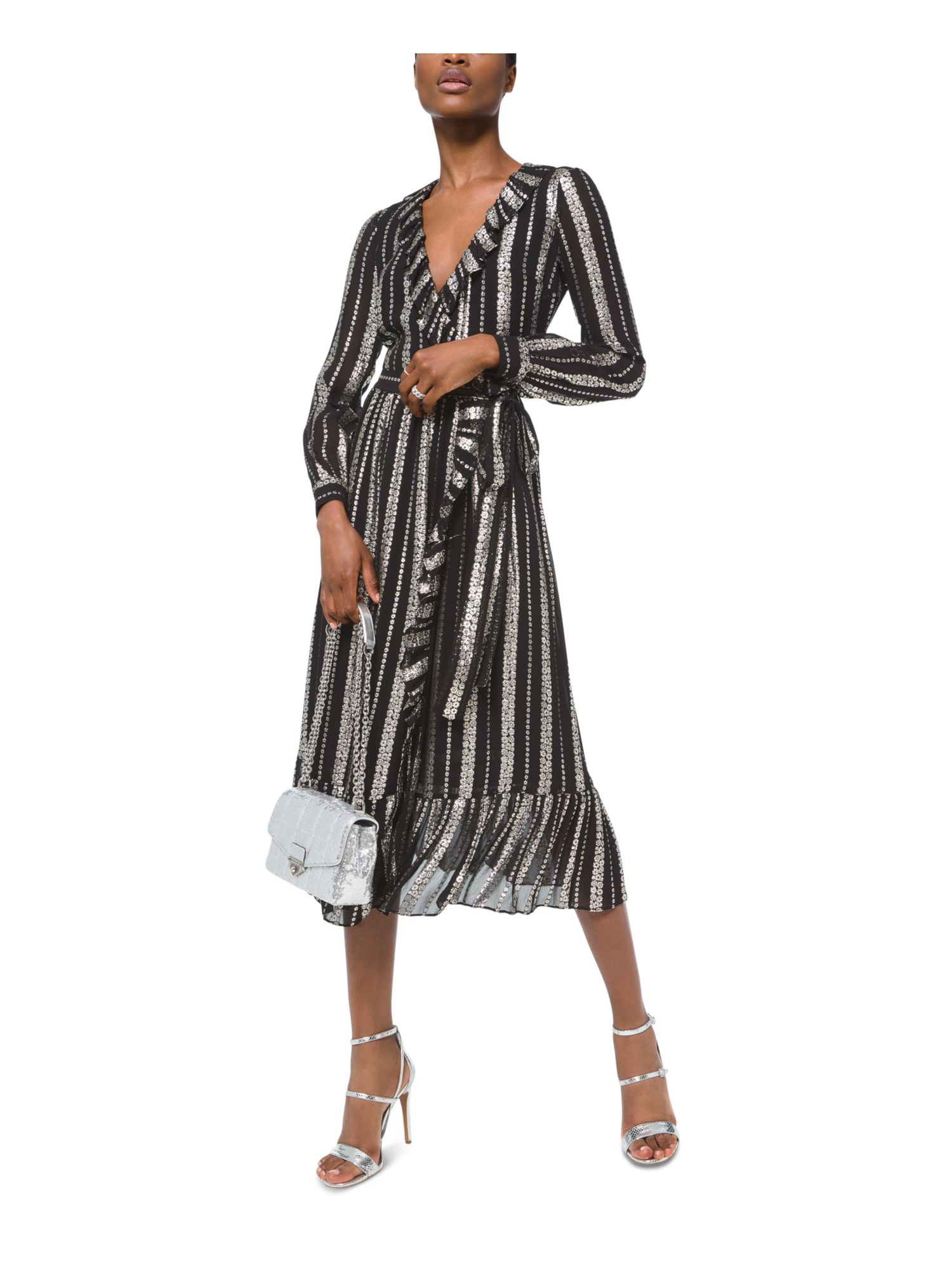 MICHAEL KORS Womens Silver Floral Long Sleeve Midi Wrap Dress Size: XL