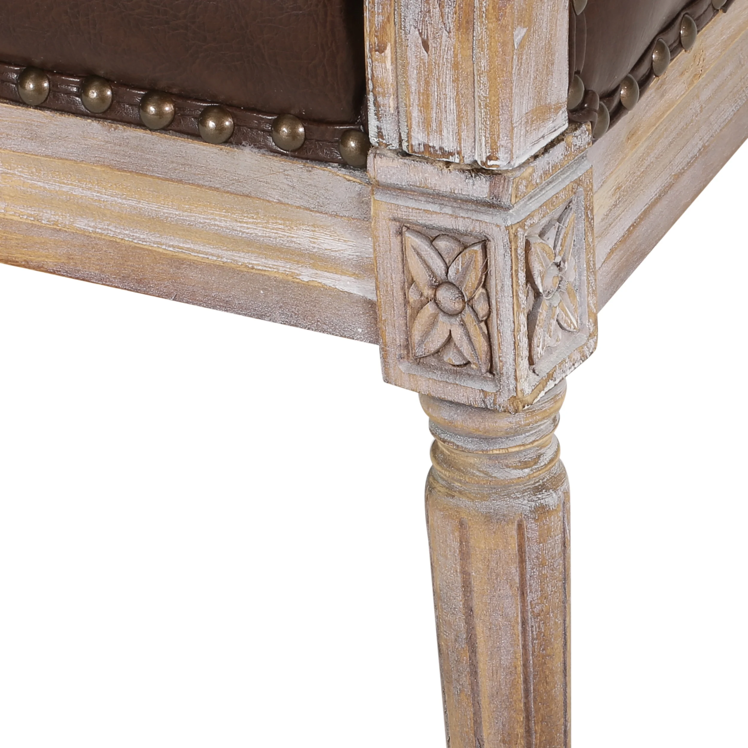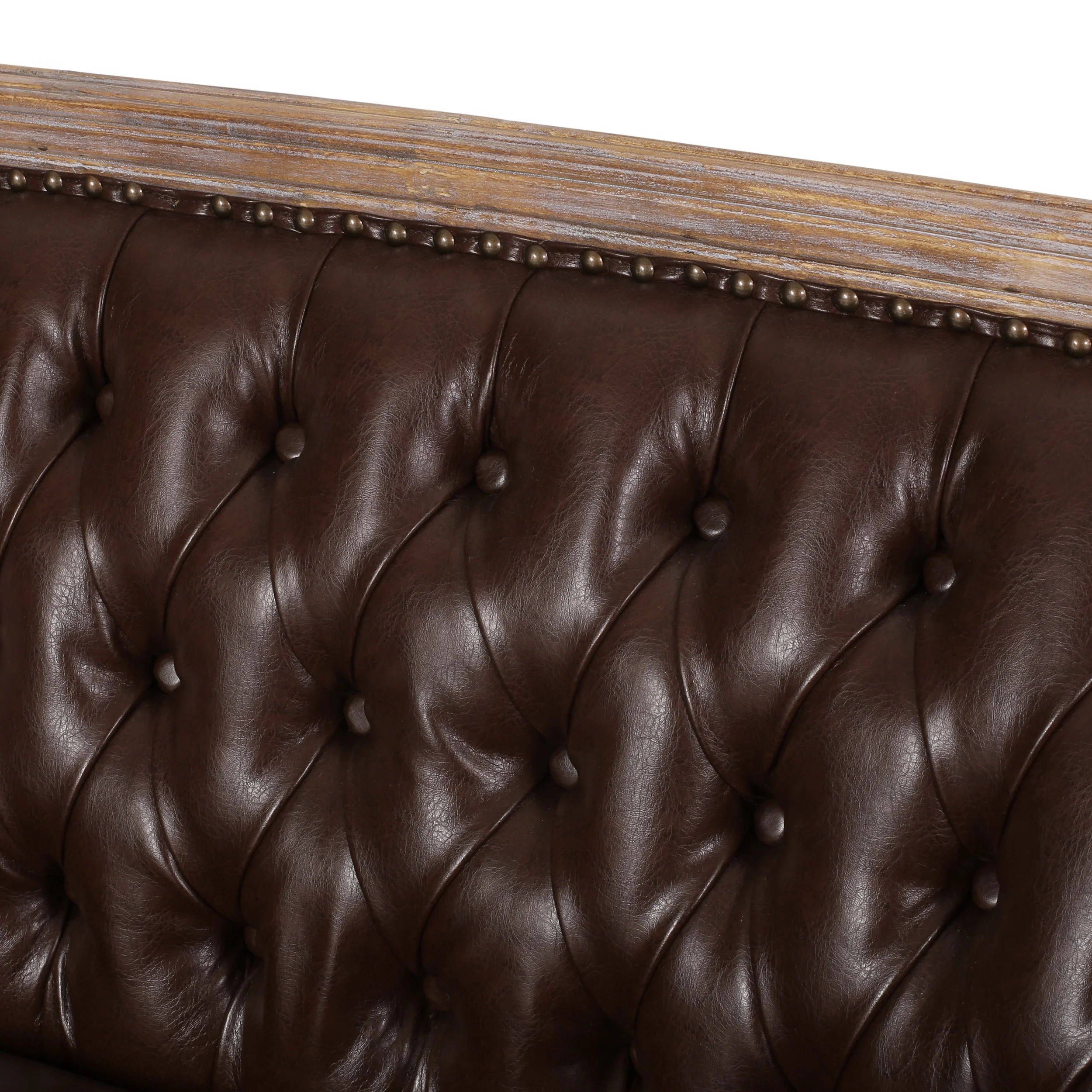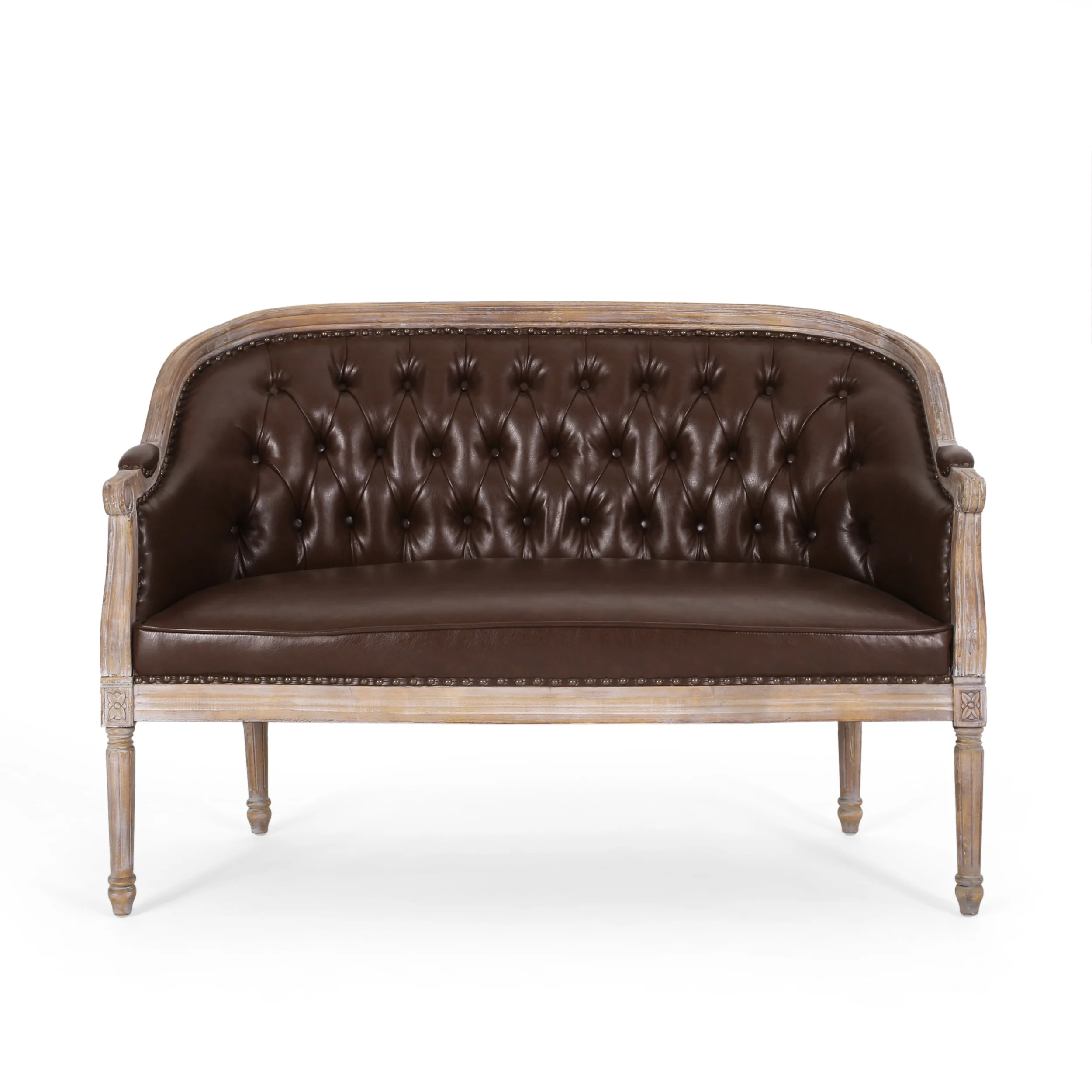 GDF Studio Megan French Country Tufted Upholstered Loveseat, Dark Brown Faux Leather and Antique Natural