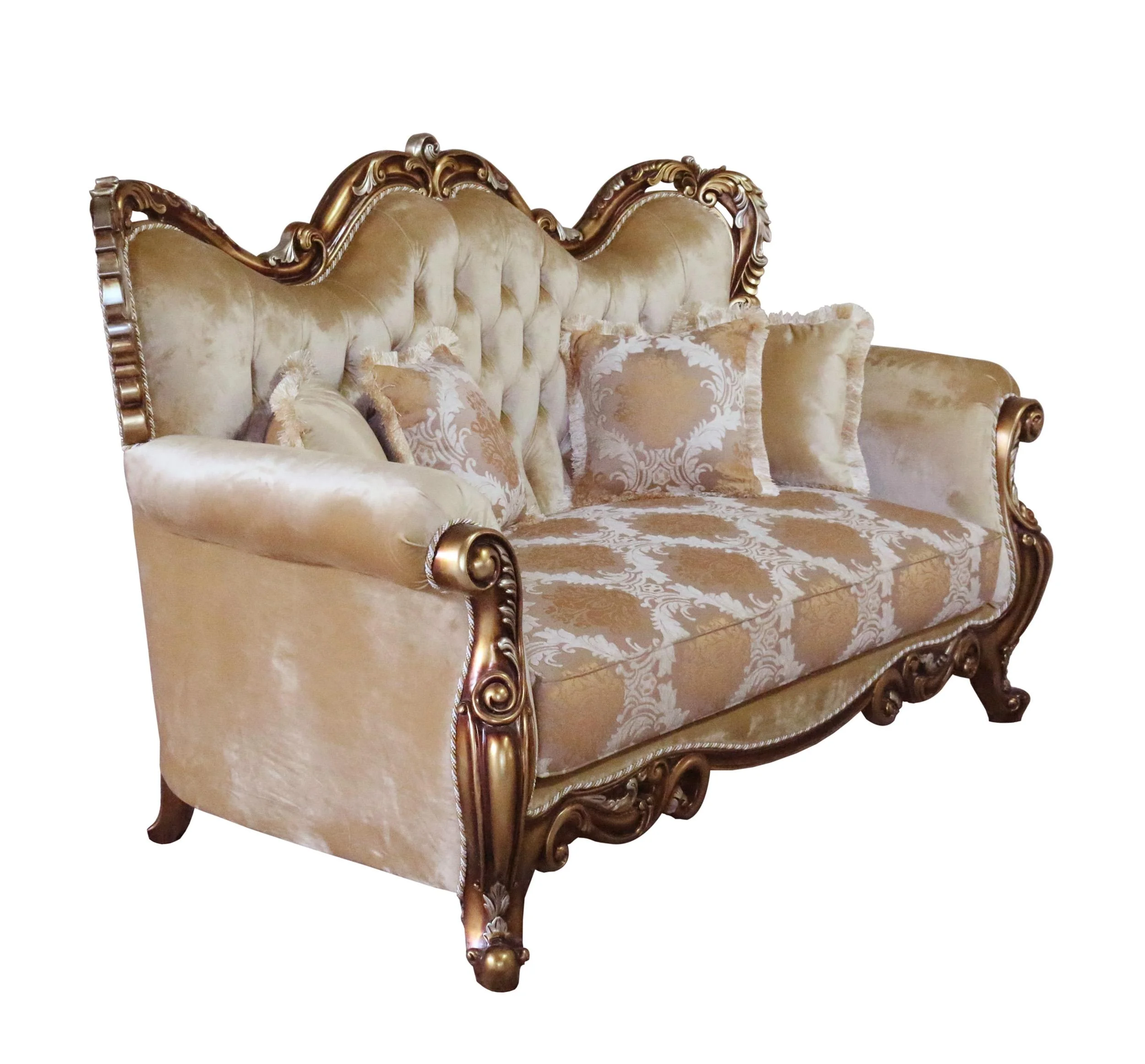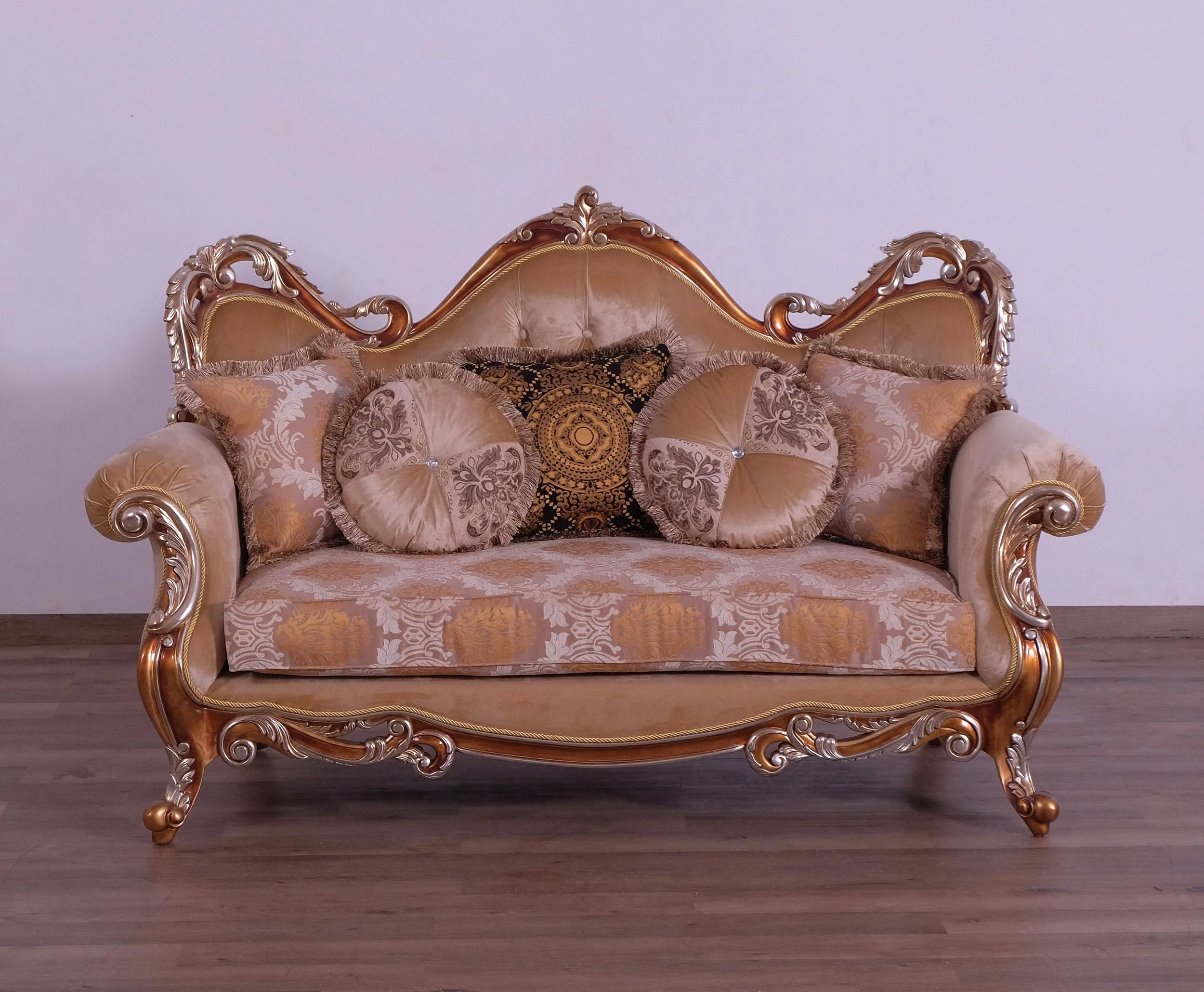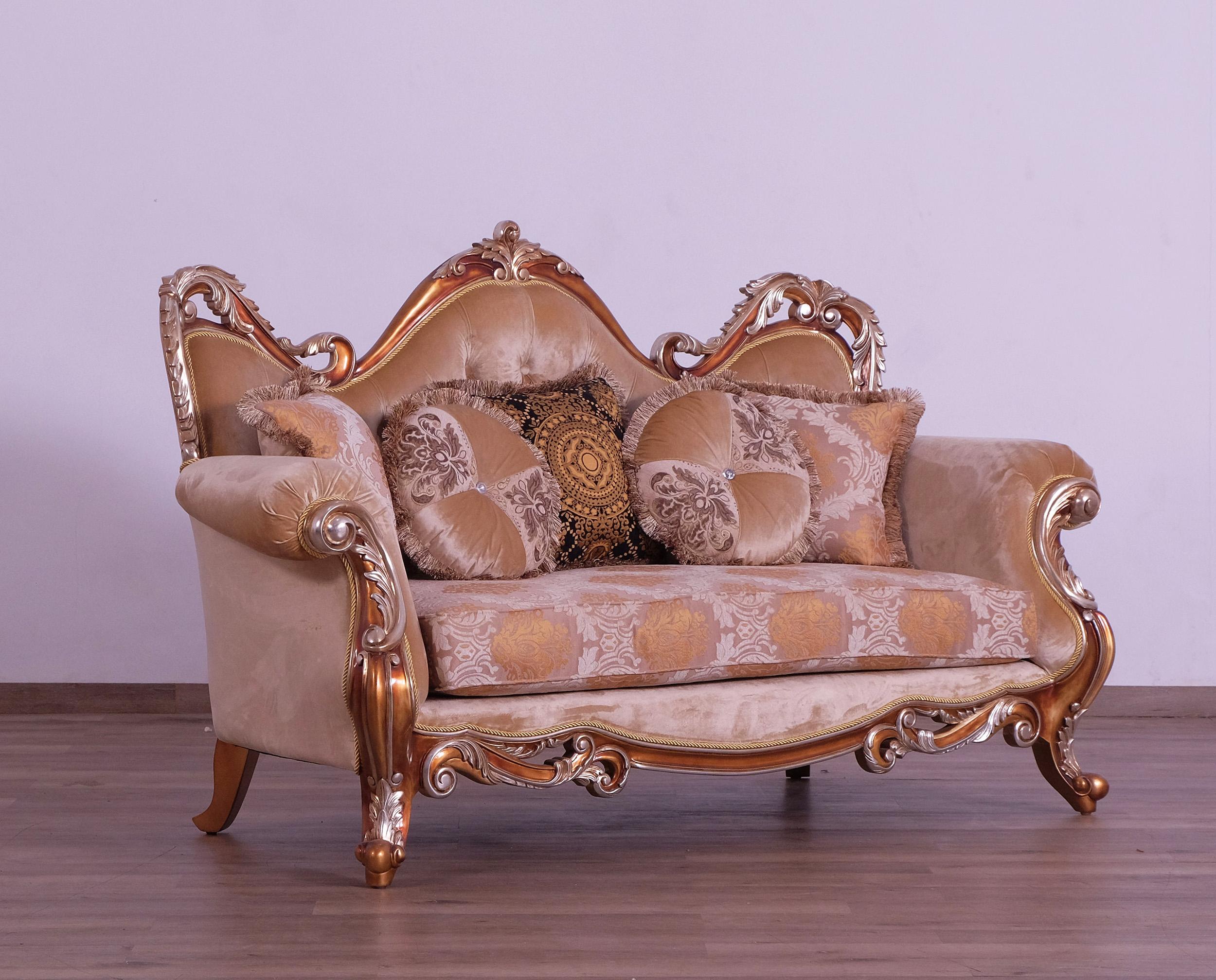 Luxury Brown & Gold Wood Trim TIZIANO Loveseat EUROPEAN FURNITURE Traditional