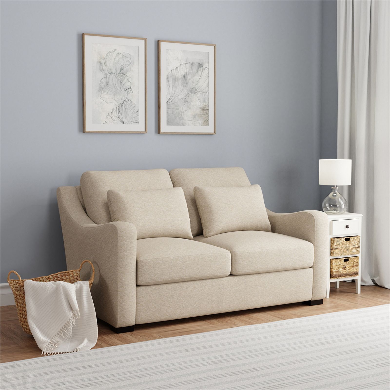 CoSoTower Living Room General Use Linen Fabric Faux Leather with Wood Leg Love Seat (Red Brown)