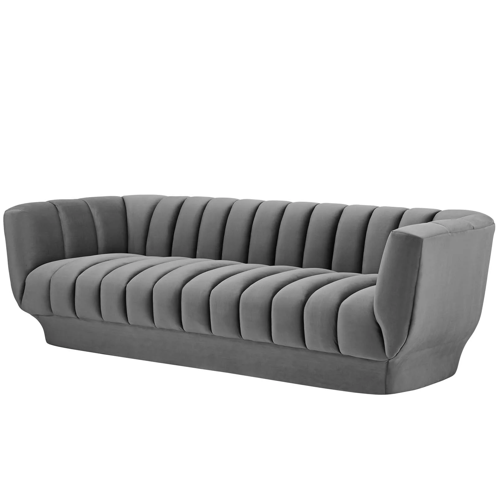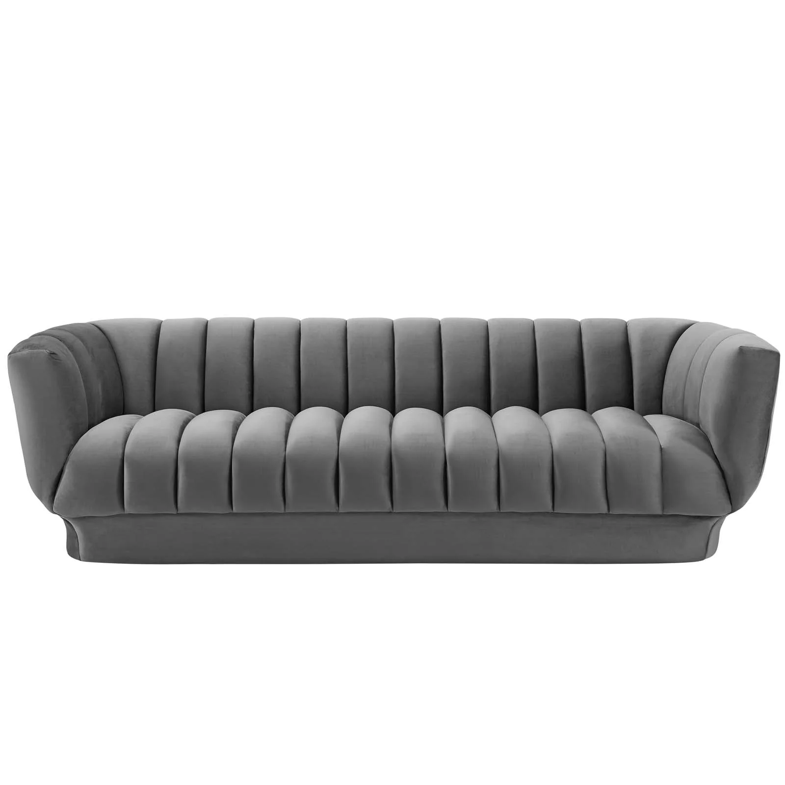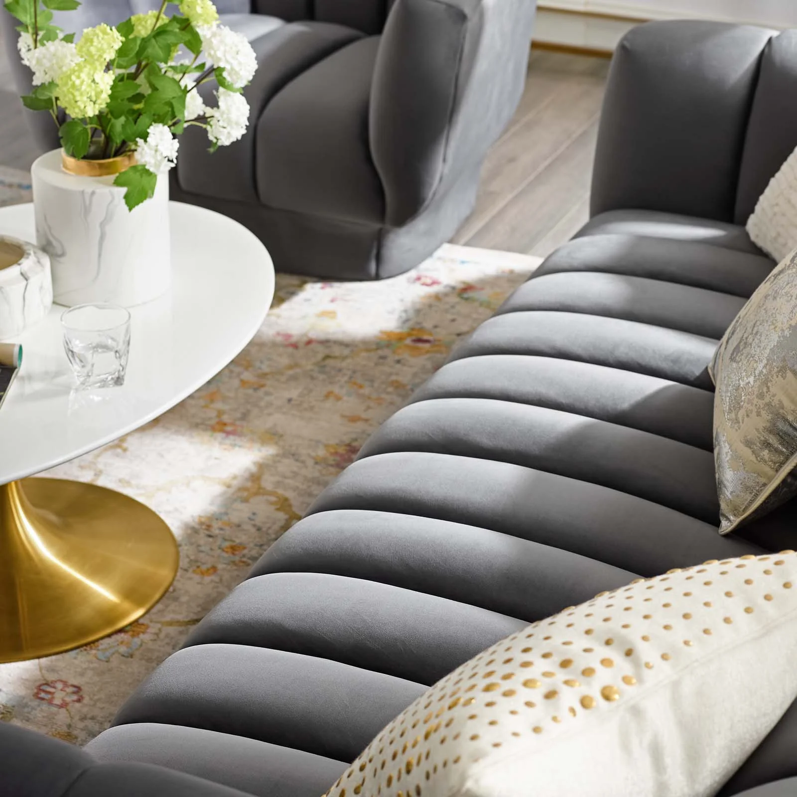 Modway Entertain Vertical Channel Tufted Performance Velvet Sofa and Armchair Set in Gray
