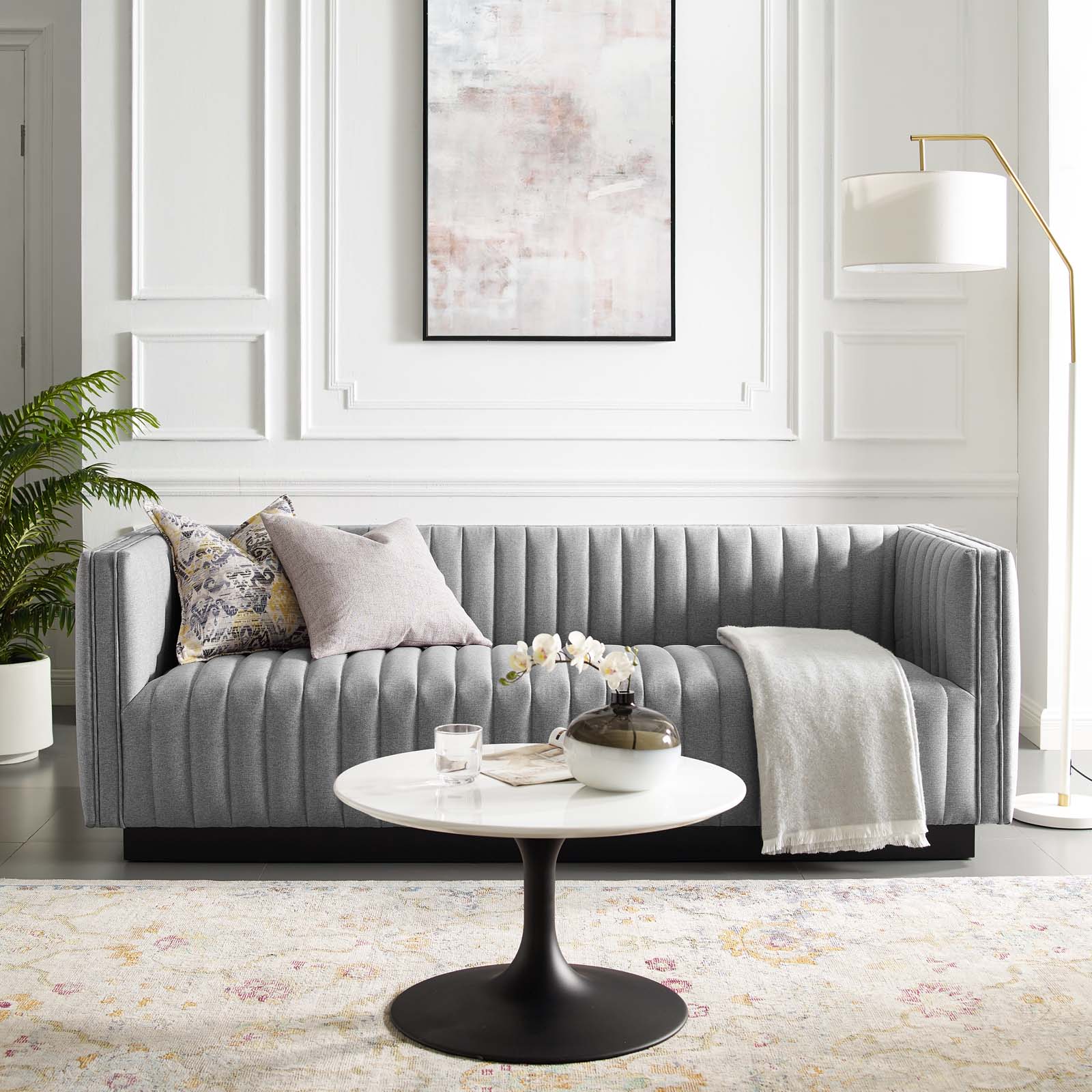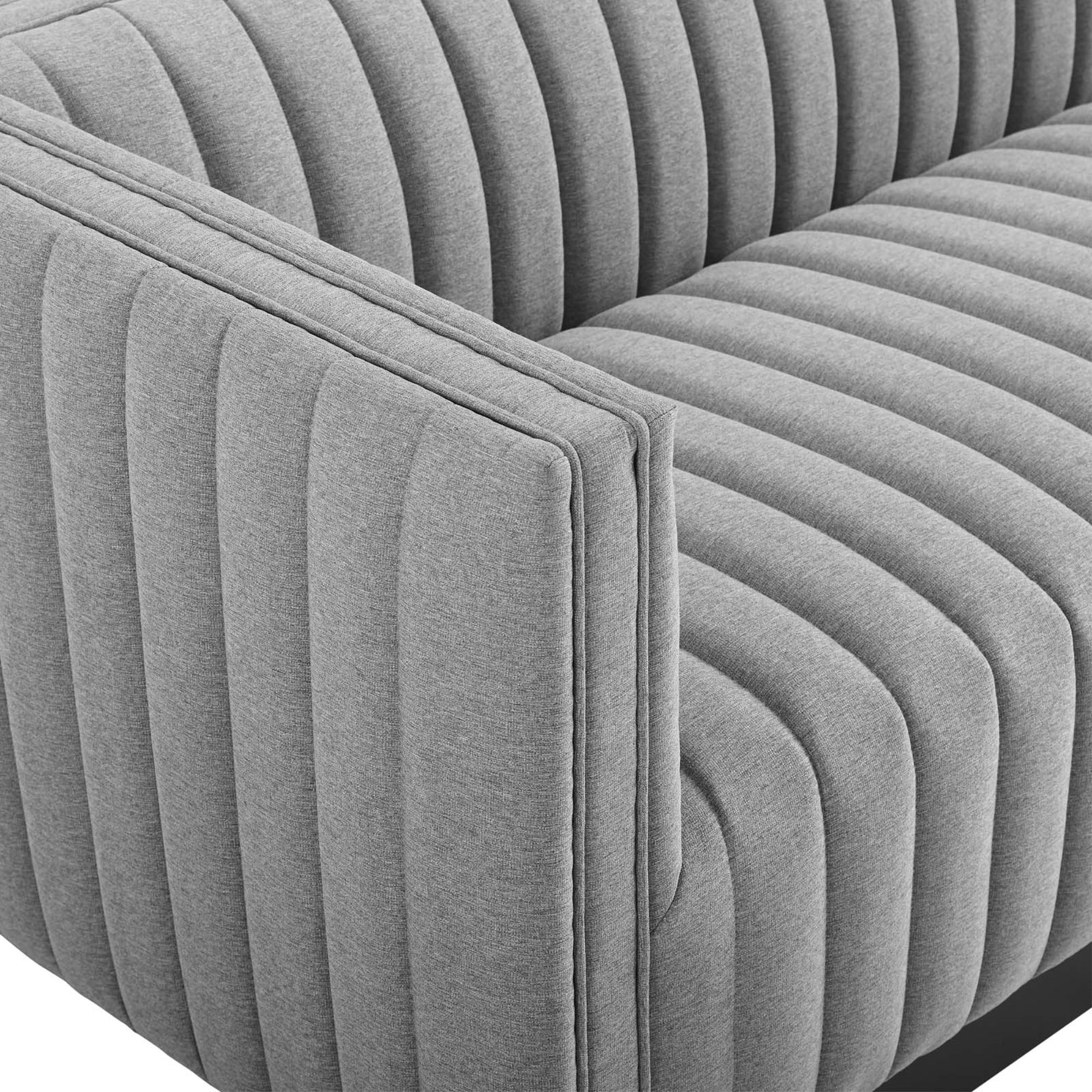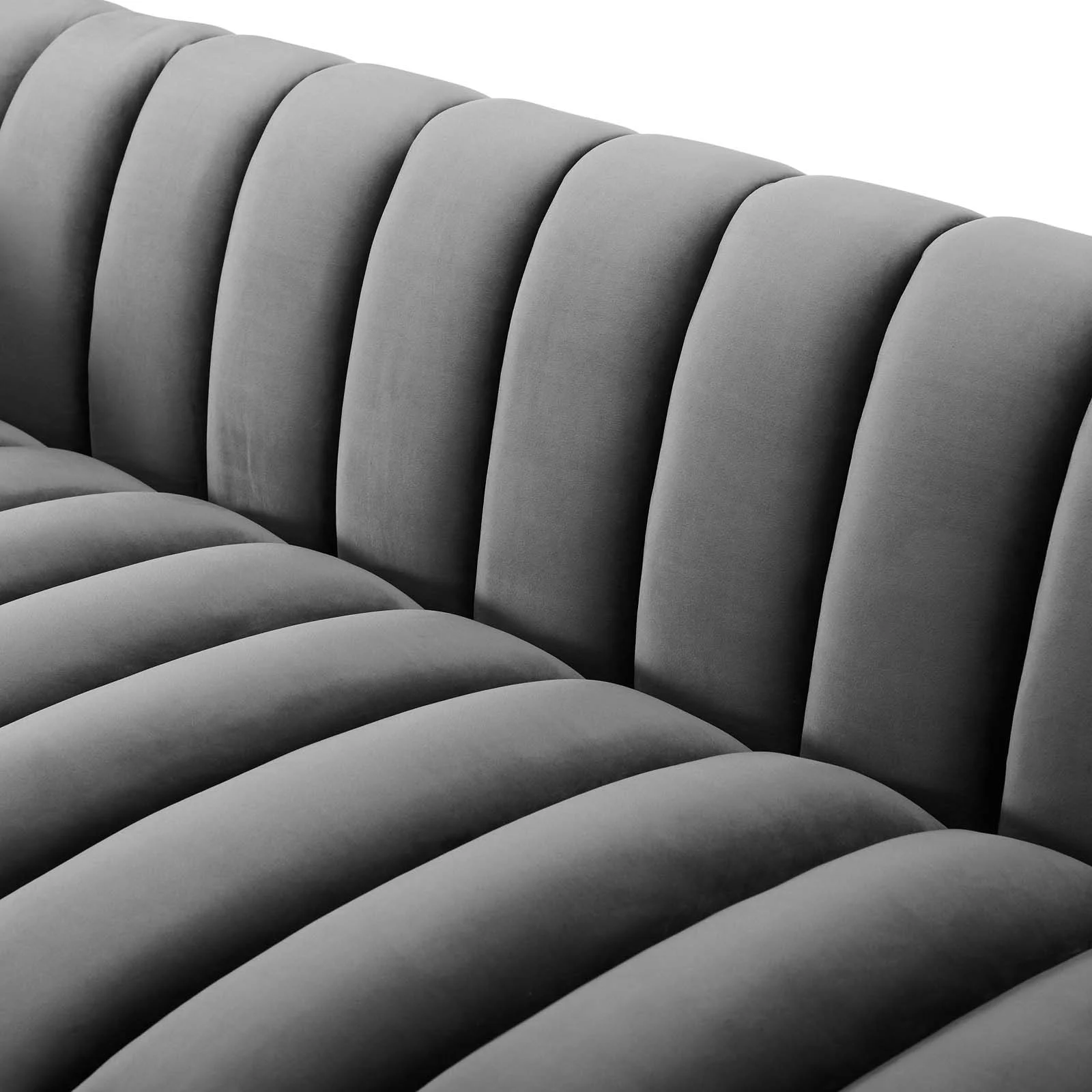 Modway Entertain Vertical Channel Tufted Performance Velvet Sofa and Armchair Set in Gray