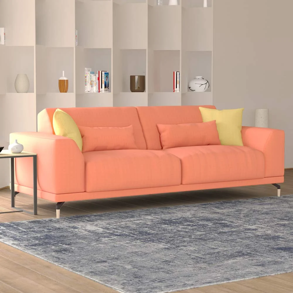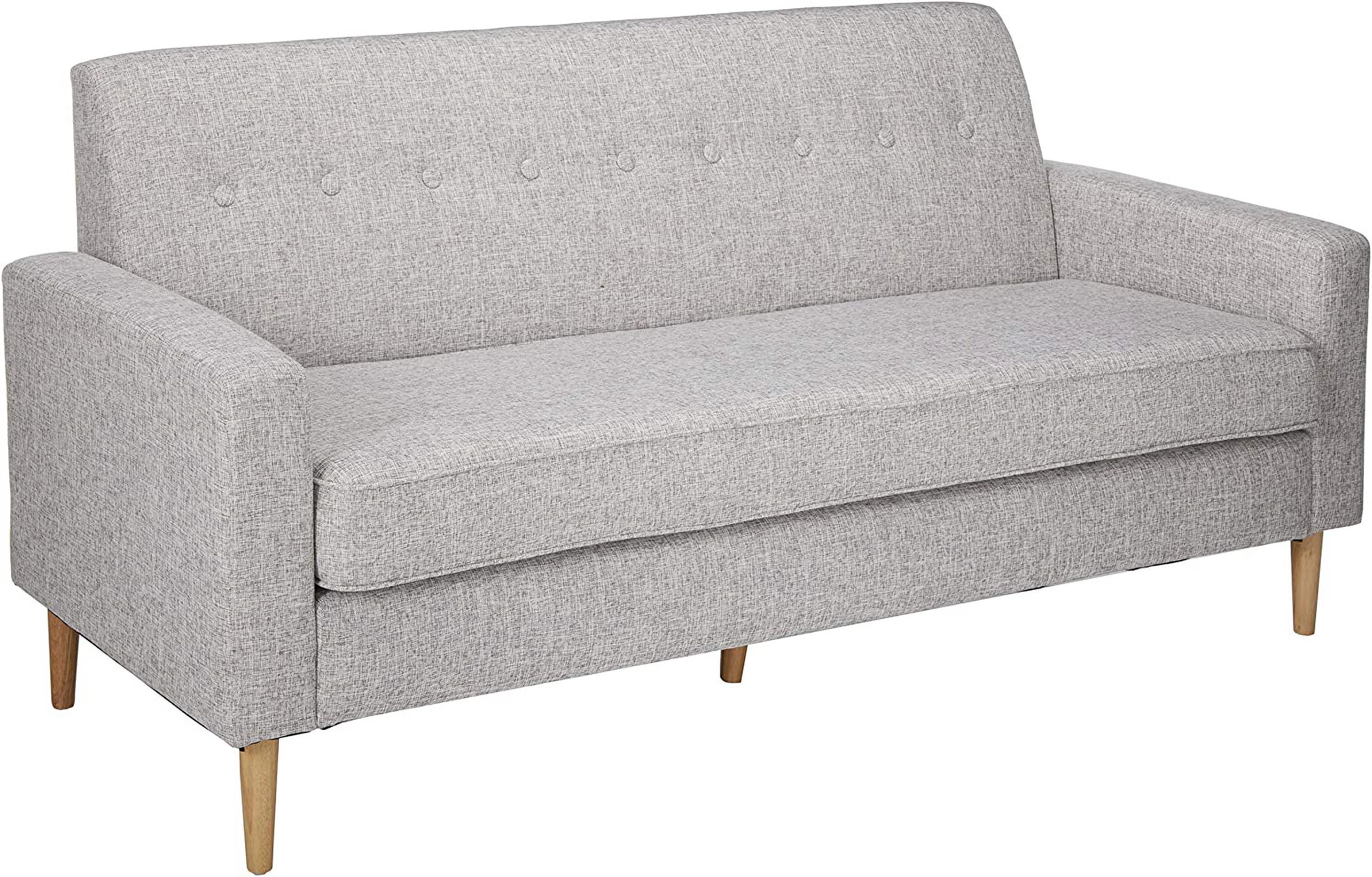 Sawyer Mid-Century Modern Fabric 3-Seater Sofa, Light Grey Tweed / Natural