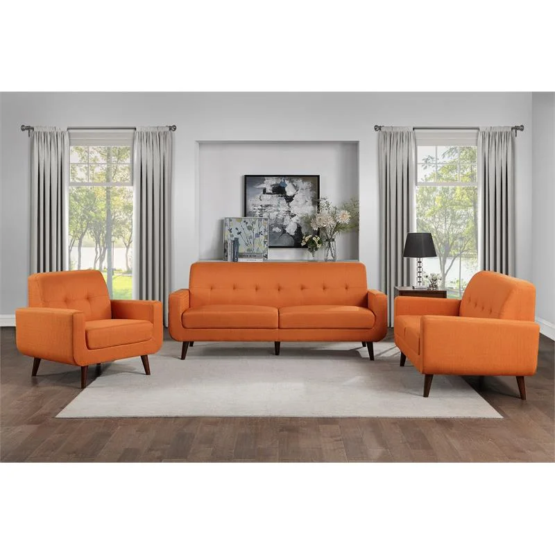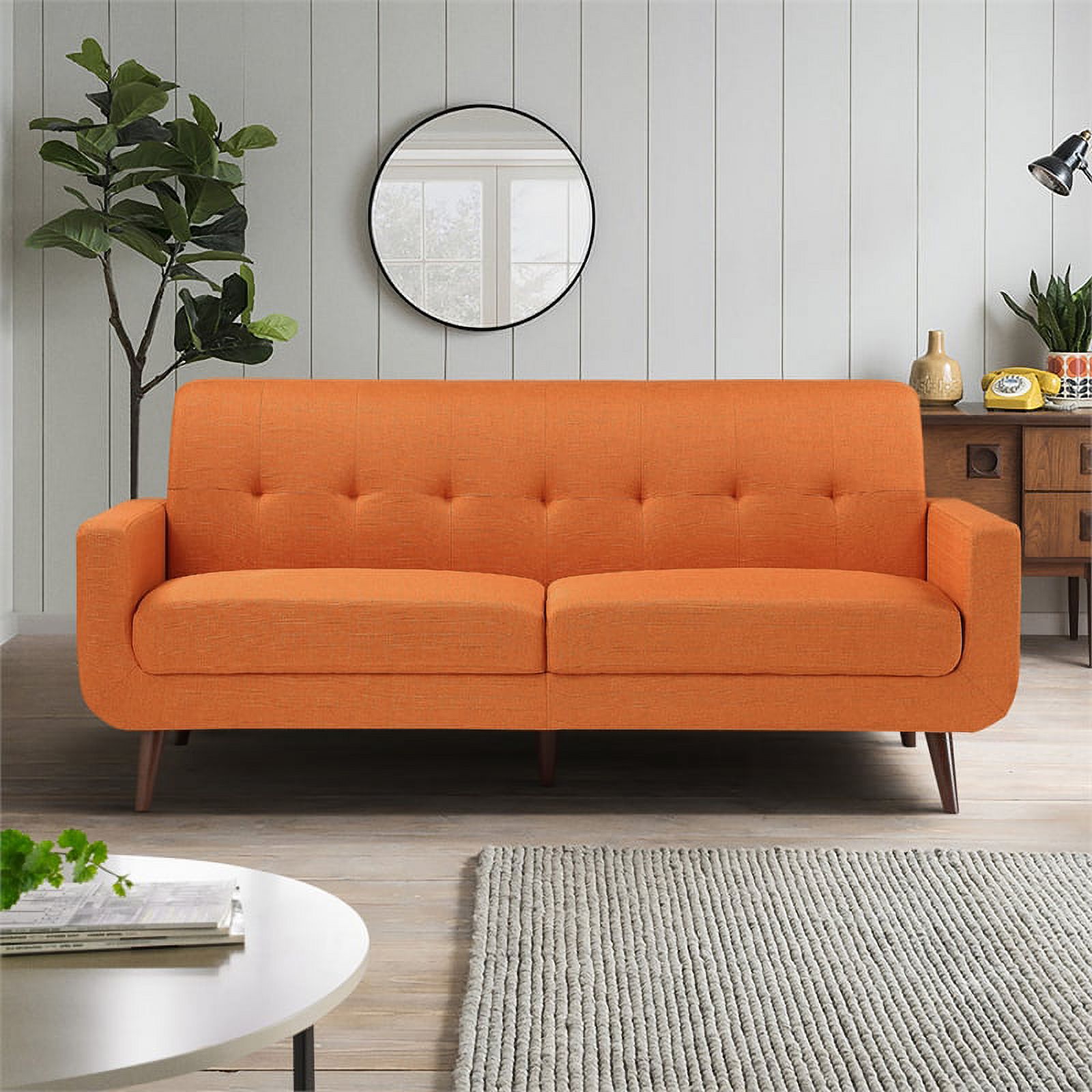 Lexicon Fitch 79" Mid-Century Polyester Fabric Sofa with Tufted Detail in Orange