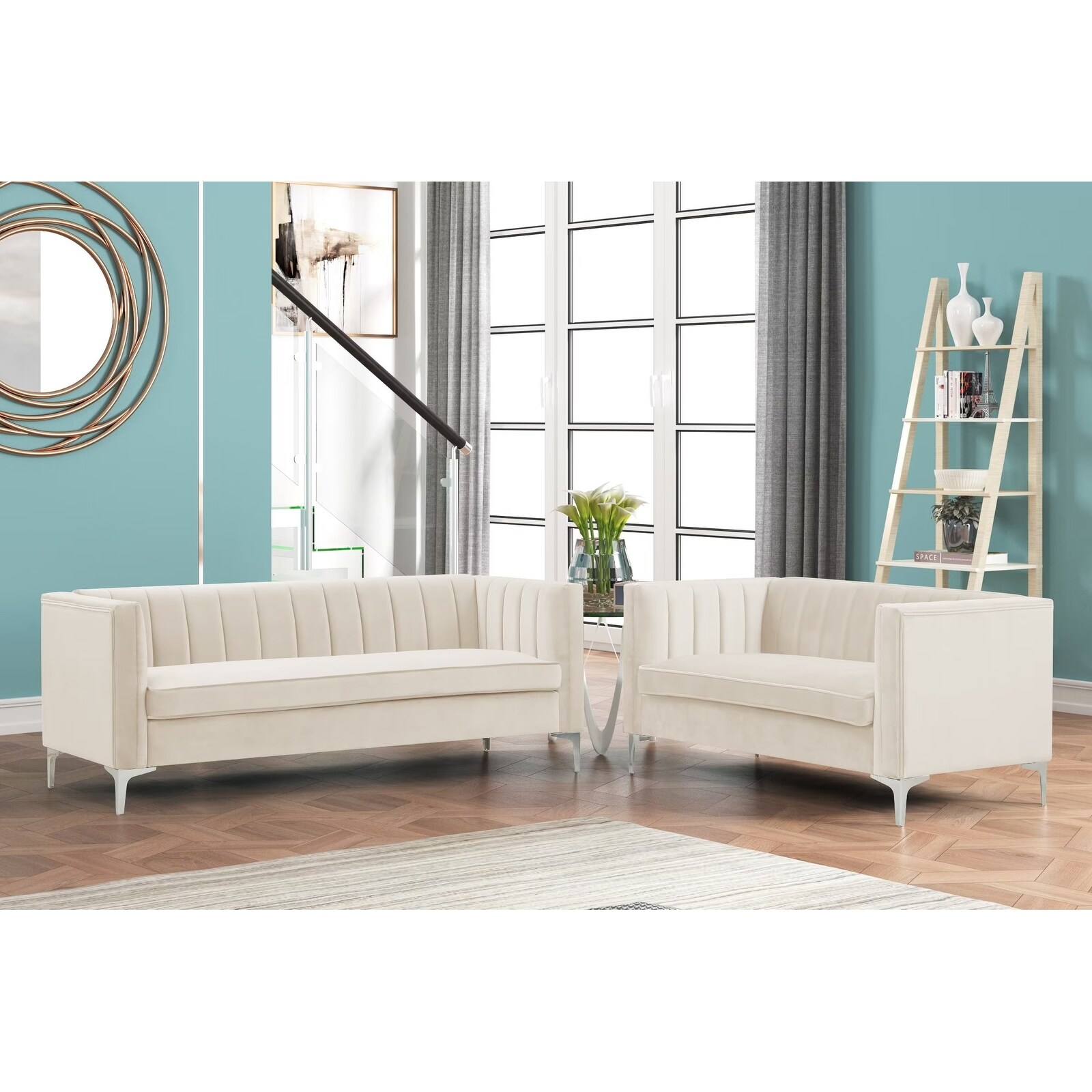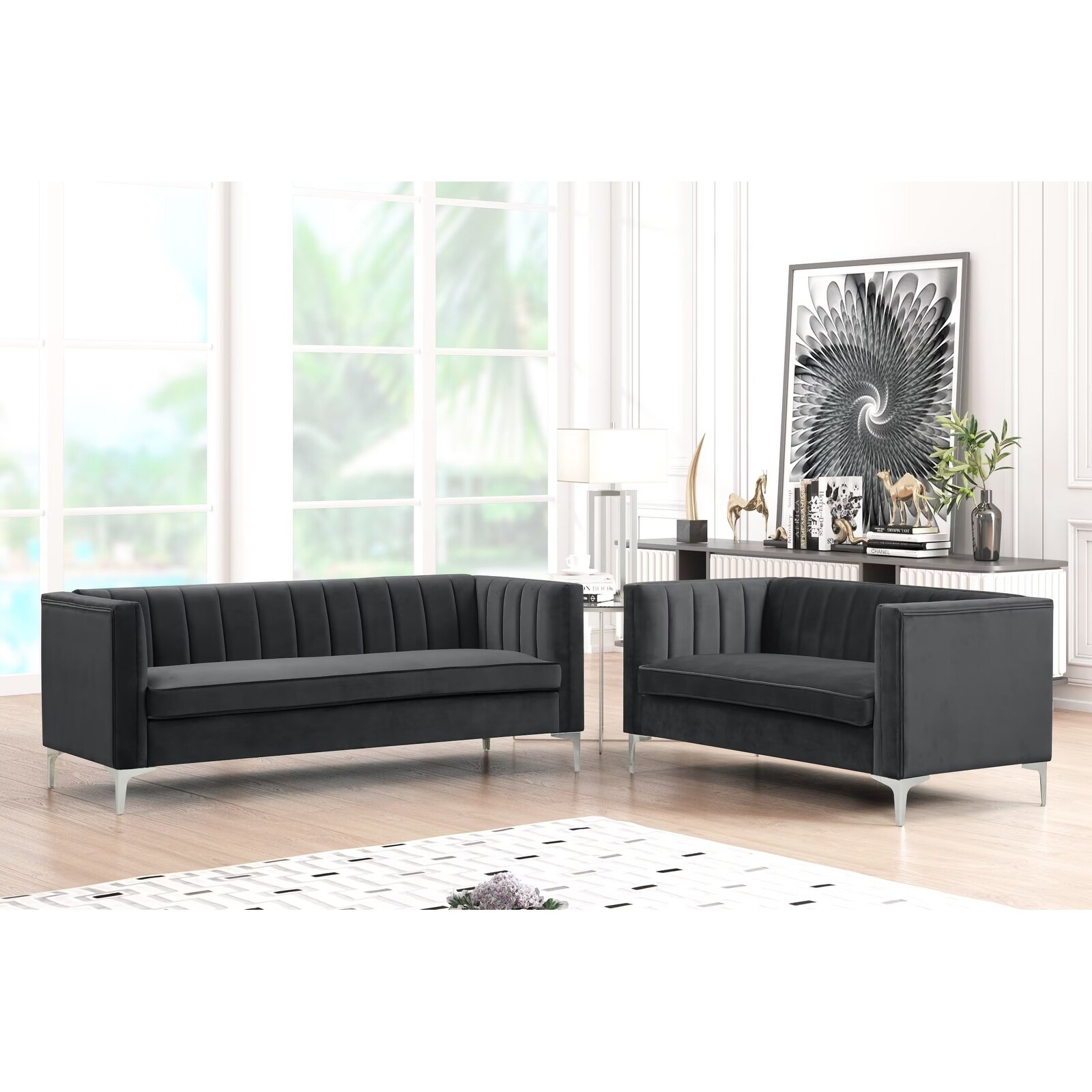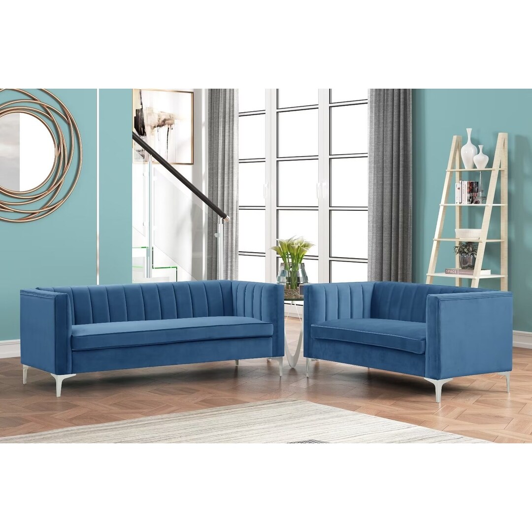 Morden Fort Modern 2 Pieces of Loveseat and Sofa Couch Set with Dutch Velvet Grey, Iron Legs Black