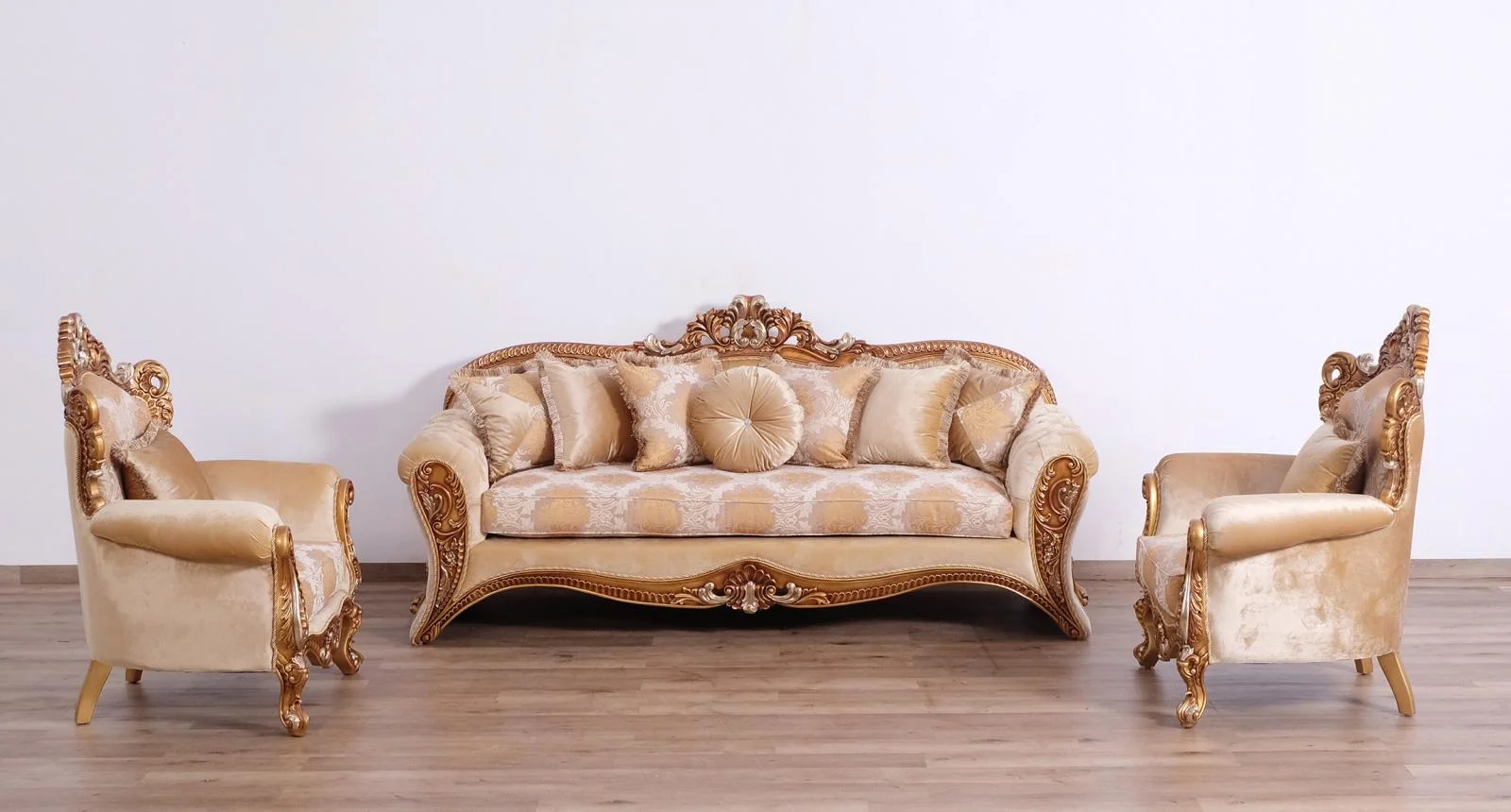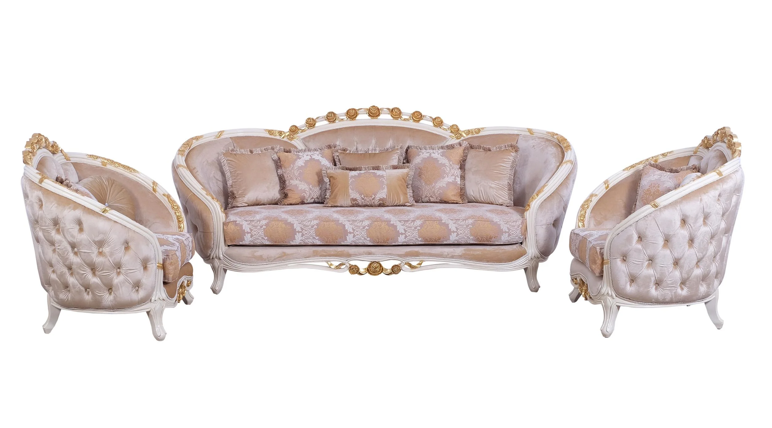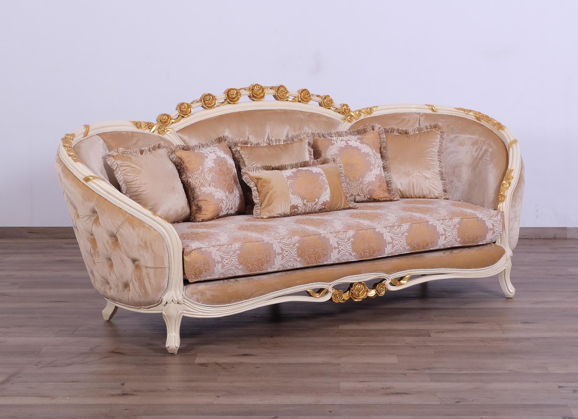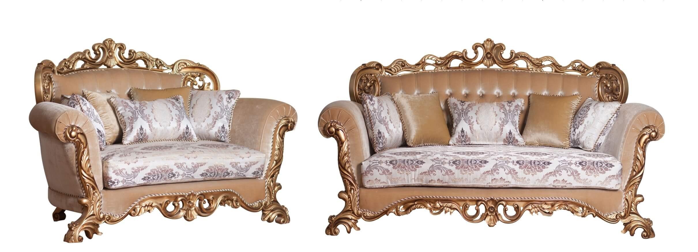 Luxury Beige & Gold Wood Trim PARIS Sofa Set 2 EUROPEAN FURNITURE Traditional