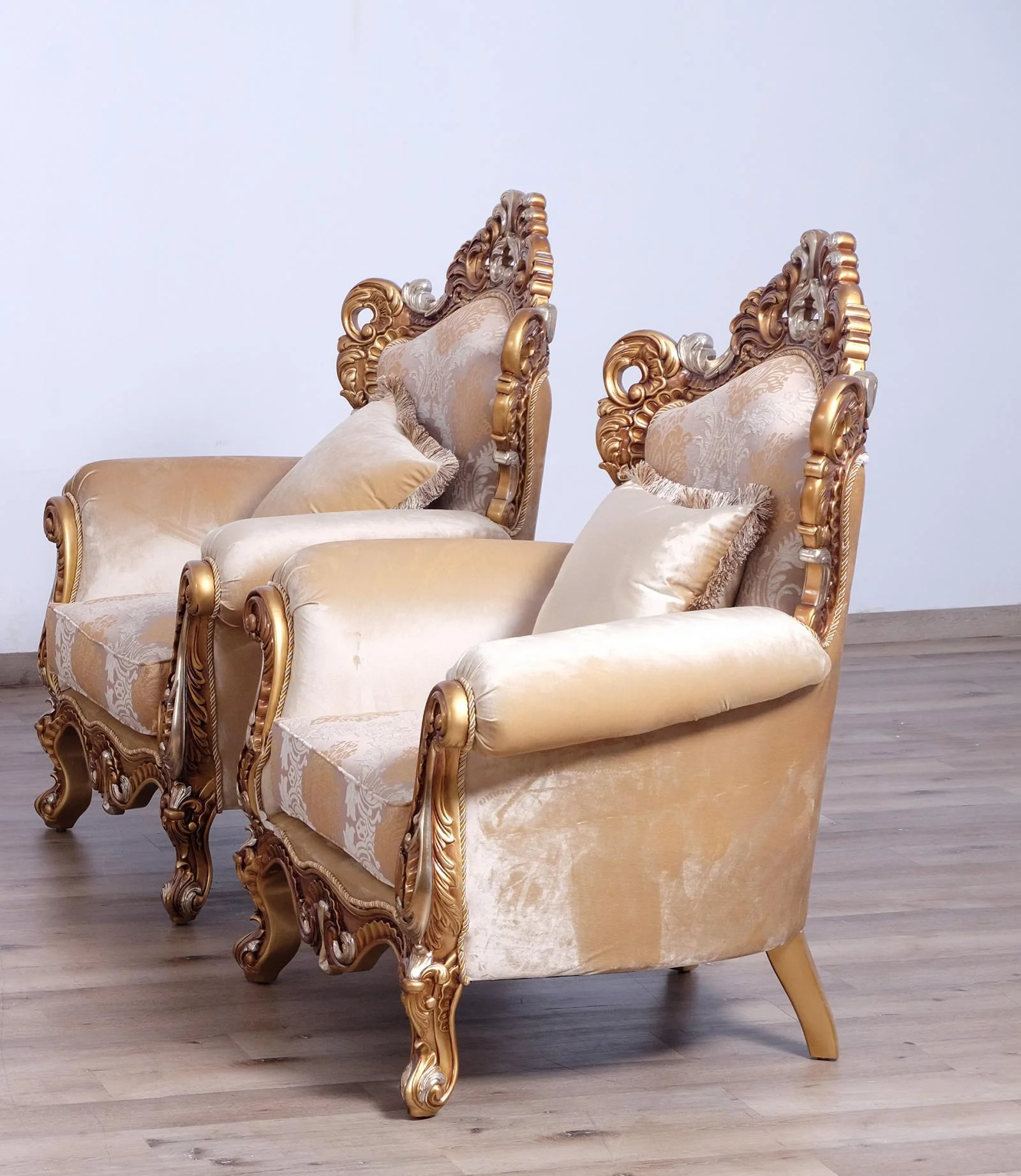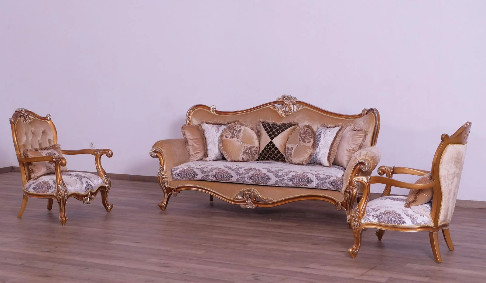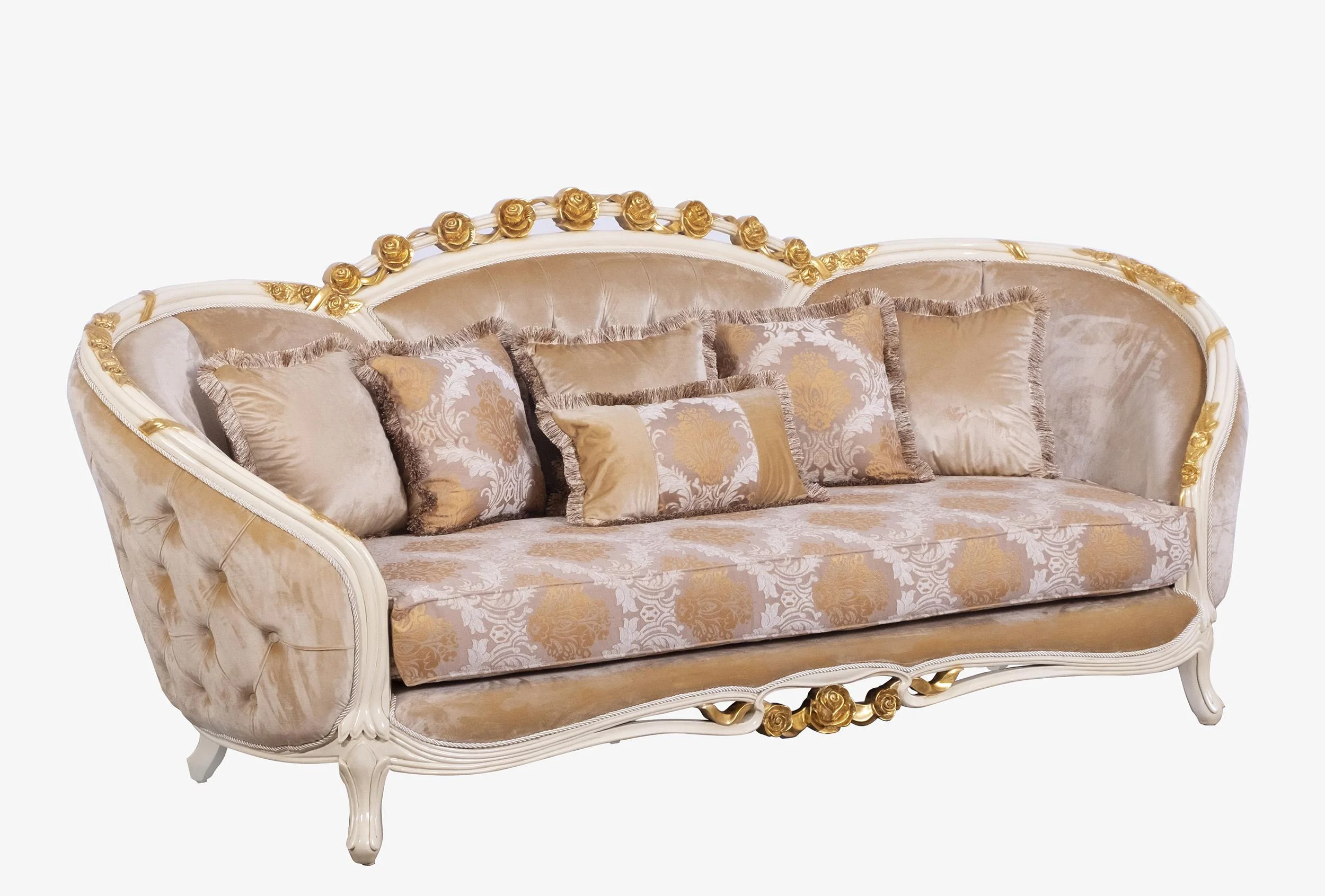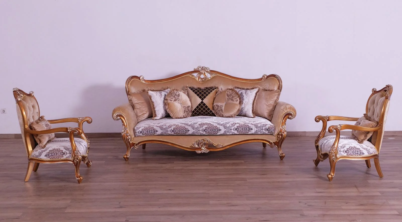 Luxury Beige & Gold Wood Trim PARIS Sofa Set 2 EUROPEAN FURNITURE Traditional