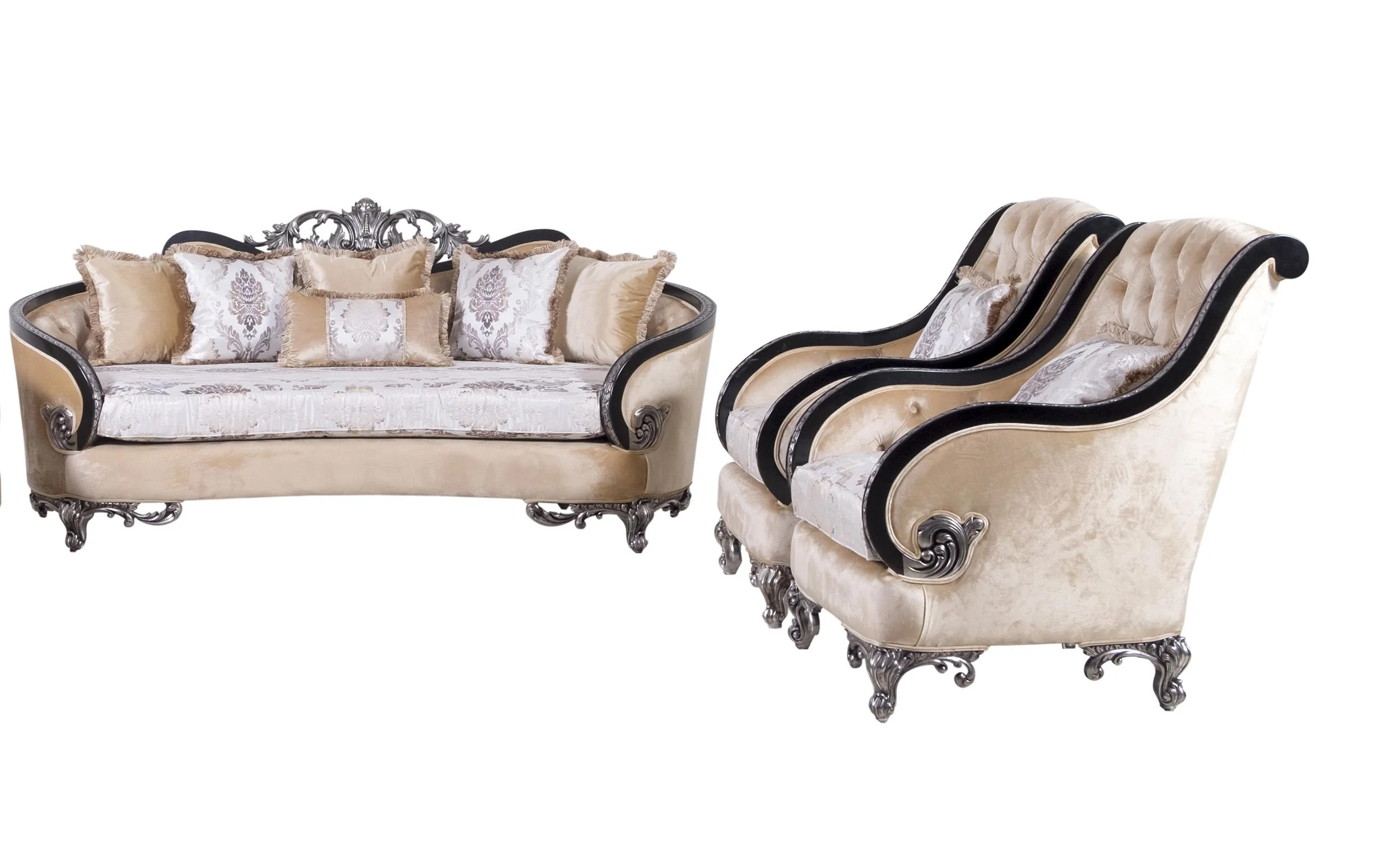 Luxury Black & Silver Wood Trim ROSABELLA Sofa Set 3 EUROPEAN FURNITURE Classic