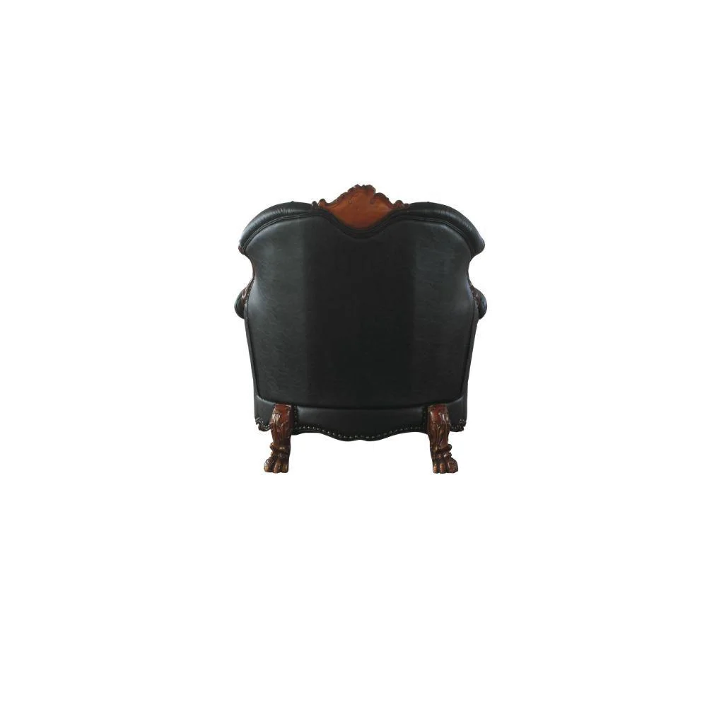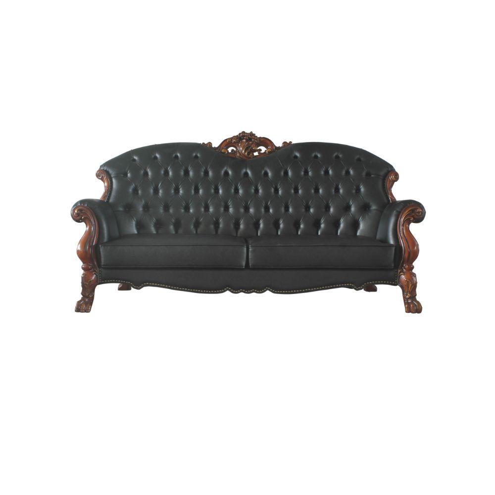 Luxury Vintage Cherry Oak & Black PU Dresden Sofa Set 3 P 58230 ACME Traditional