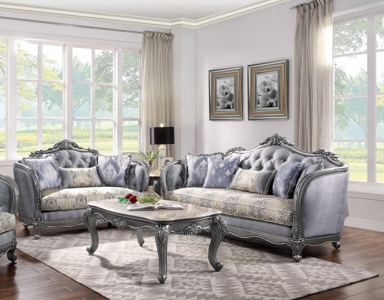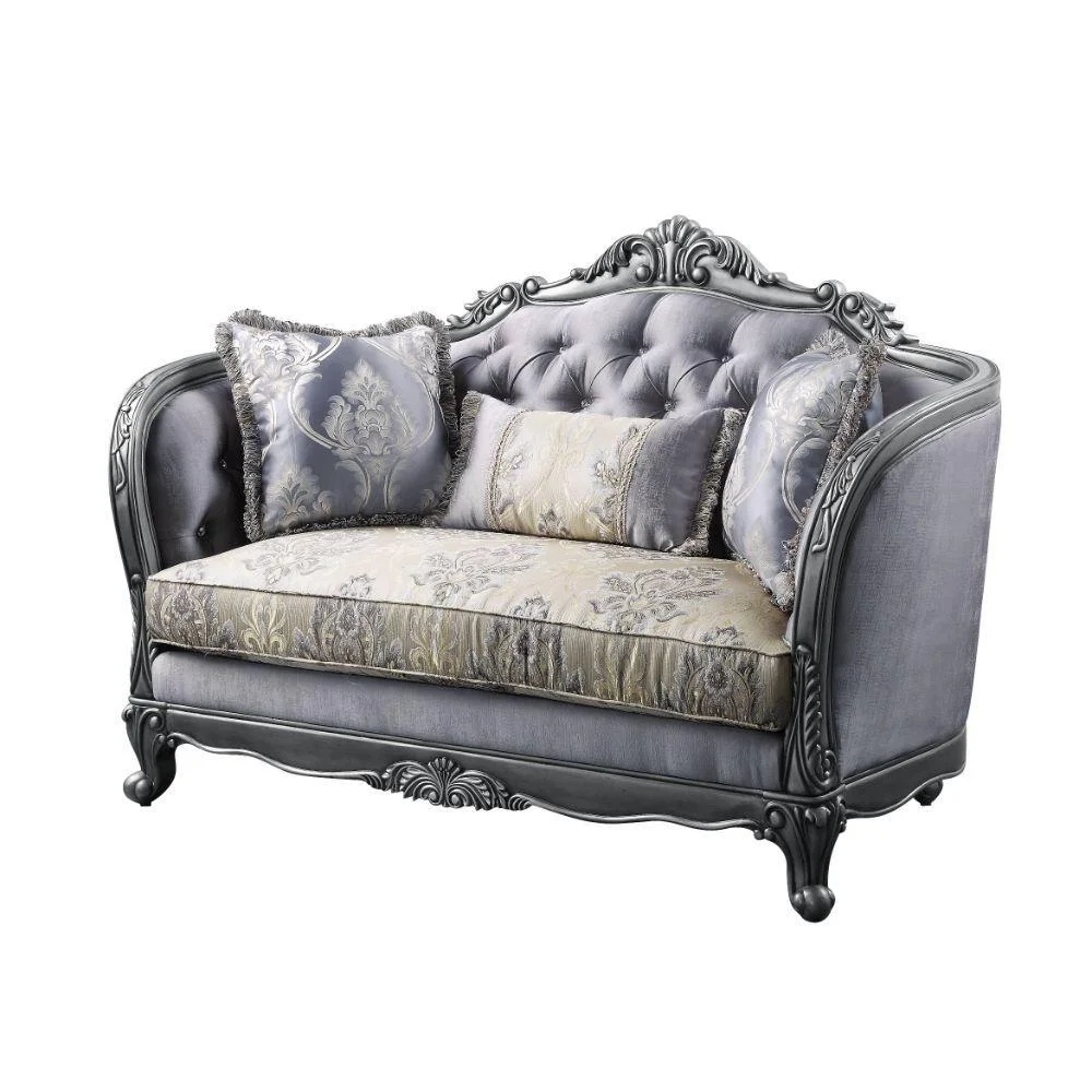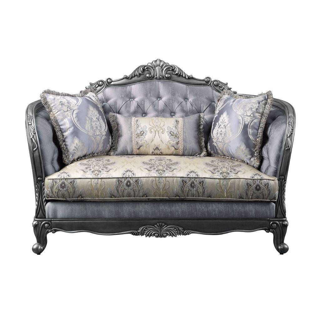 Luxury Lustrous Fabric & Platinum Ariadne Sofa Set 2 Pcs 55345 ACME Traditional
