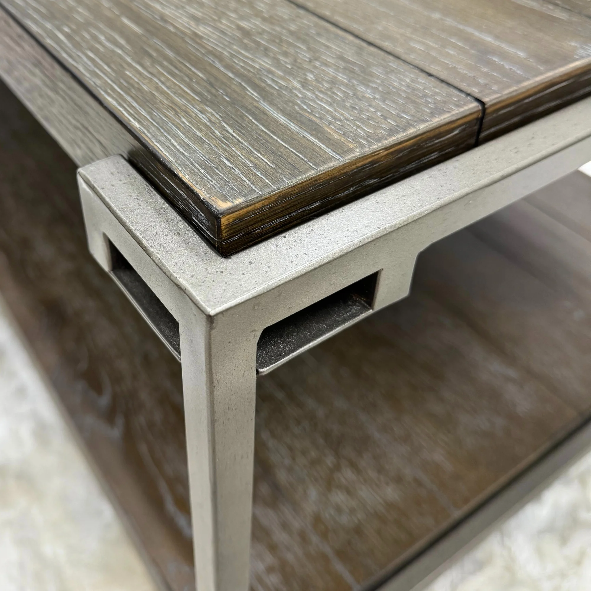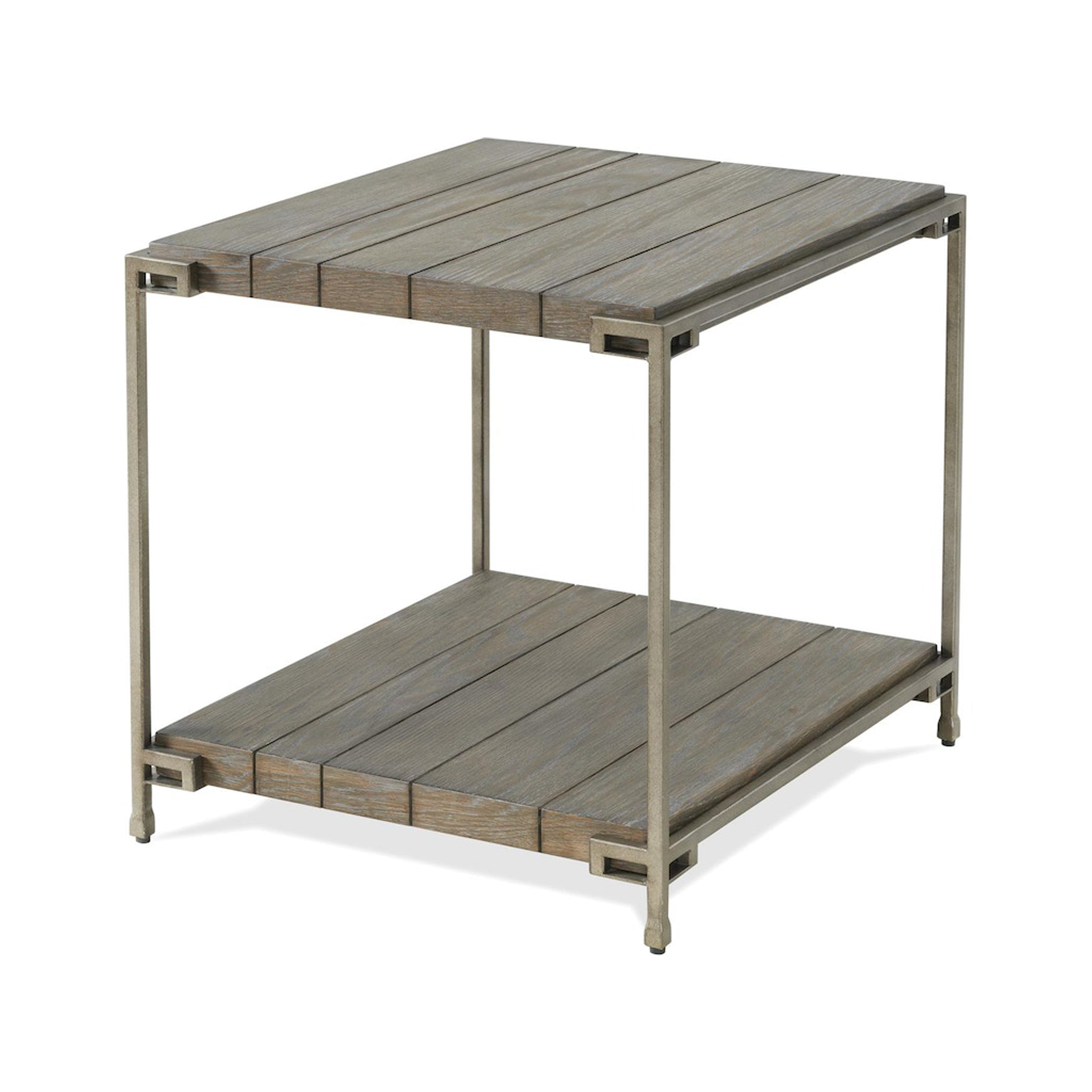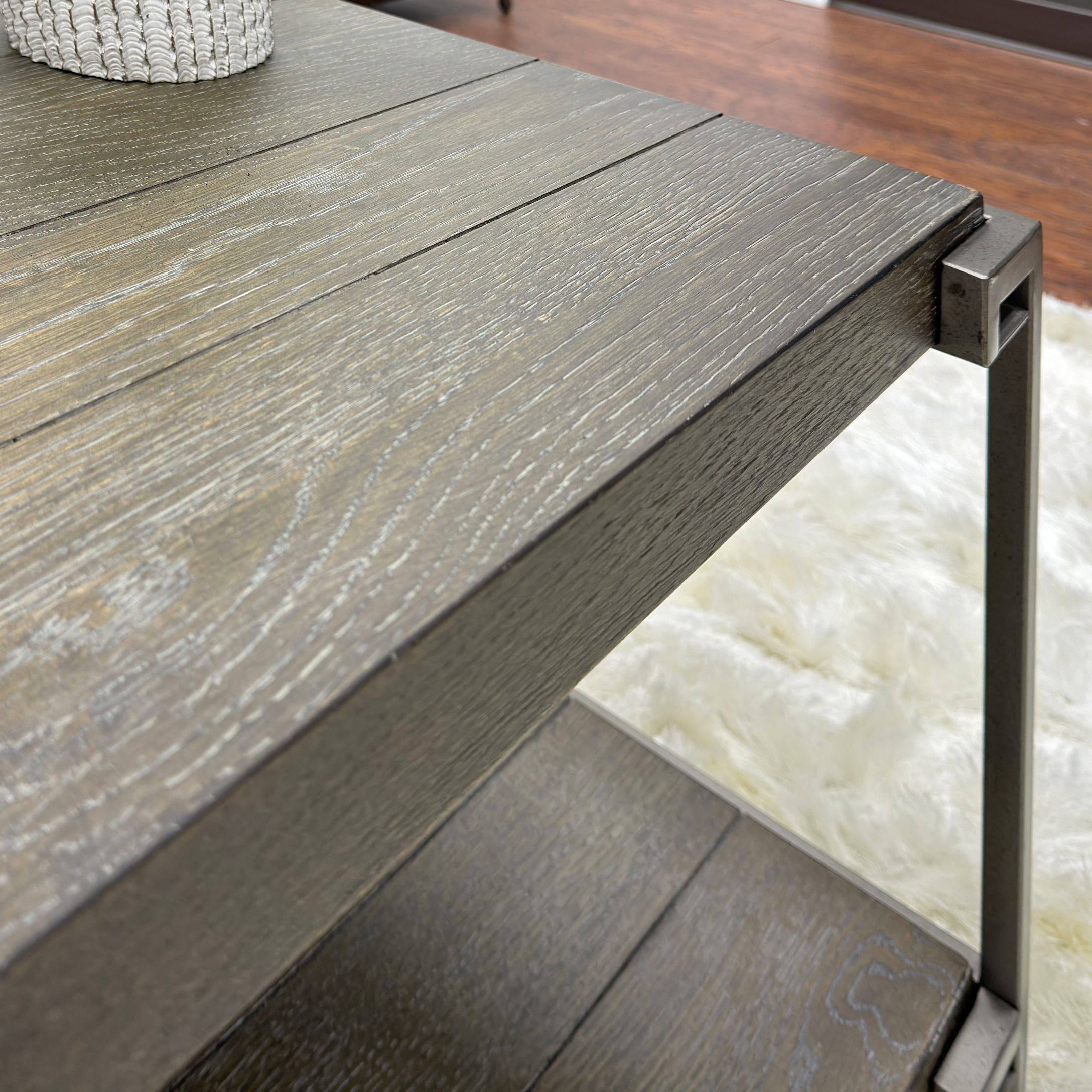 Roundhill Furniture Wood/Metal Corbeta End Table with Shelf in Graphite Gray
