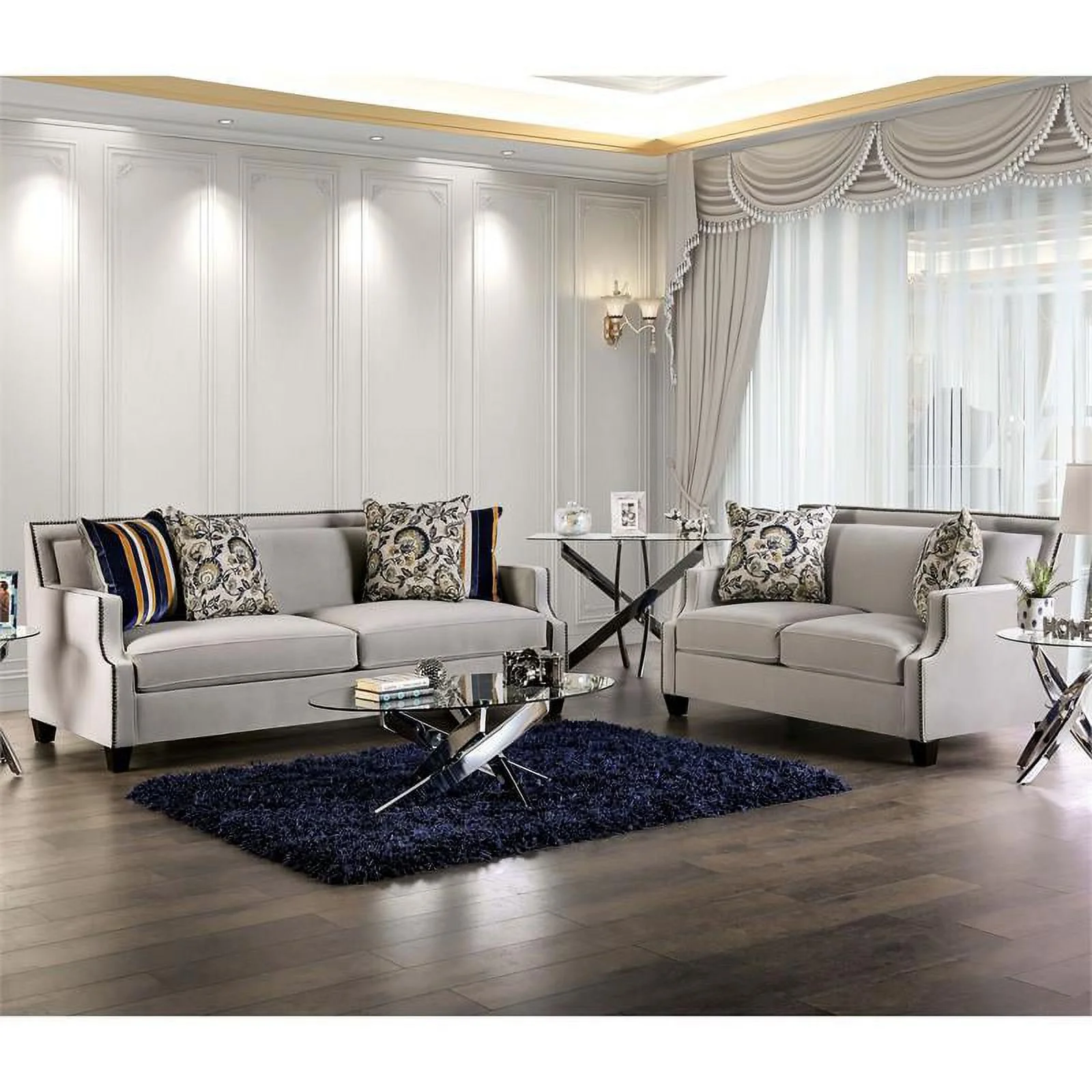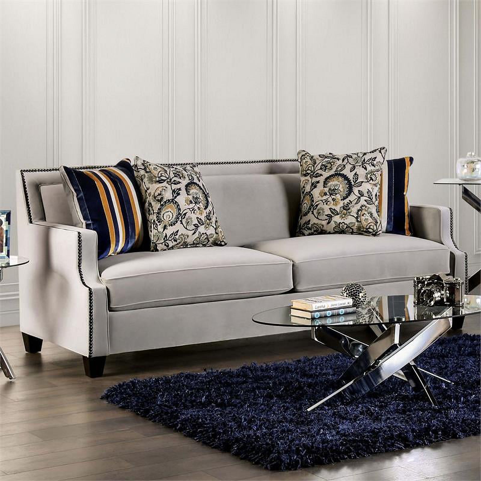Furniture of America Brier Transitional Fabric Nailhead Sofa in Light Gray
