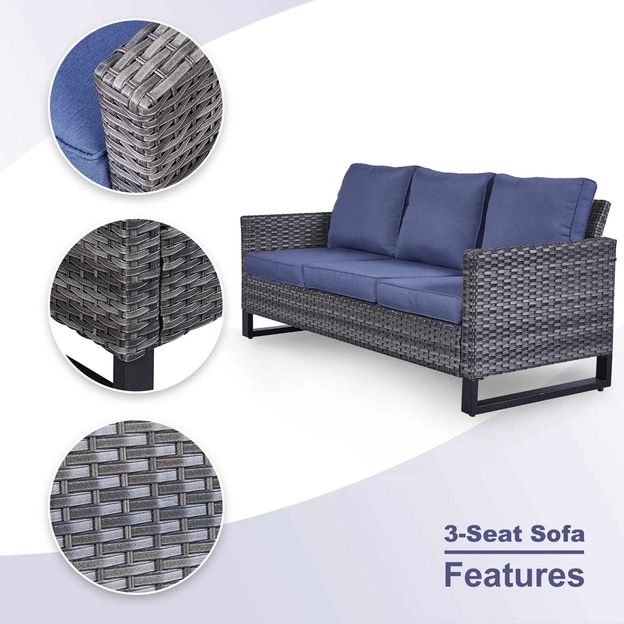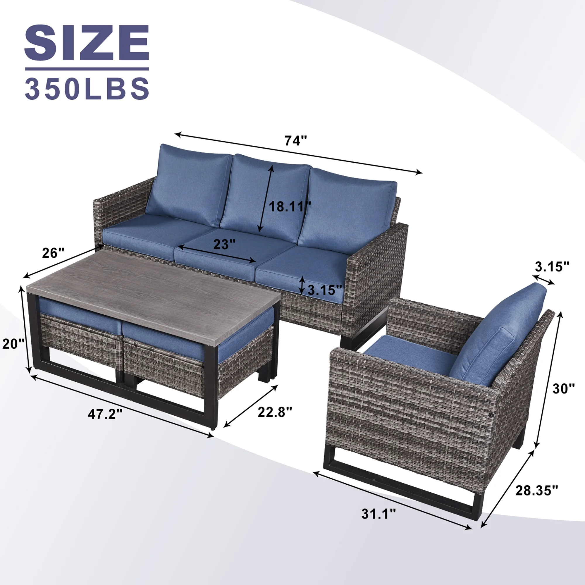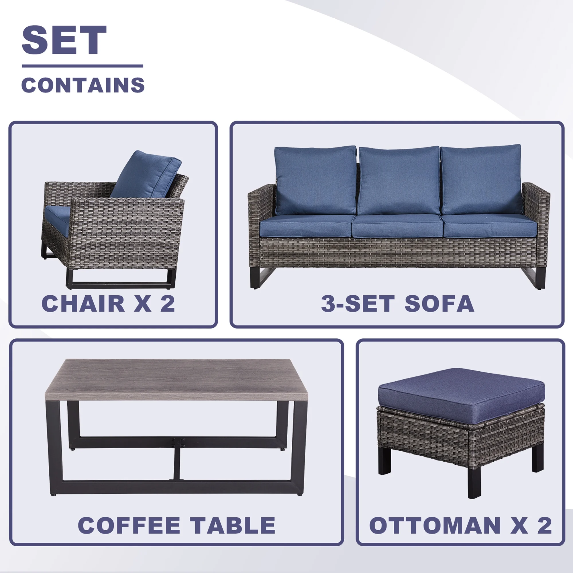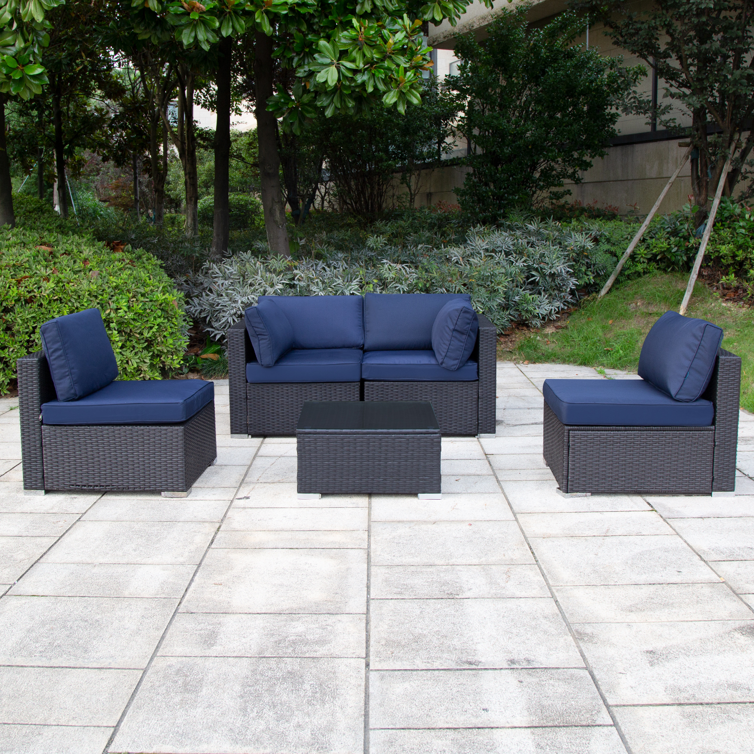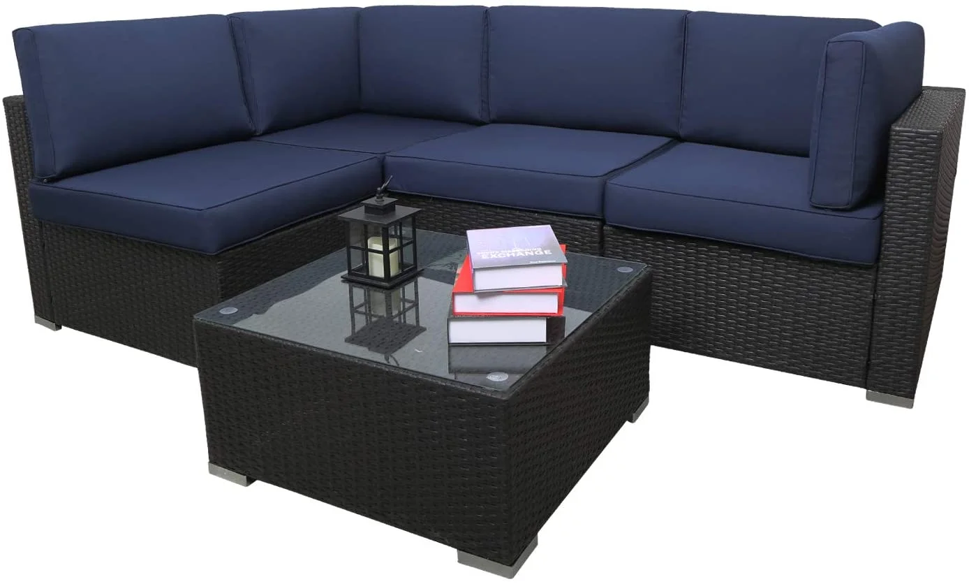 Excited Work 5 Pcs Patio Sofa PE Rattan Outdoor Wicker (BLUE) Patio Conversation Set