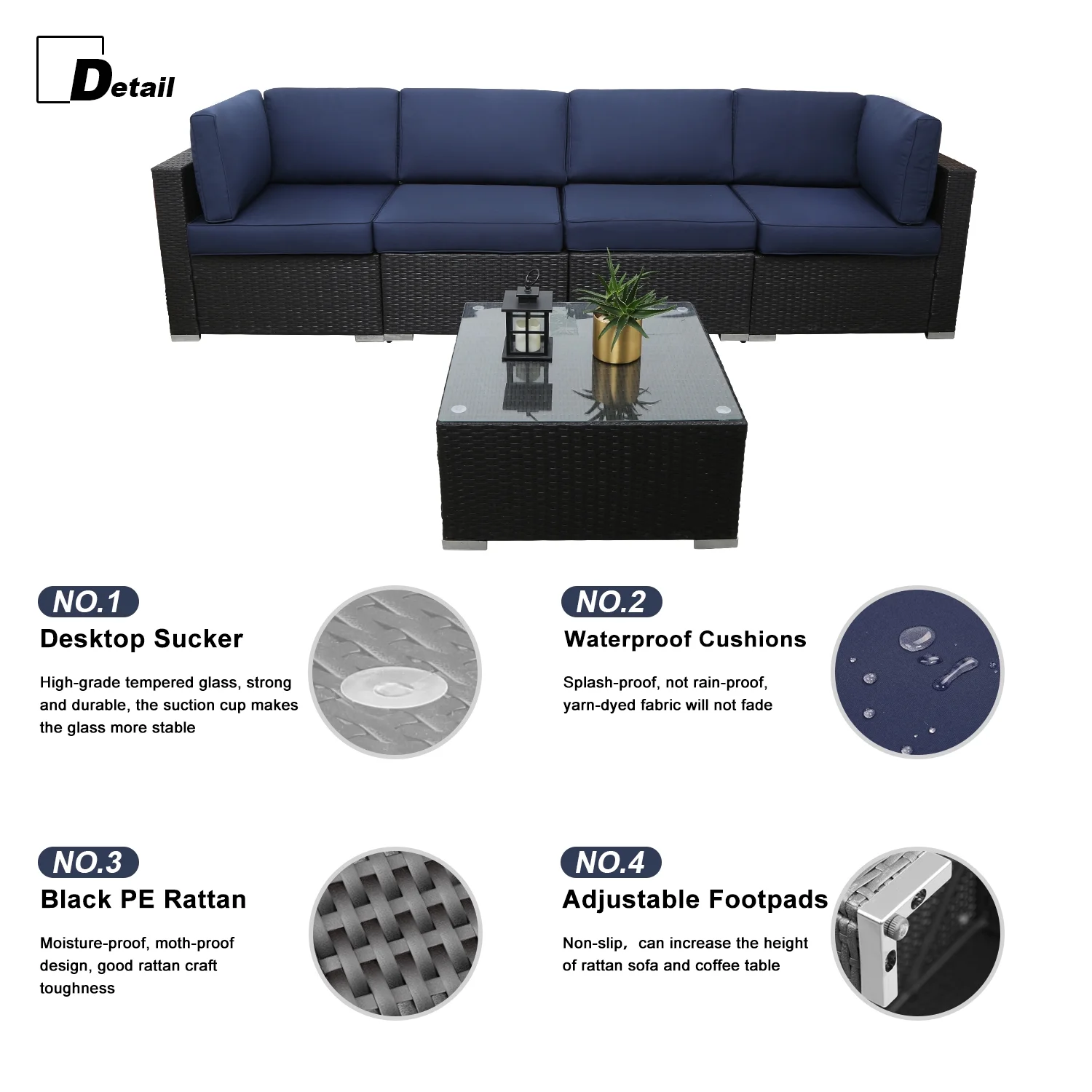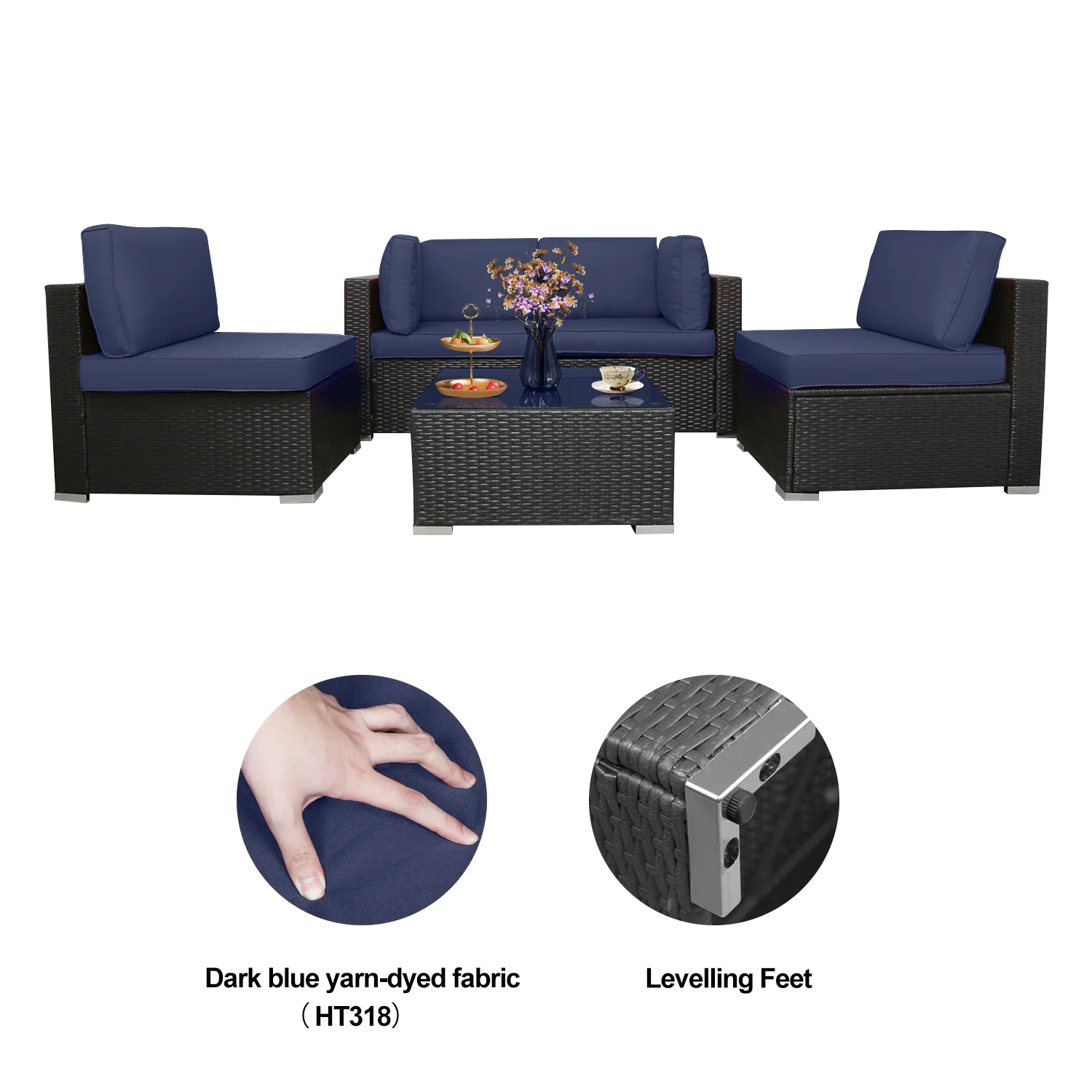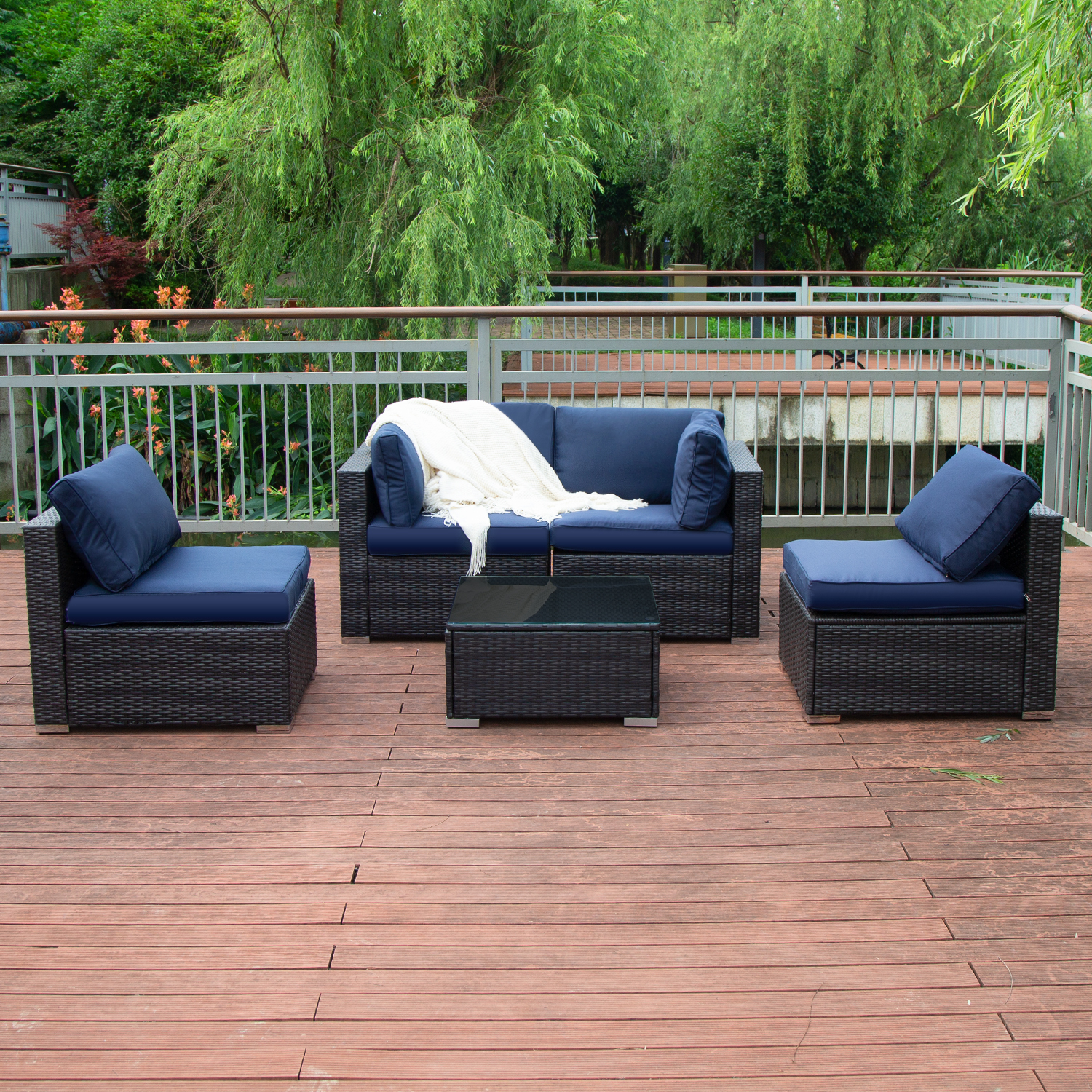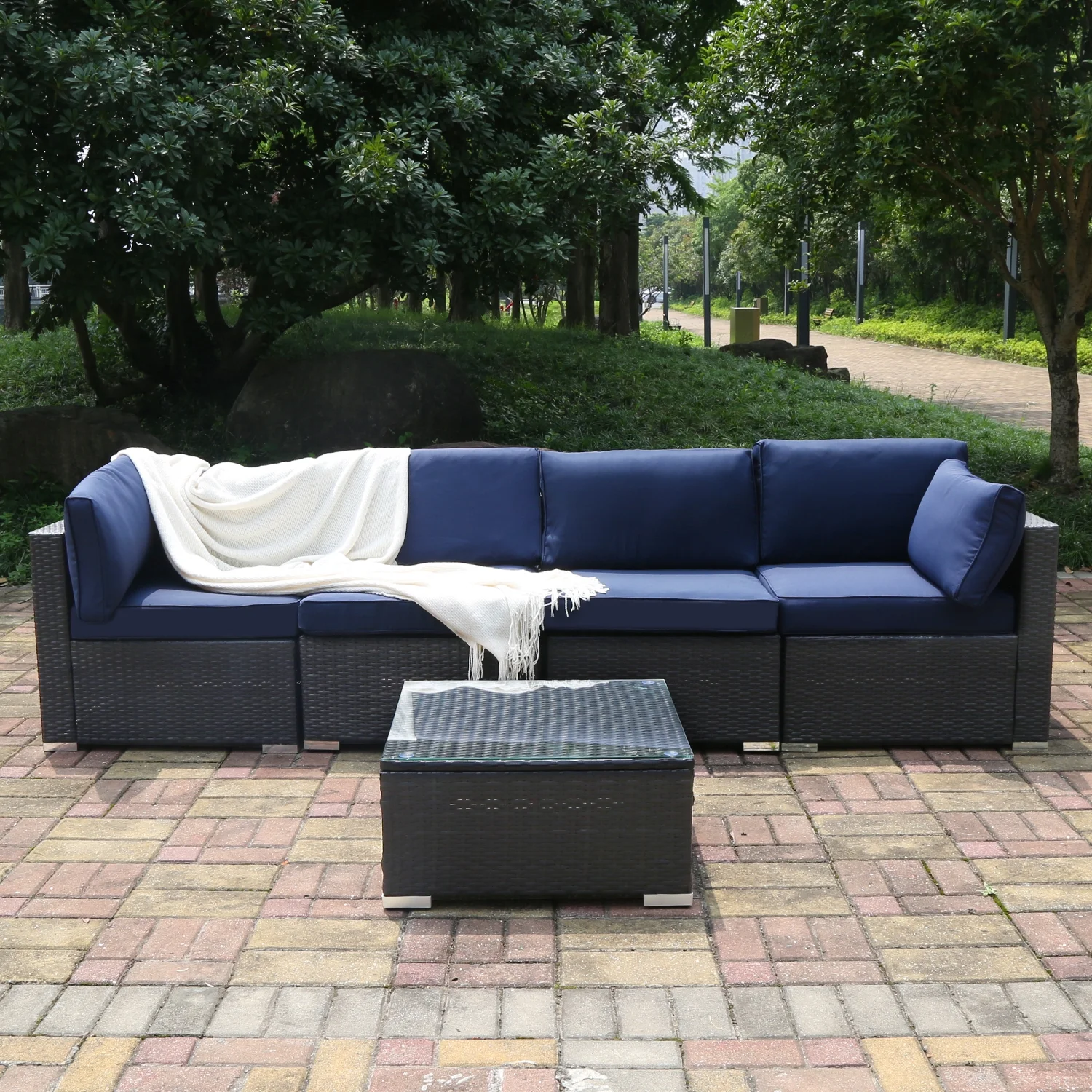 Excited Work 5 Pcs Patio Sofa PE Rattan Outdoor Wicker (BLUE) Patio Conversation Set