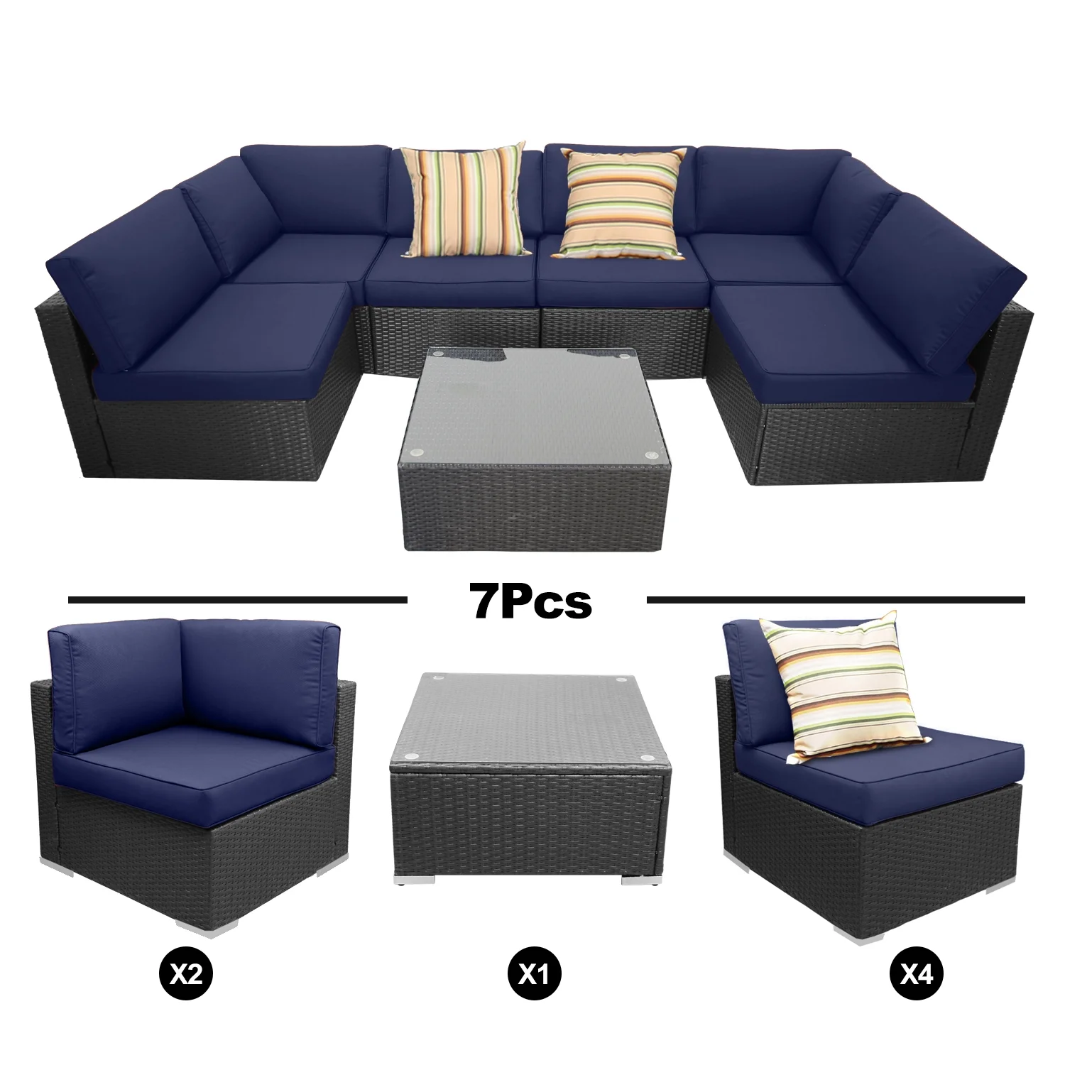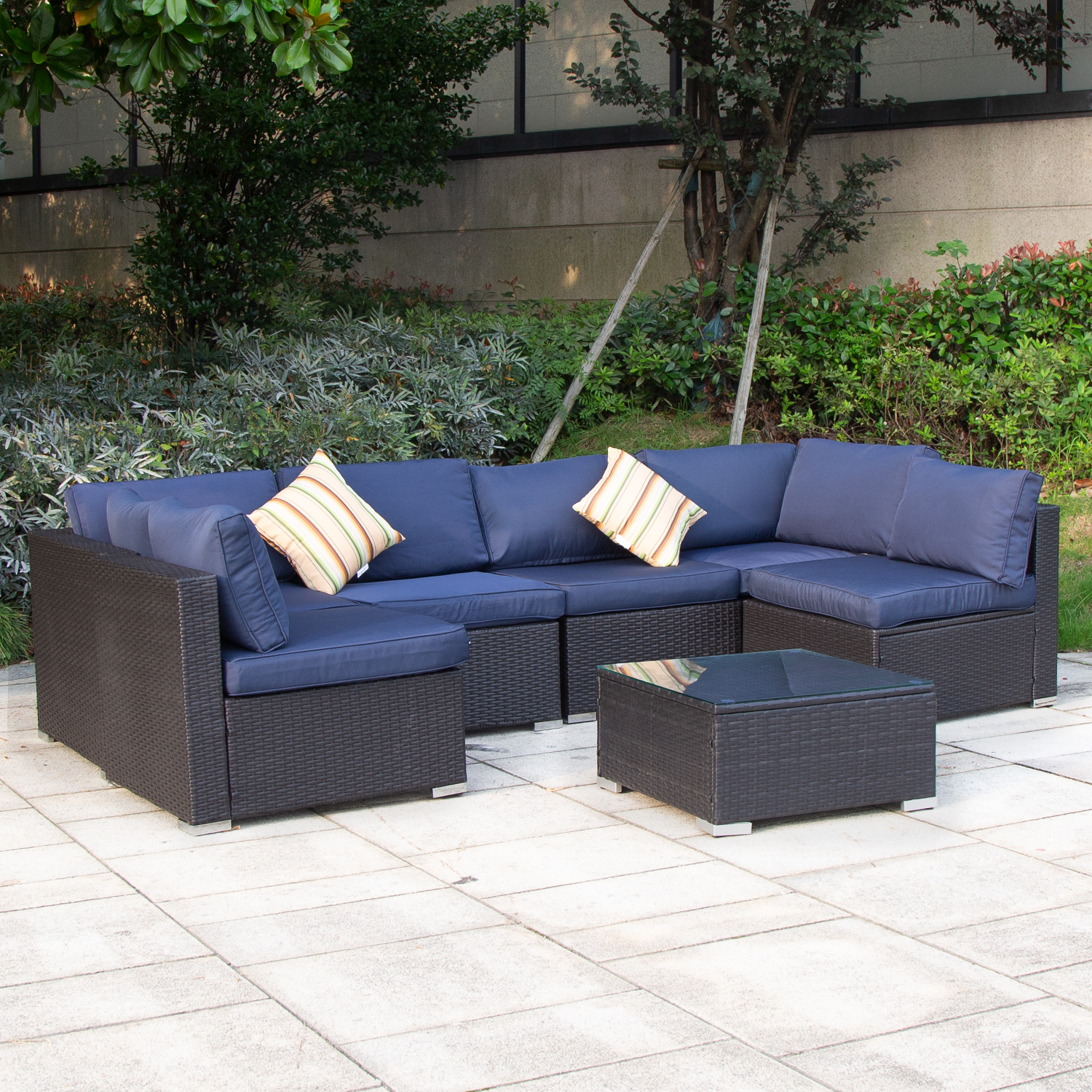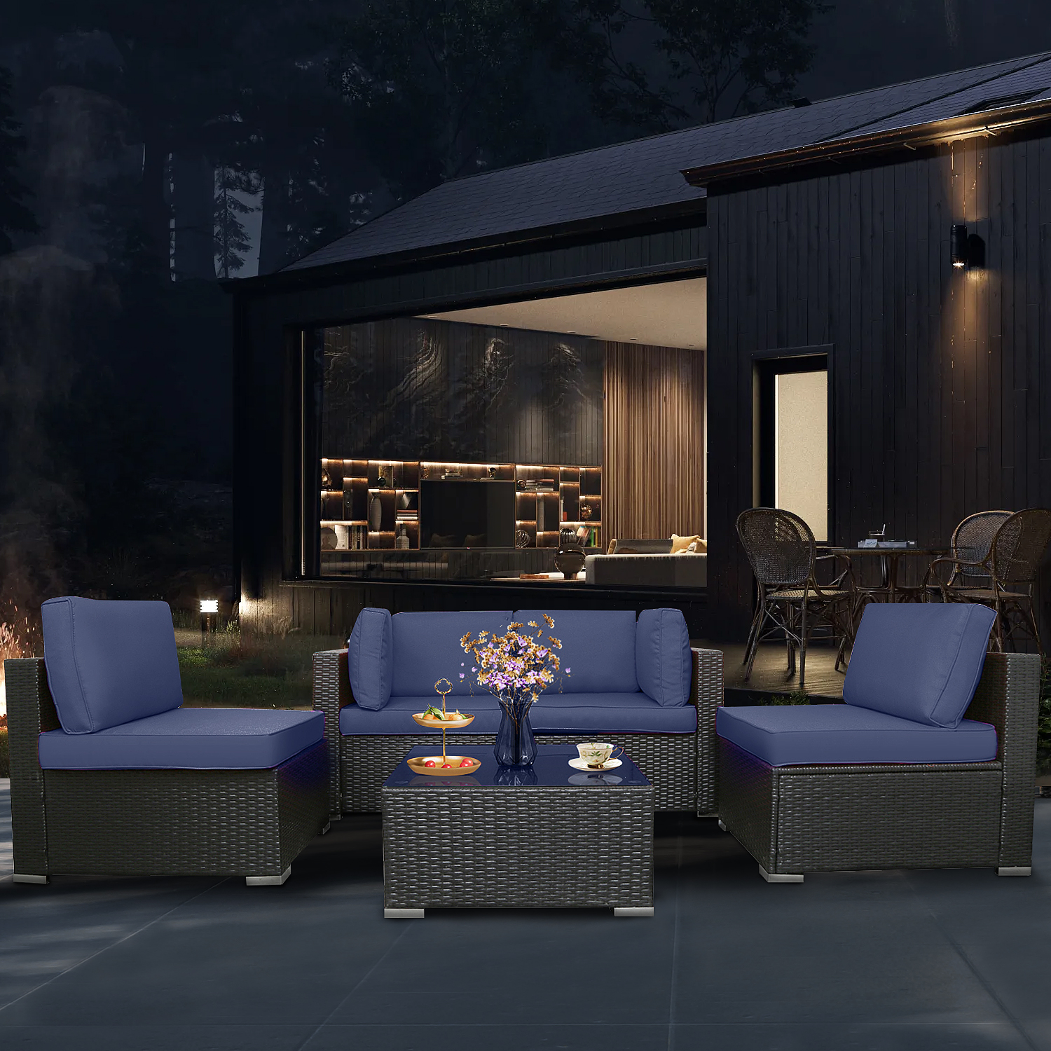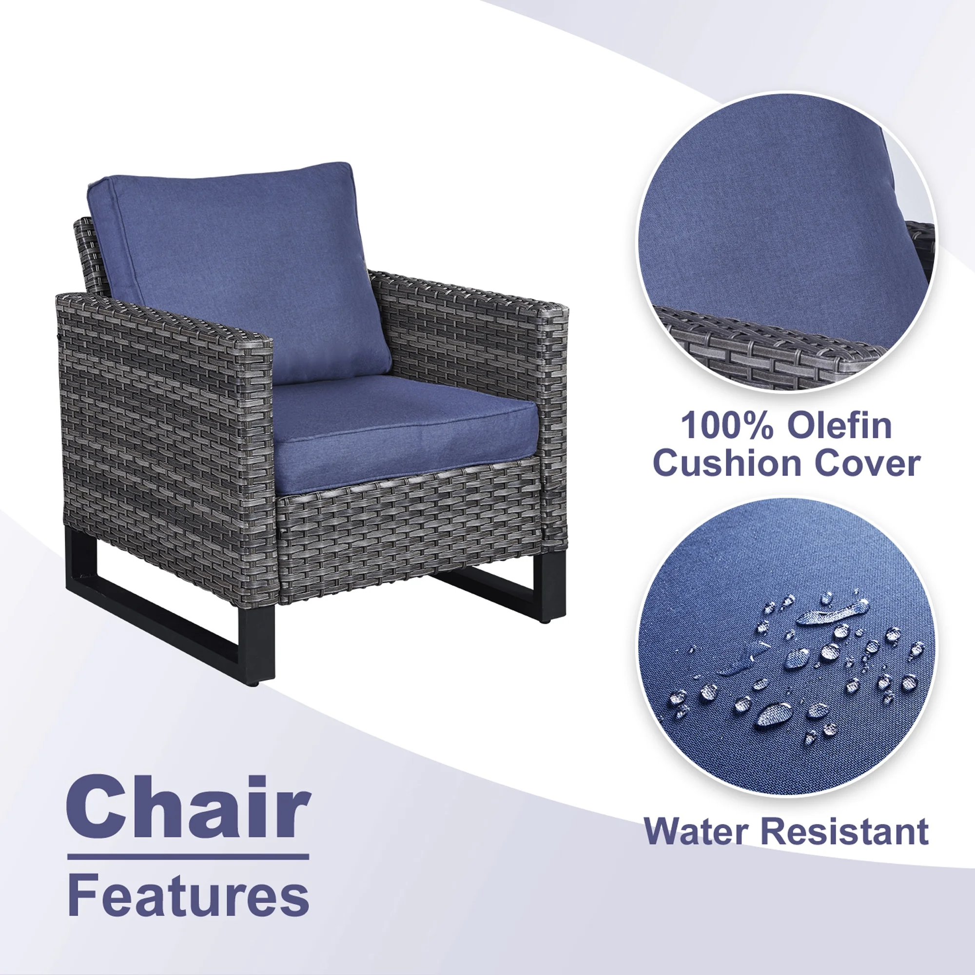 Excited Work 5 Pcs Patio Sofa PE Rattan Outdoor Wicker (BLUE) Patio Conversation Set