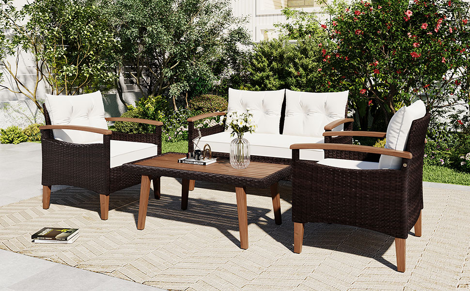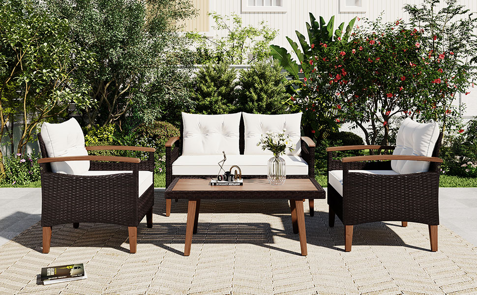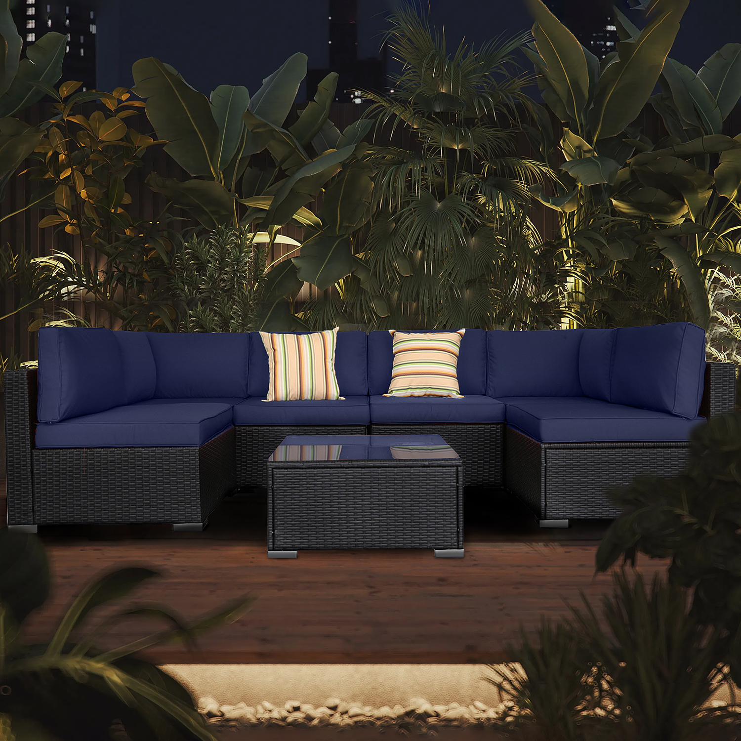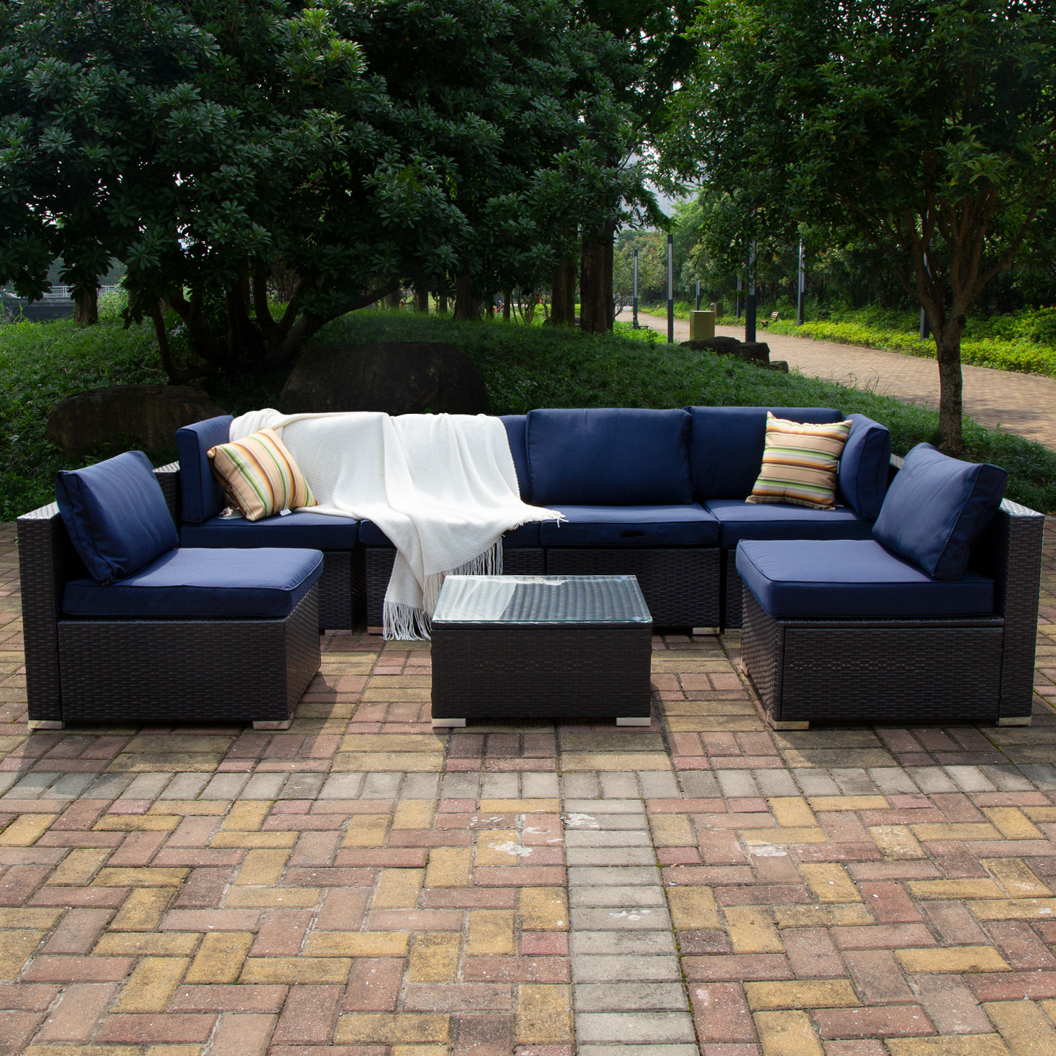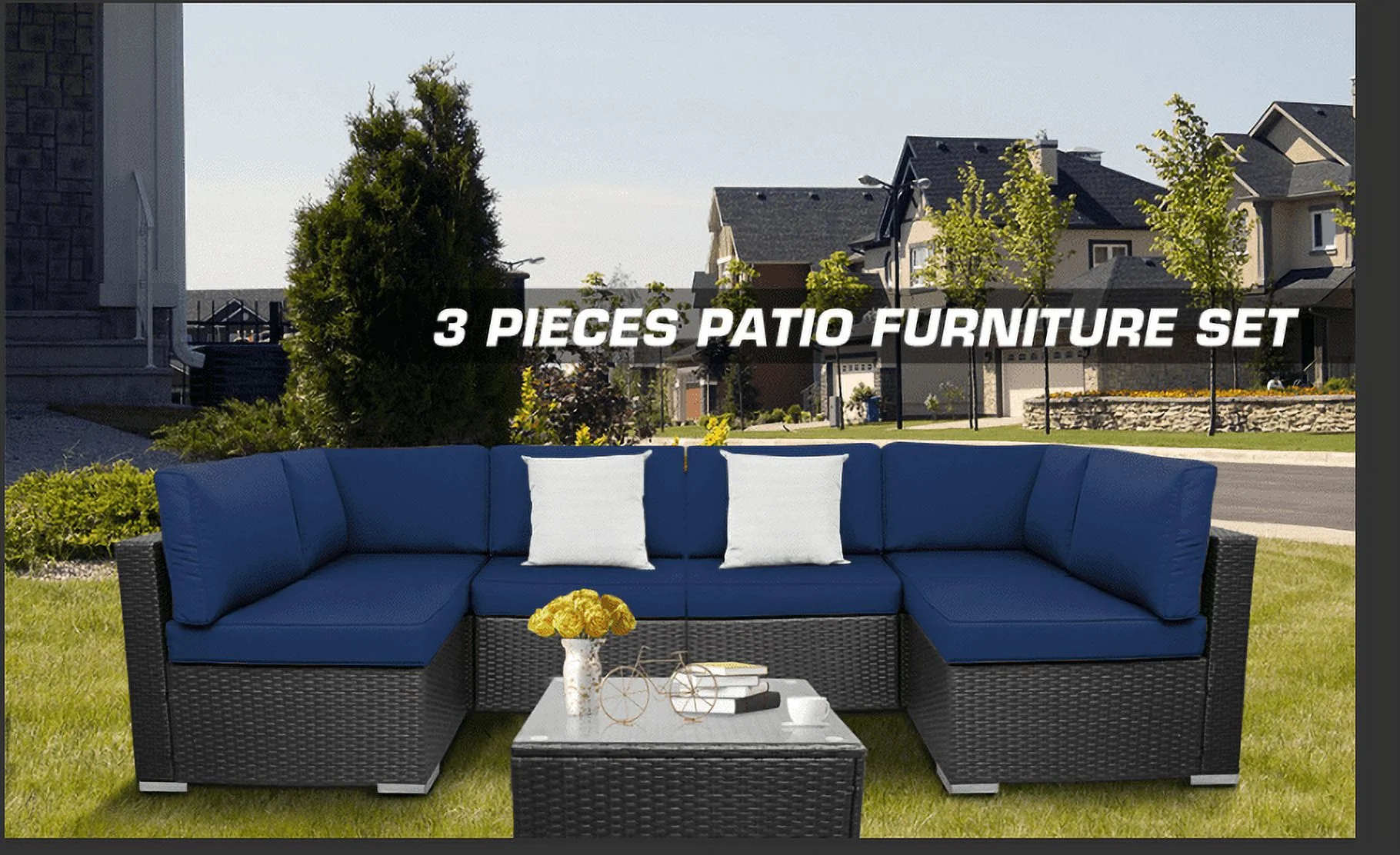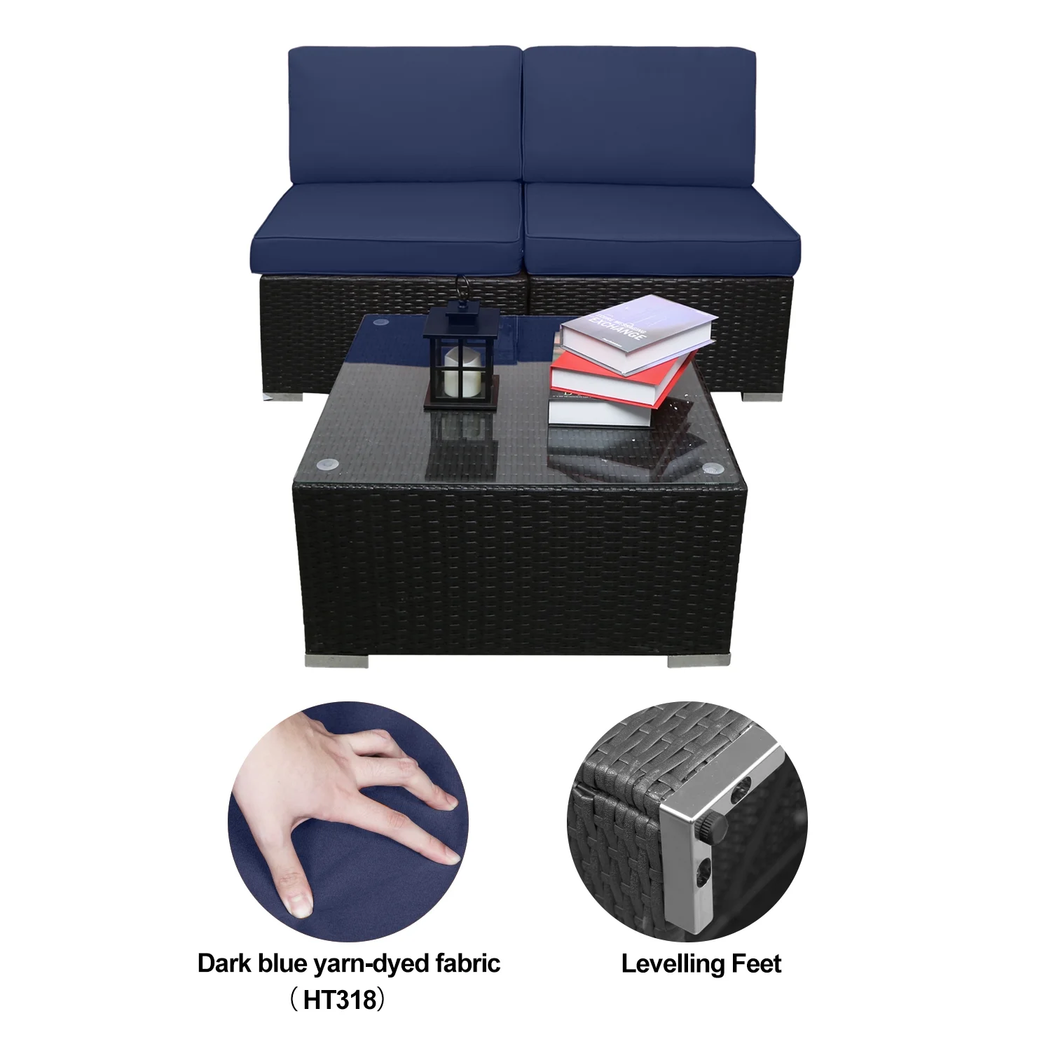 Excited Work 5 Pcs Patio Sofa PE Rattan Outdoor Wicker (BLUE) Patio Conversation Set