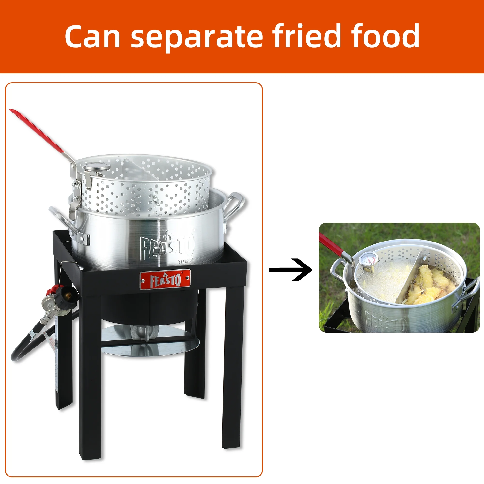 FEASTO 10 Qt Aluminum Pots Set, Electronic Ignition,55000BTU Propane Burner for Outdoor Cooking