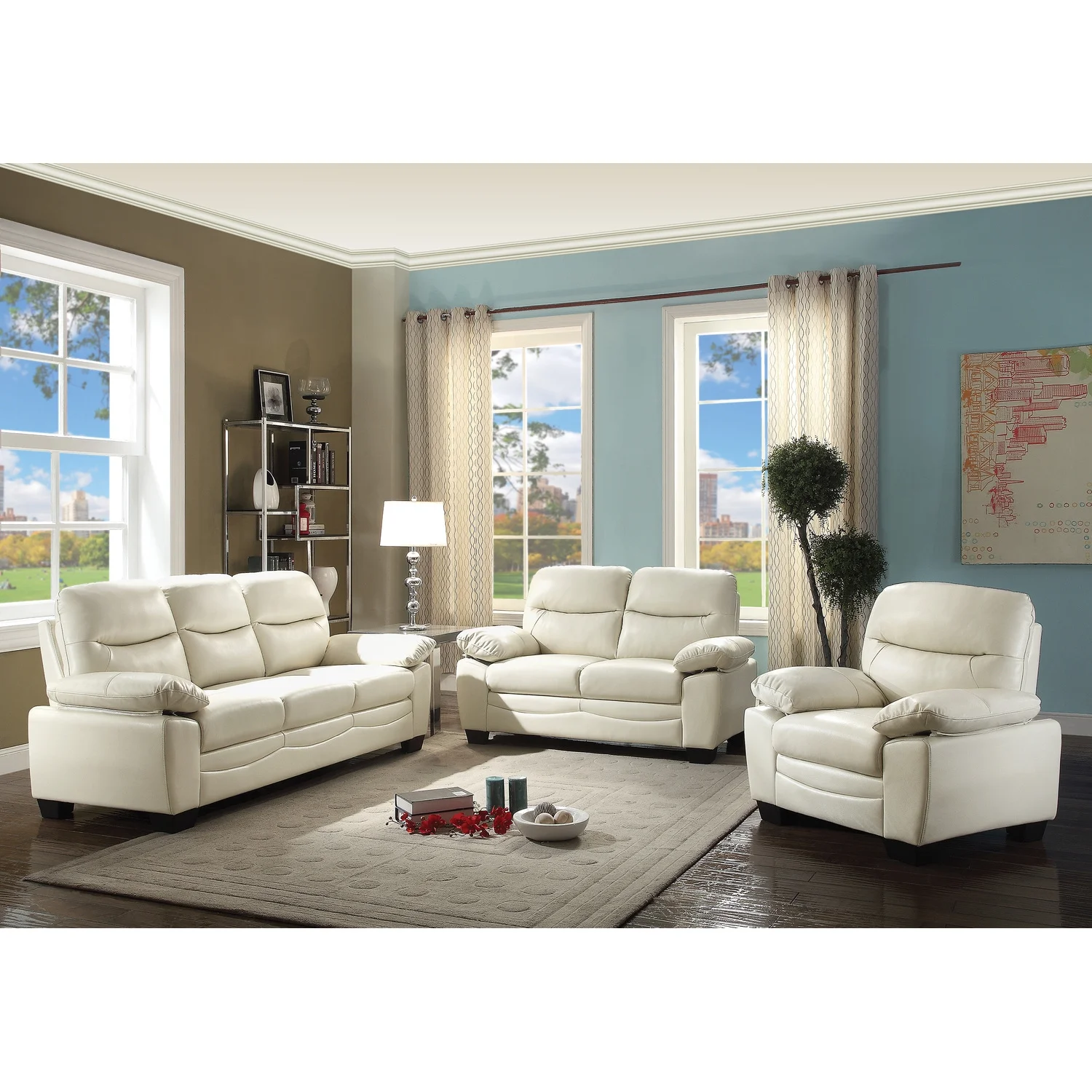 Passion Furniture Marta Flared Arm Faux Leather Pearl Straight Sofa PF-G675-S