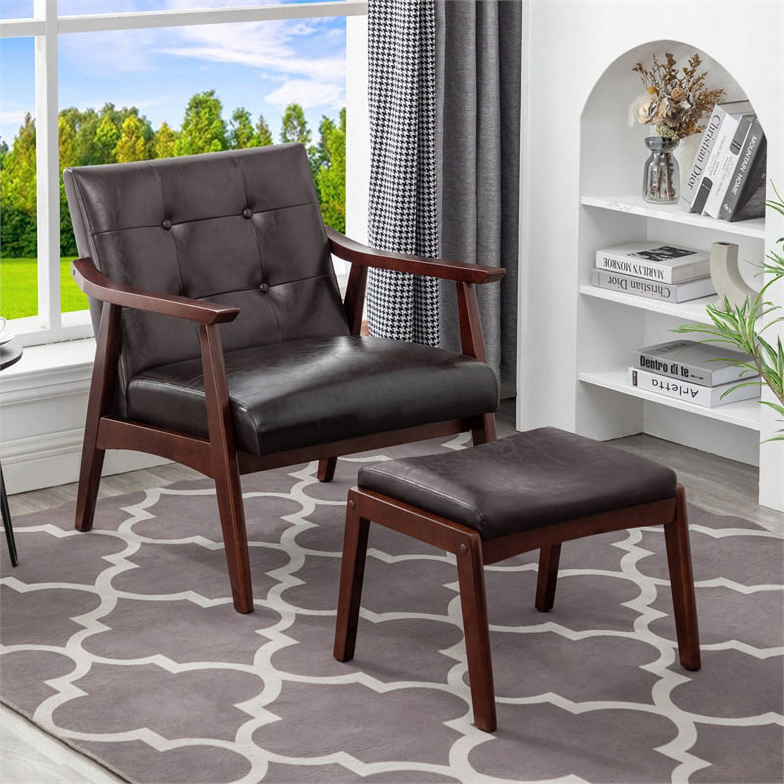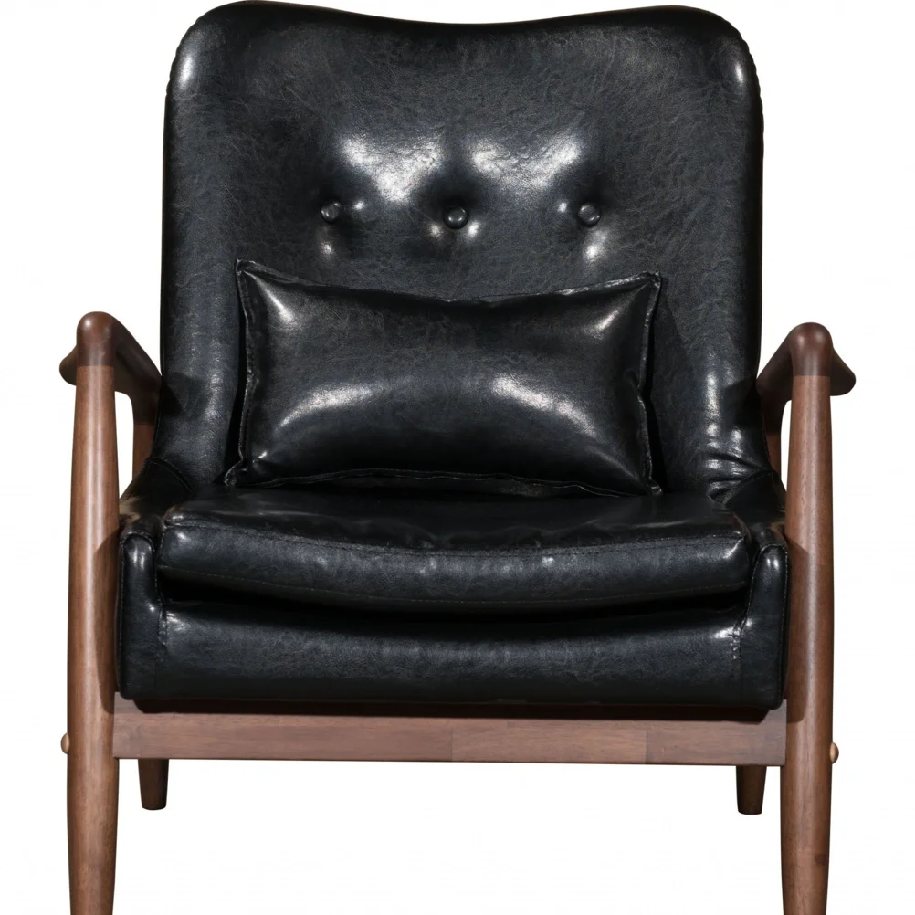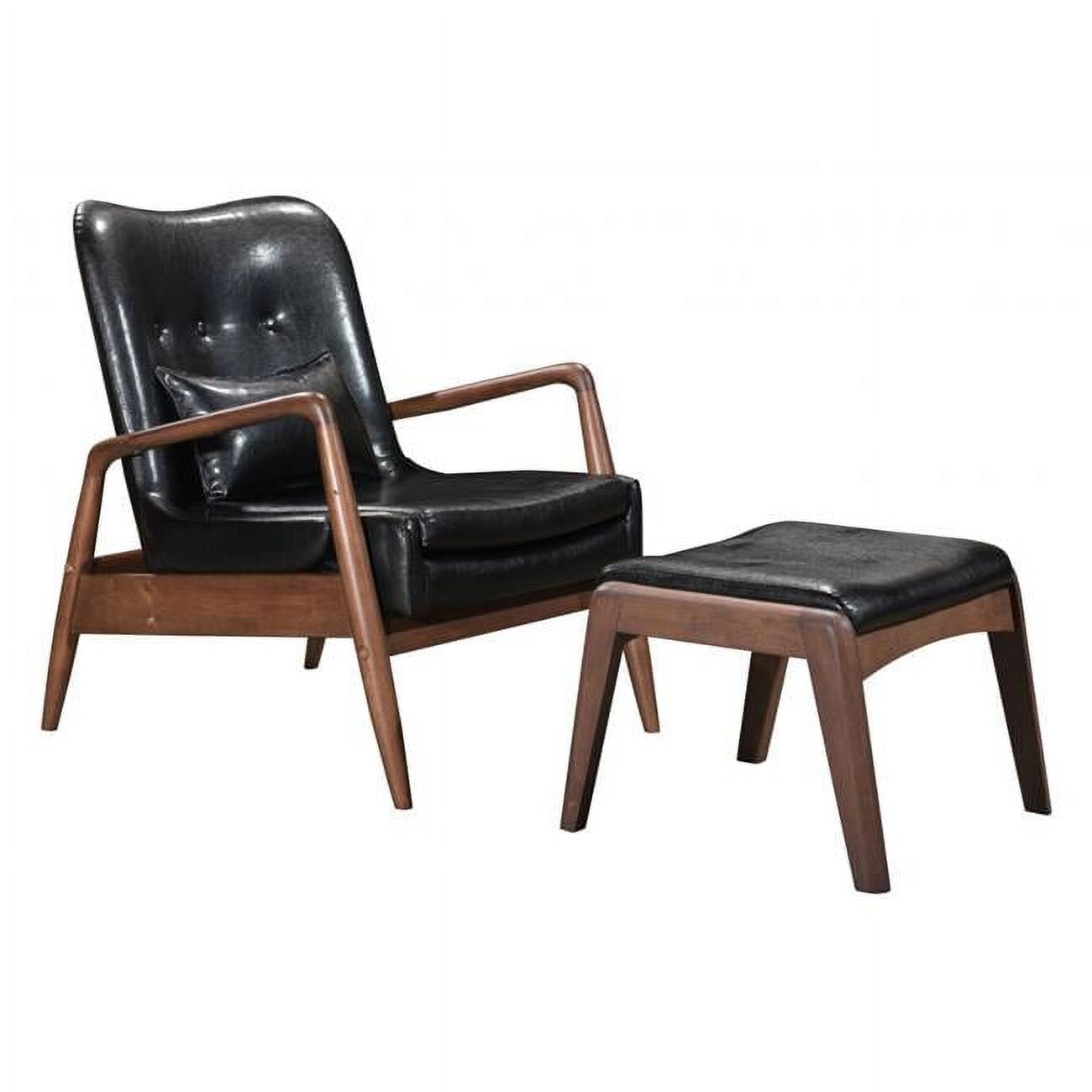 HomeRoots 394540 32.7 x 30.3 x 33.5 in. Walnut & Black Faux Leather Modern Retro Chair & Ottoman Set