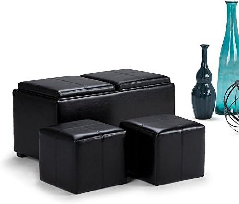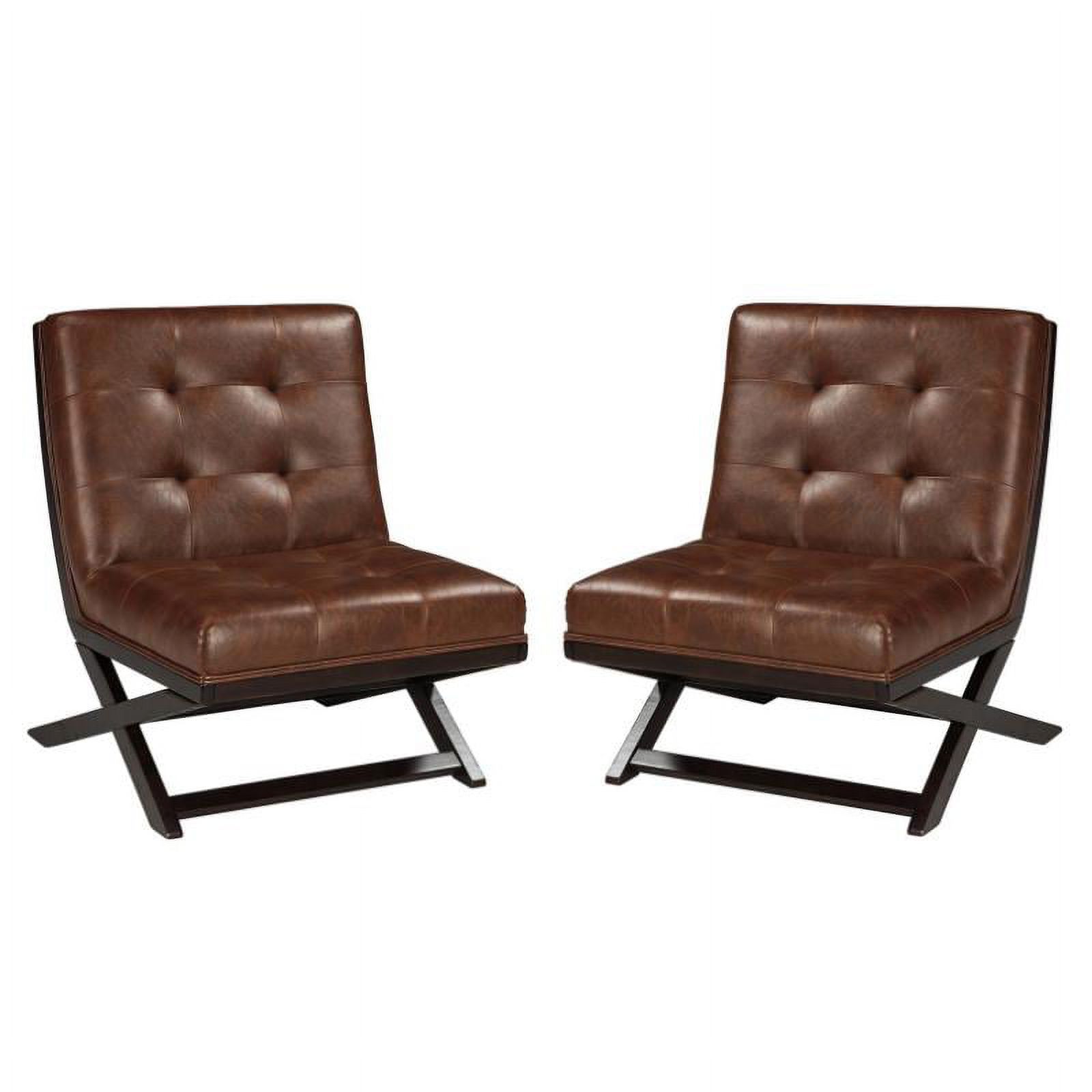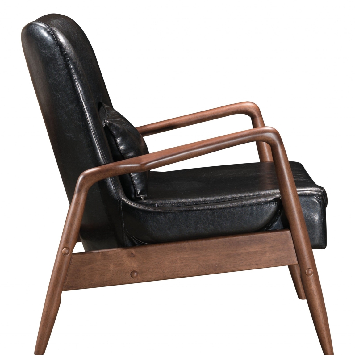 HomeRoots 394540 32.7 x 30.3 x 33.5 in. Walnut & Black Faux Leather Modern Retro Chair & Ottoman Set