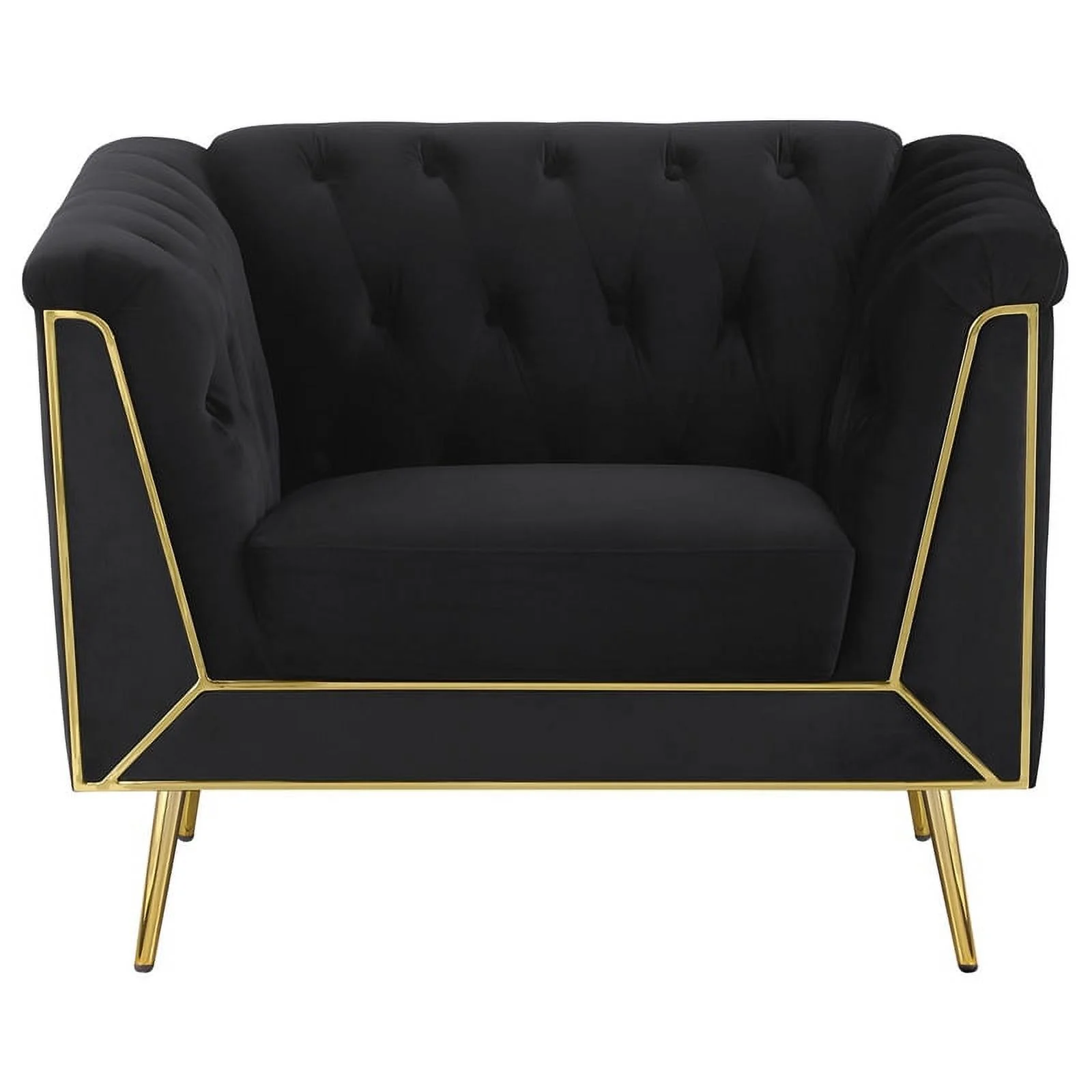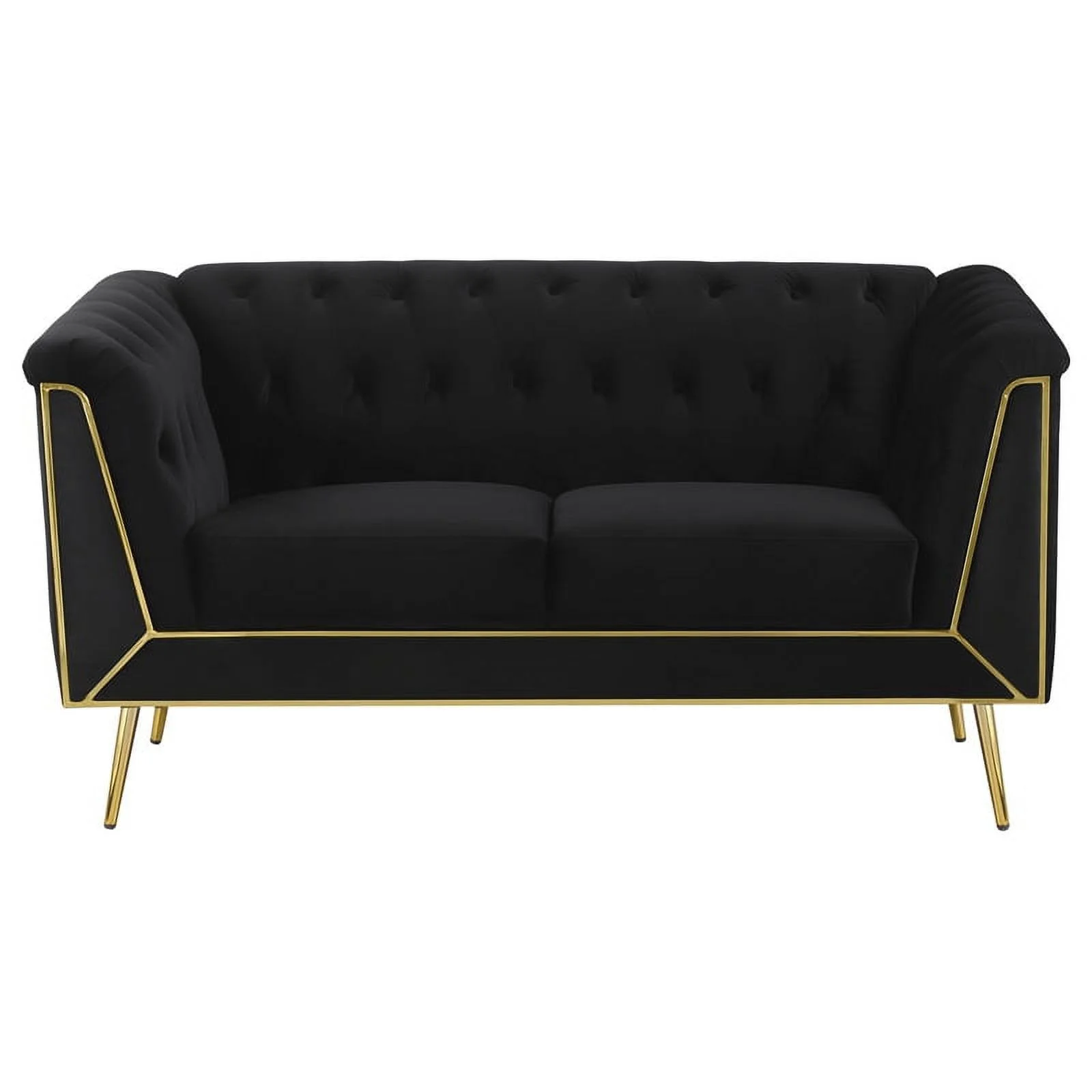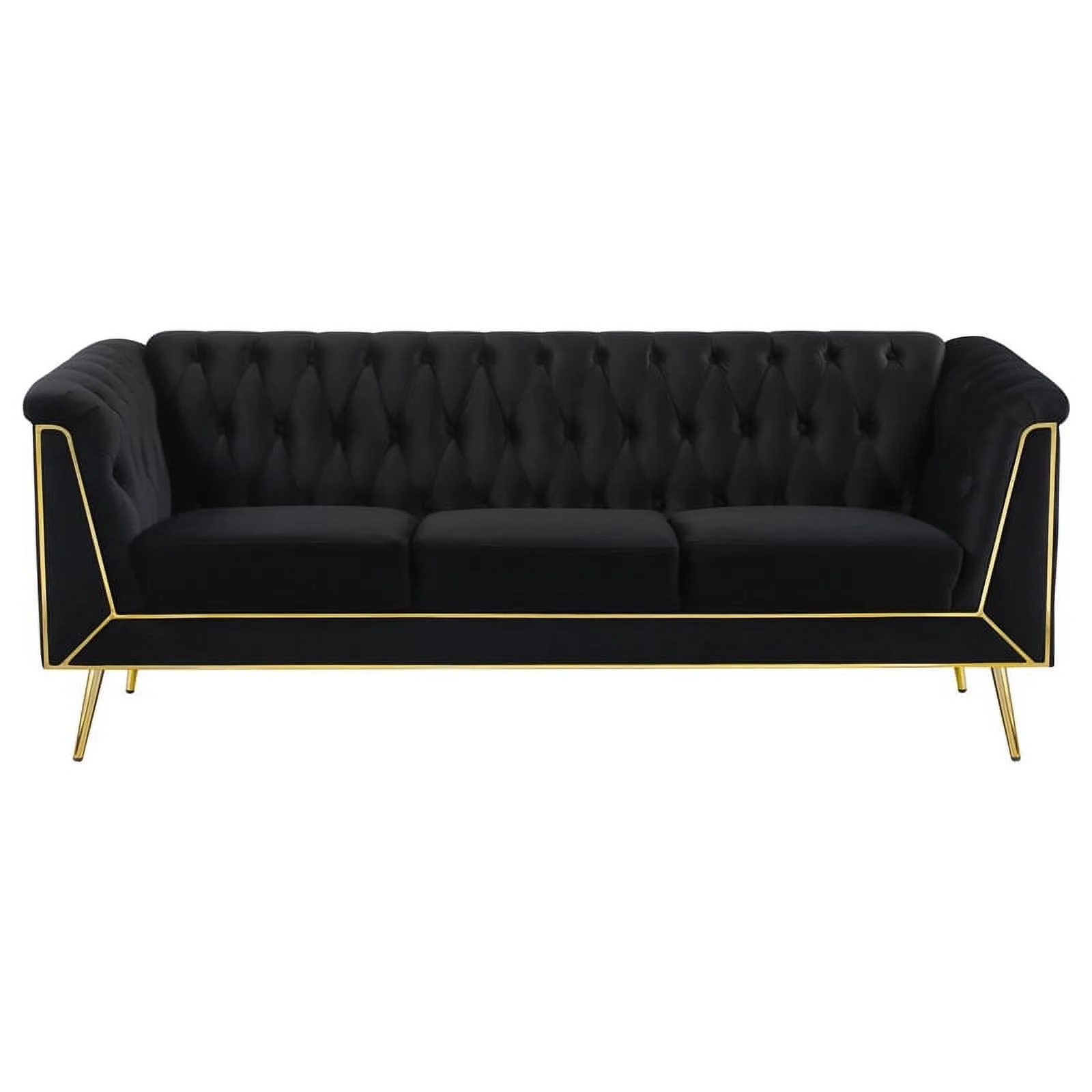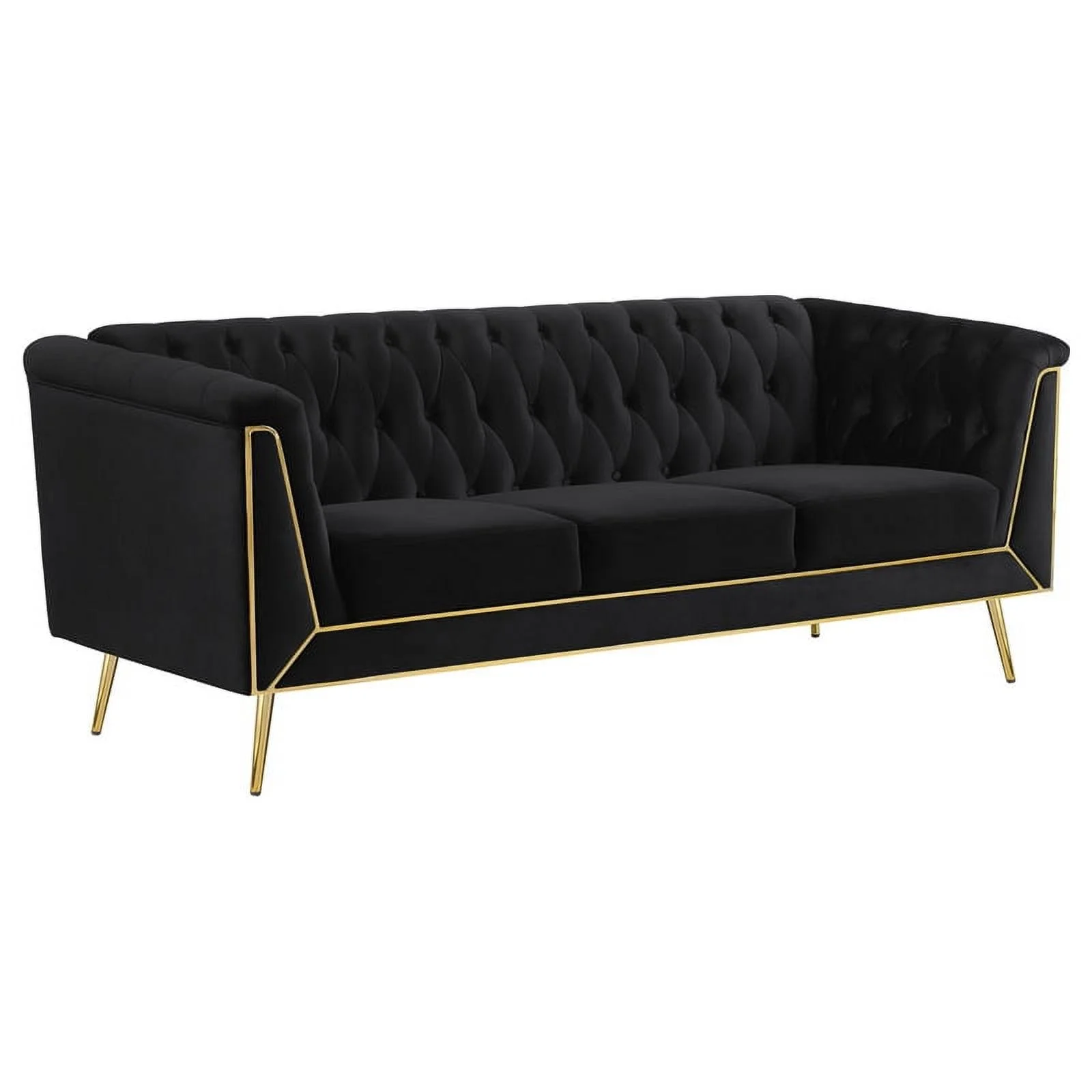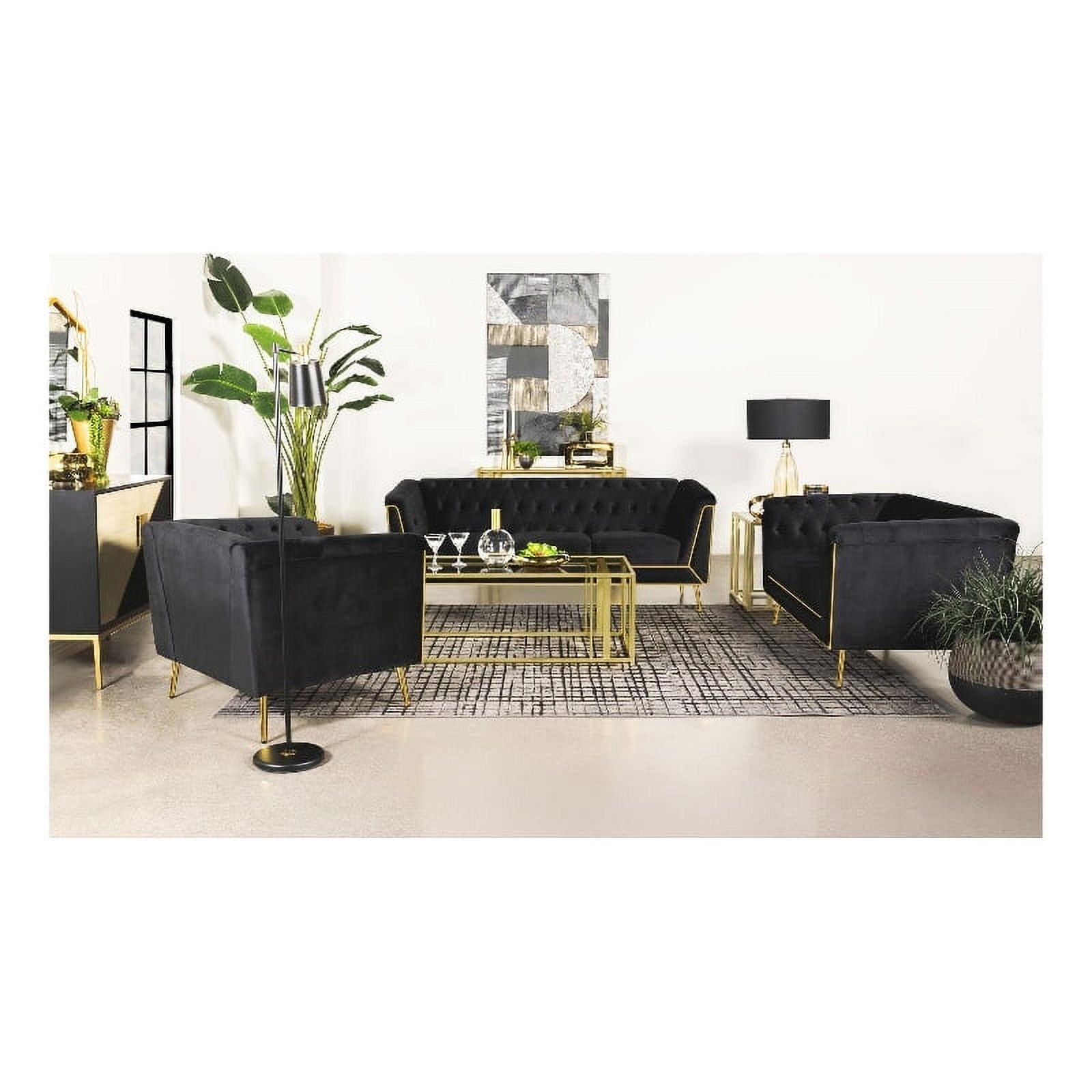 Maklaine 3-piece Fabric Tuxedo Arm Tufted Back Living Room Set in Black