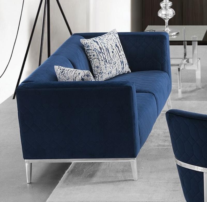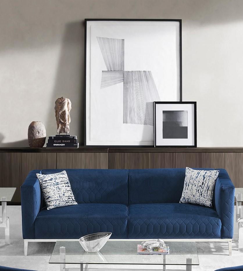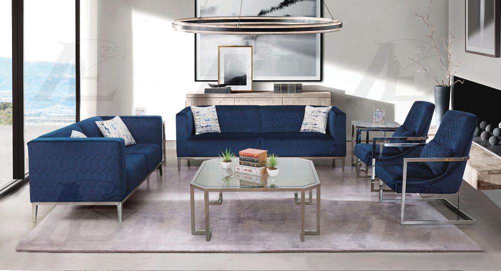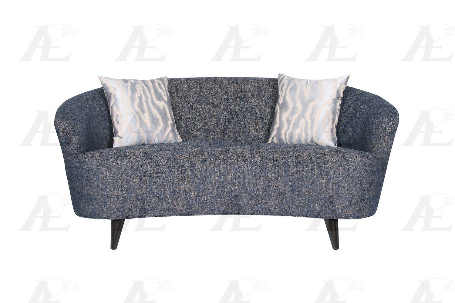 Modern Dark Blue Fabric Sofa & Loveseat Set 2 Pcs American Eagle AE3802