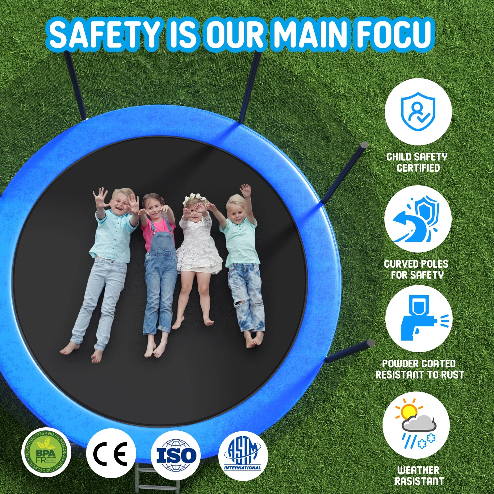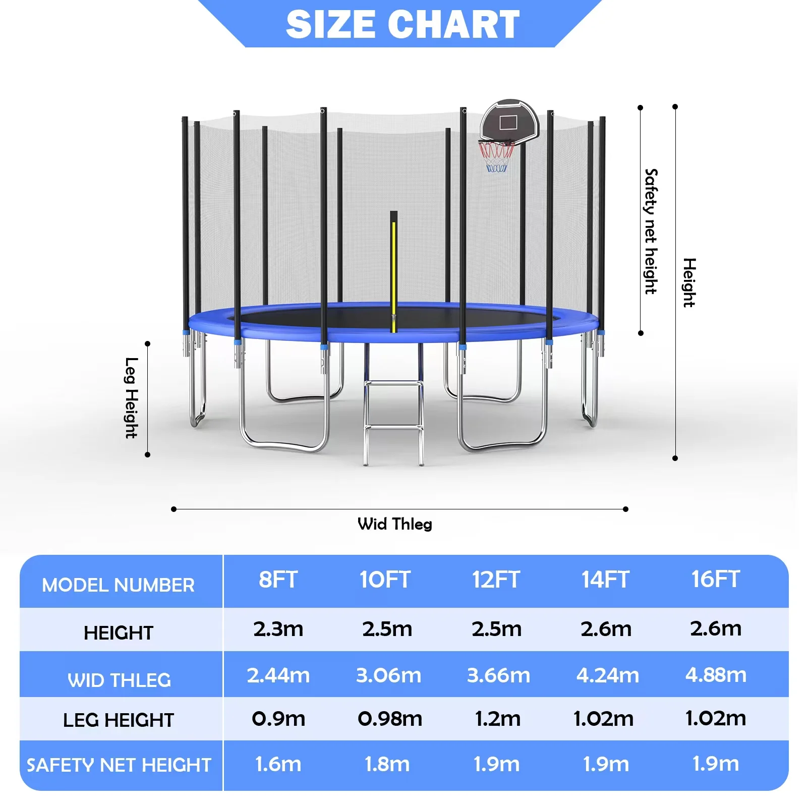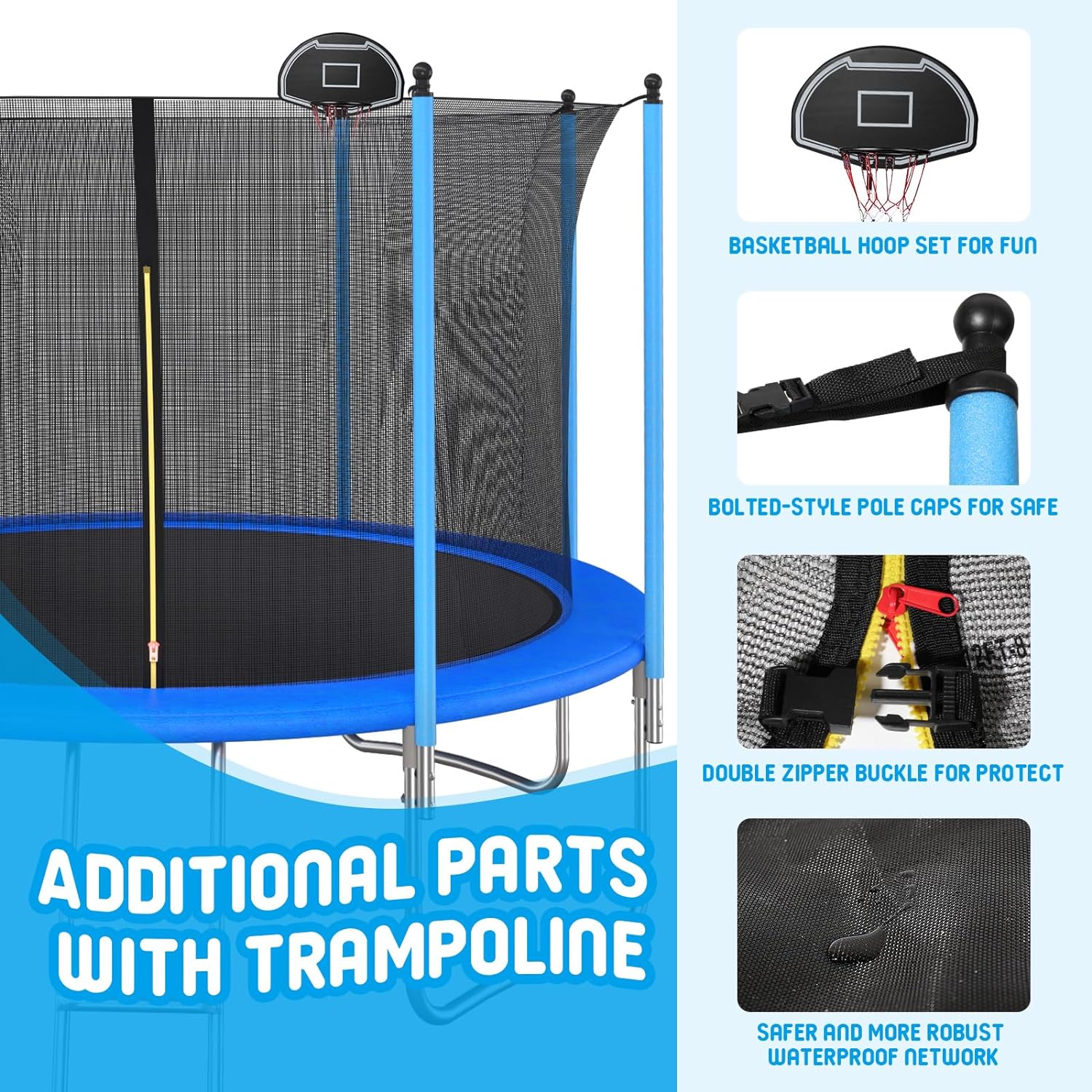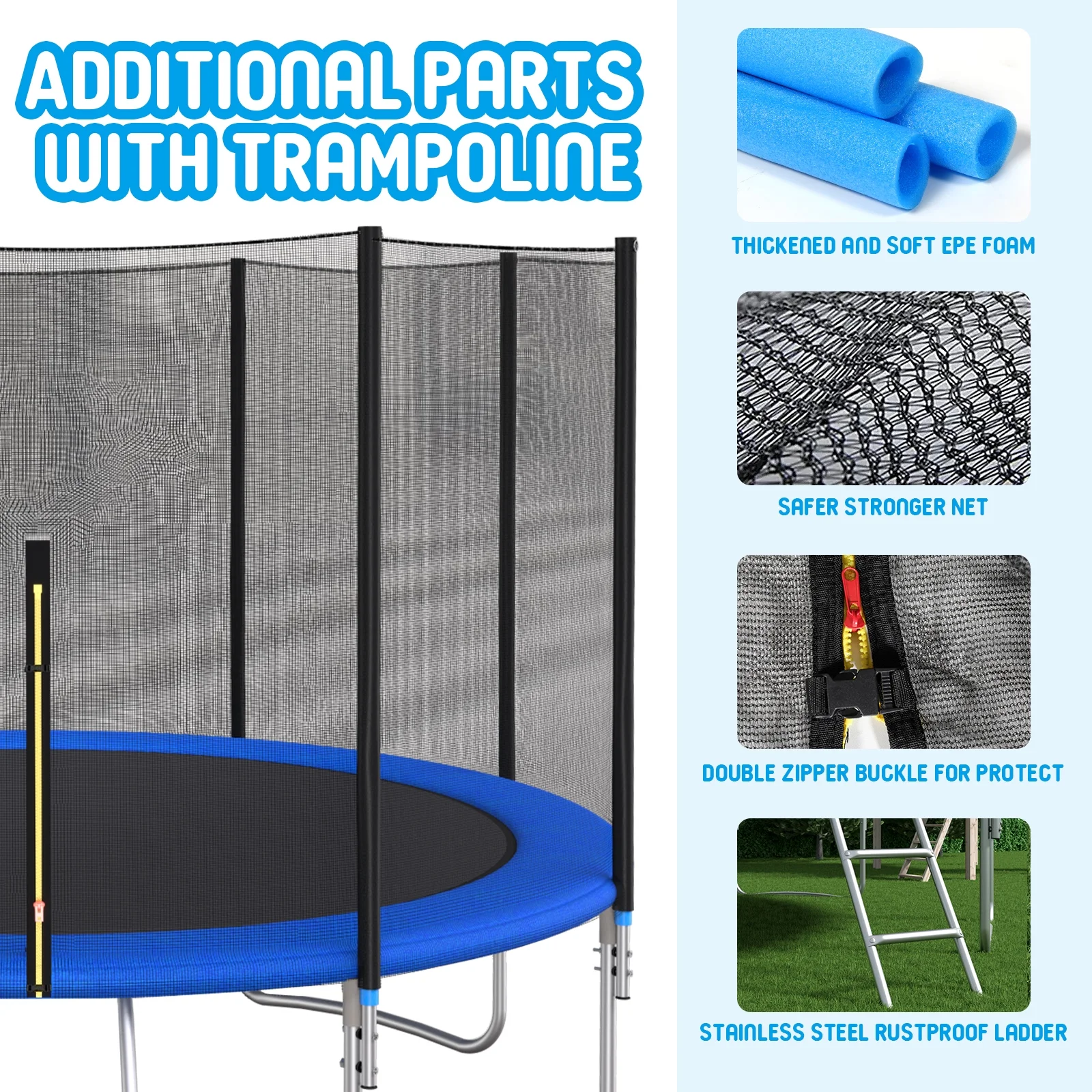 10 foot outdoor trampoline 78sqft & safety net enclosure, blue jk10vc1