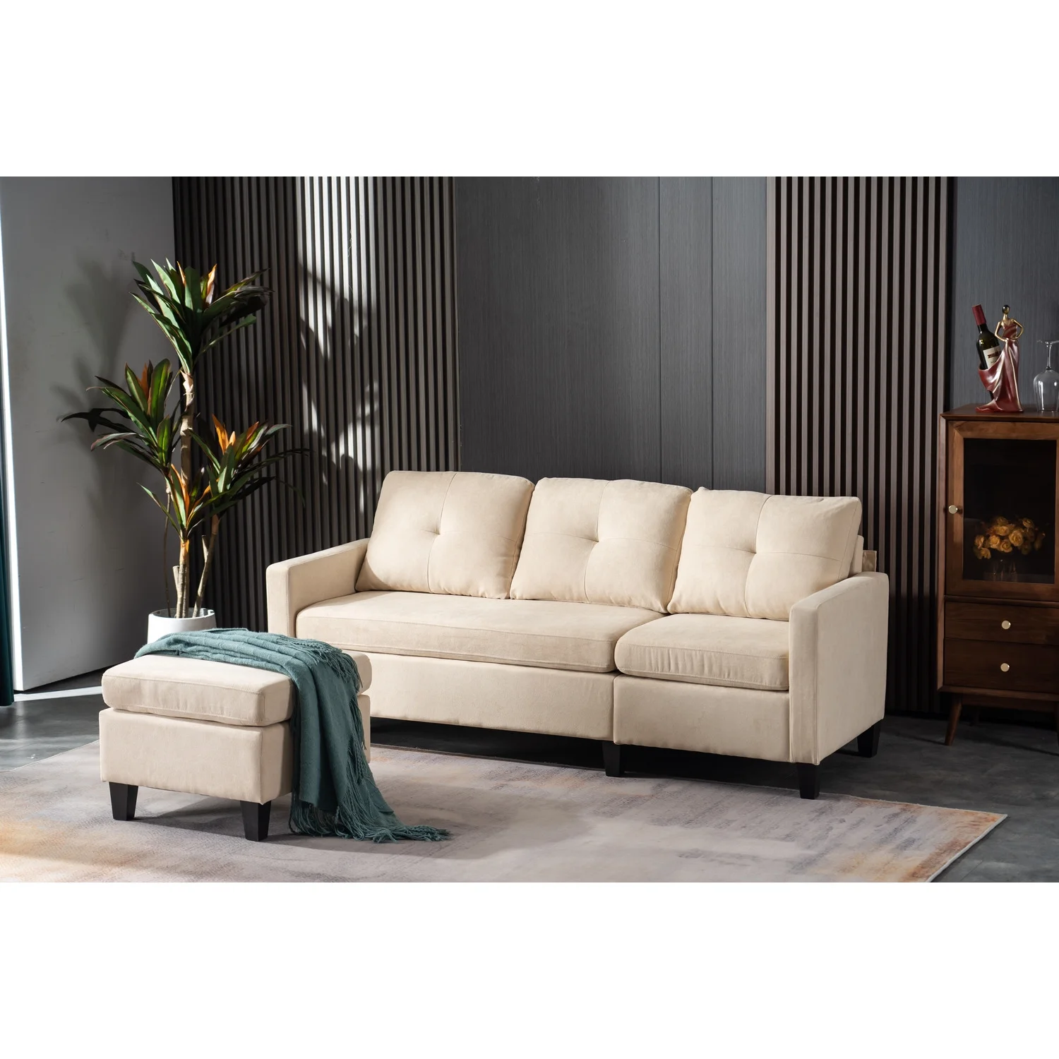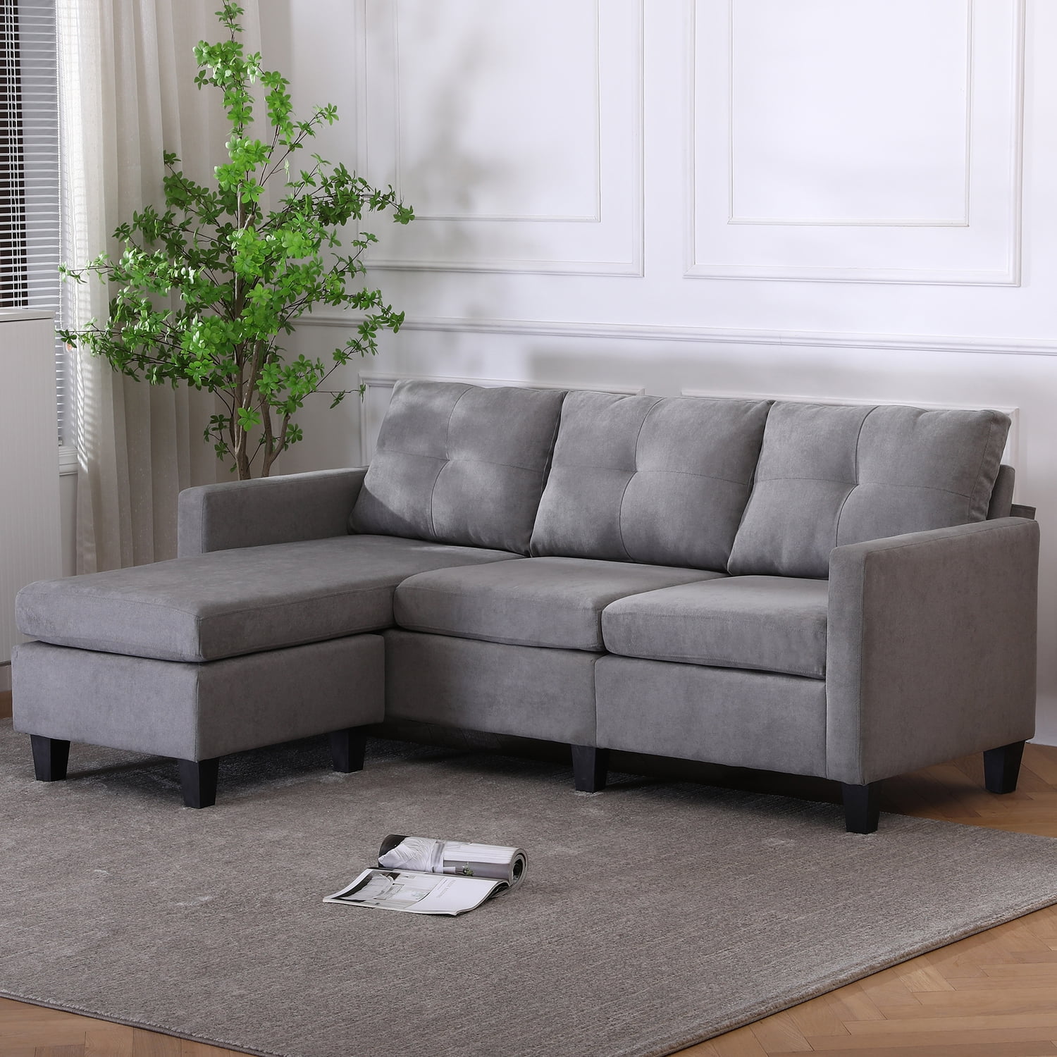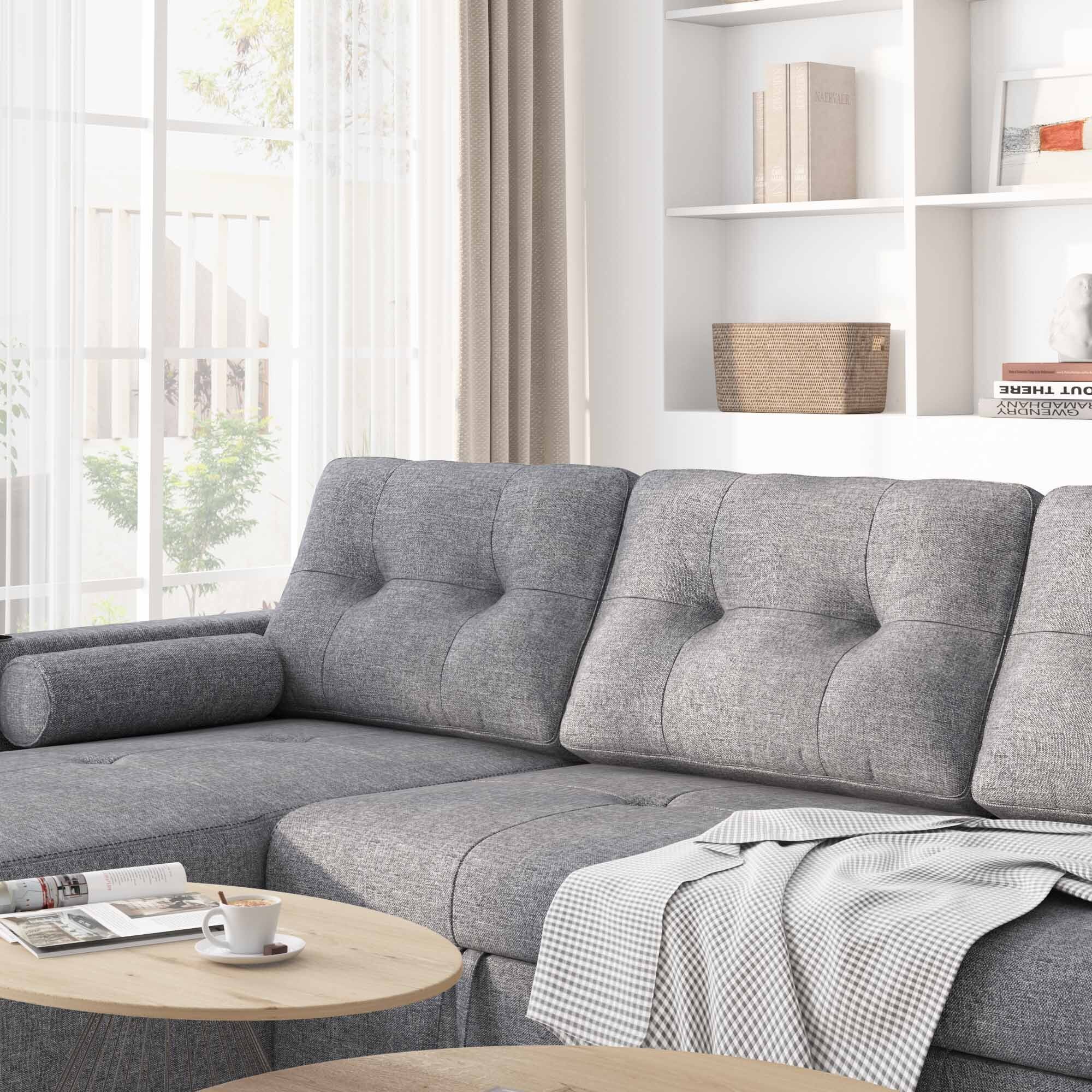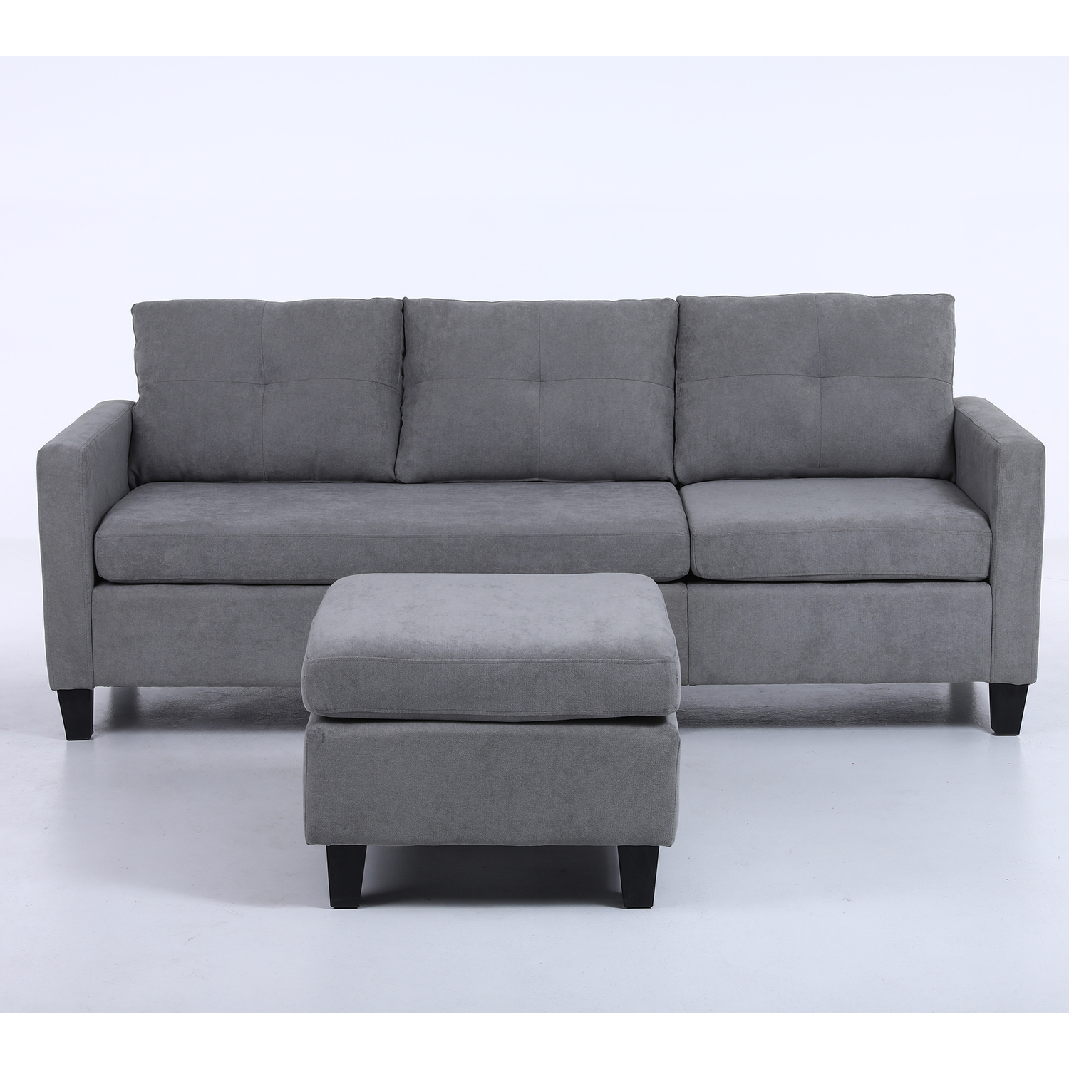 Alexent 75" Modern Fabric Sofa and Chaise Convertible to Ottoman in Gray