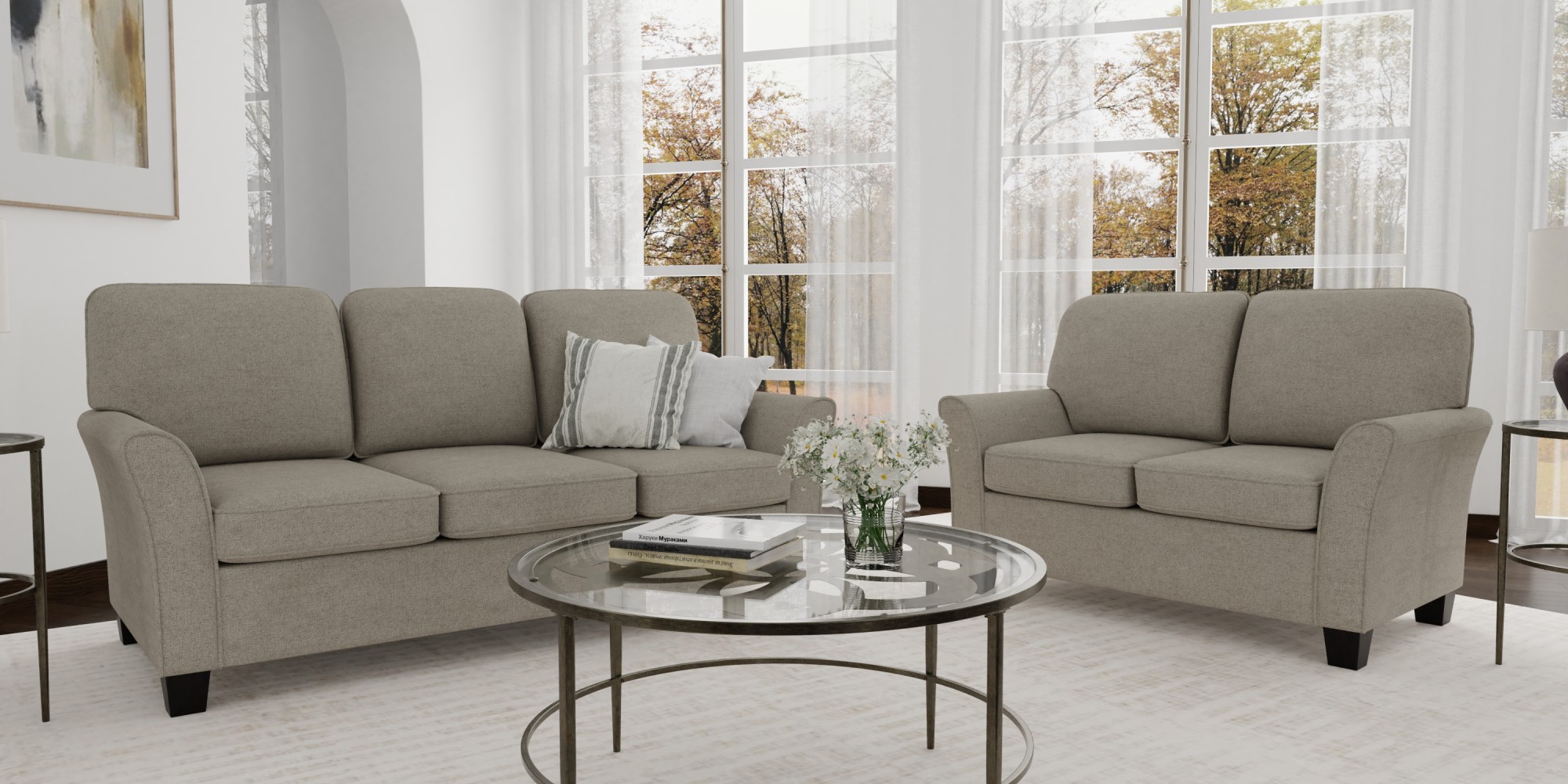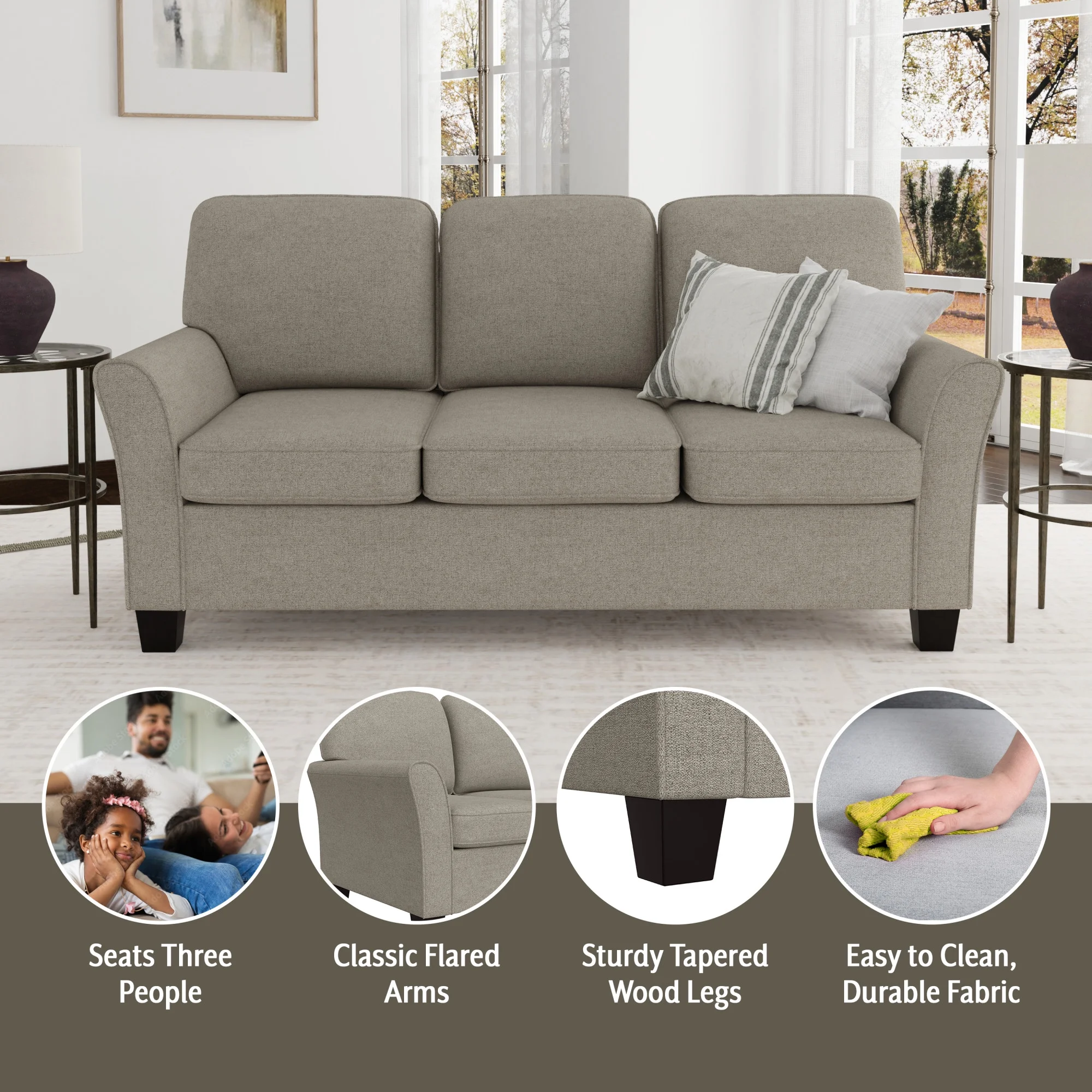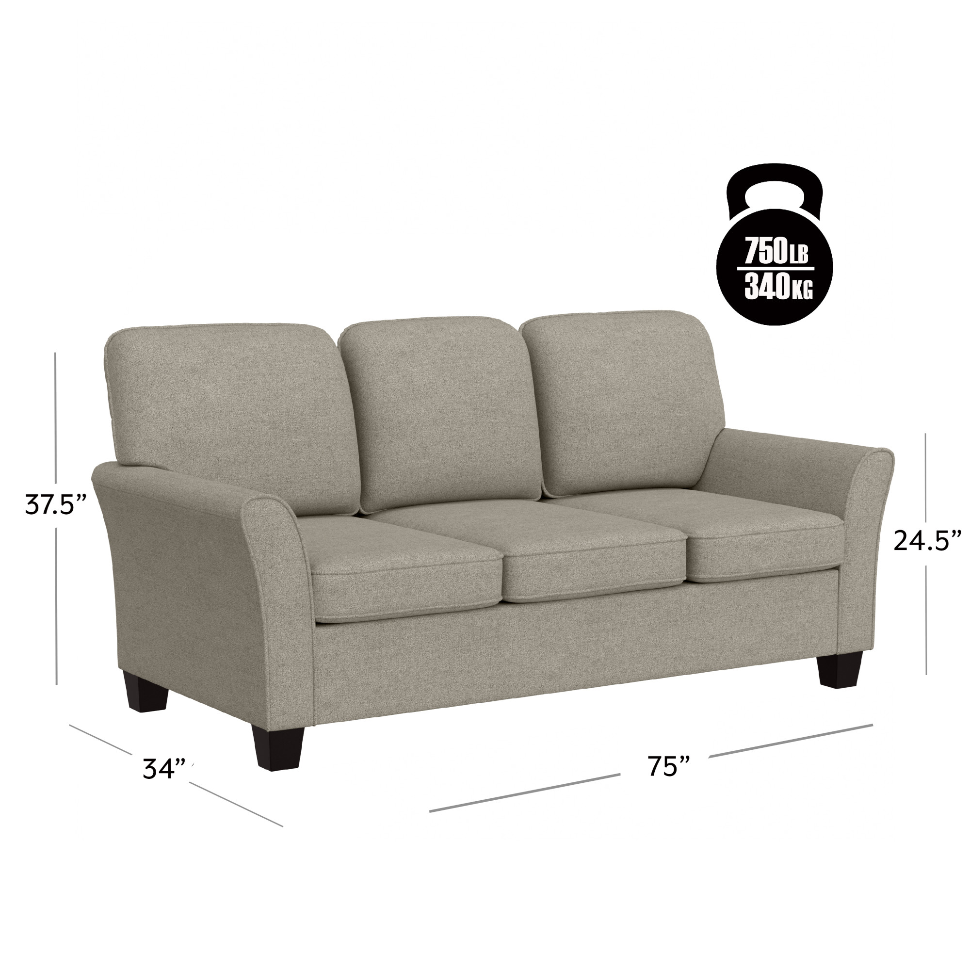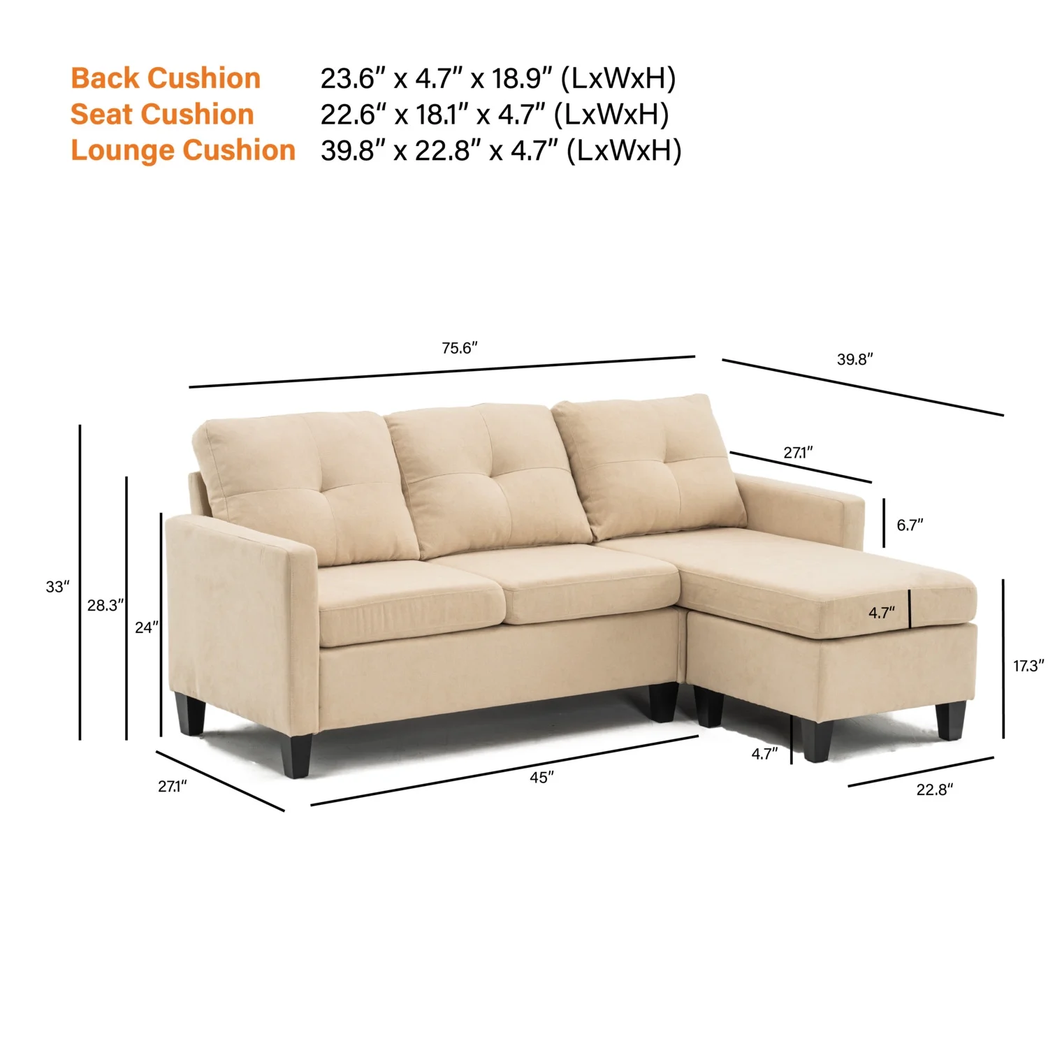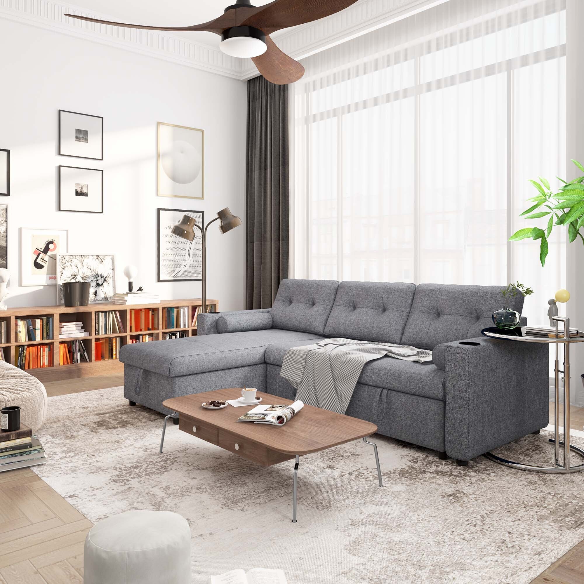 Alexent 75" Modern Fabric Sofa and Chaise Convertible to Ottoman in Gray