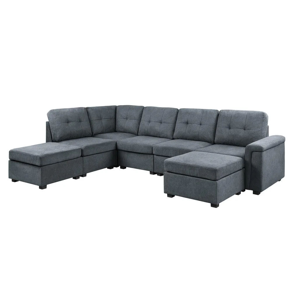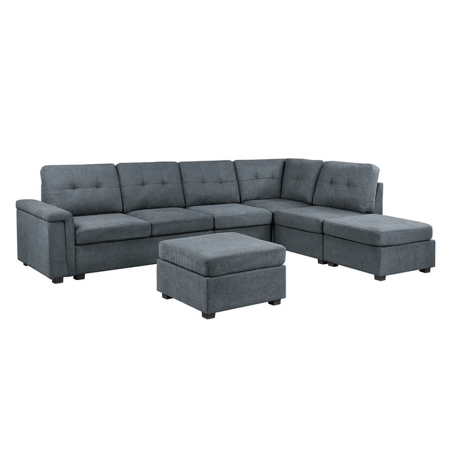 Flexsteel Flex 6-Seat Fabric Sectional with Standard Arm & Ottoman in Gray