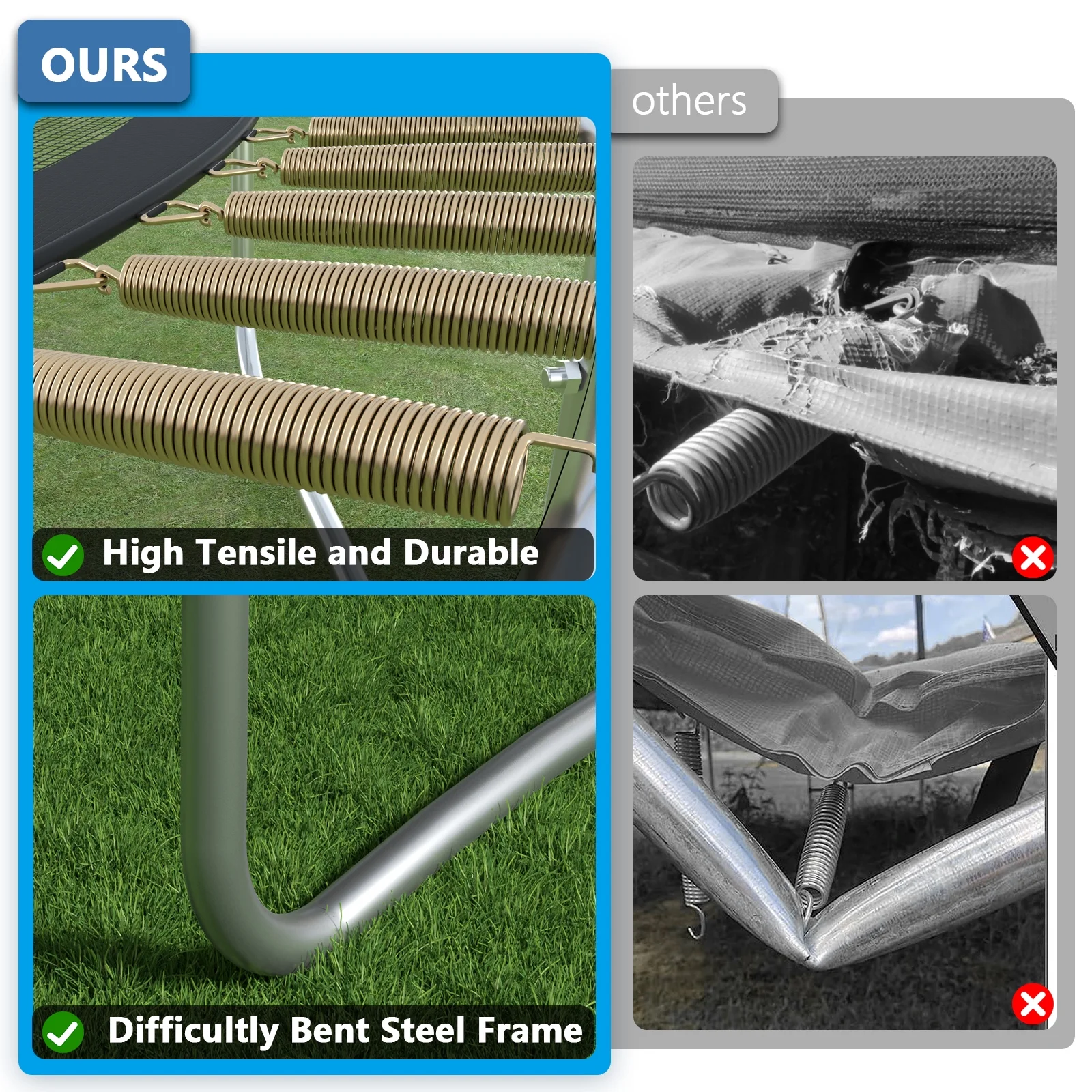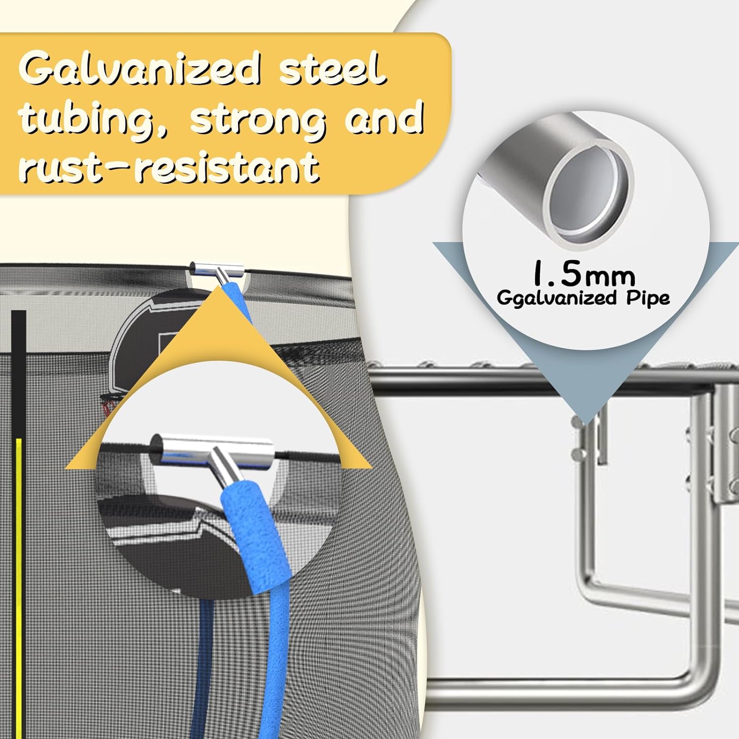 HEVAOTRY 12FT Trampoline with Steel Ladder & 1200lbs Capacity Safe Enclosure Net for Kids&Adults-Out Net