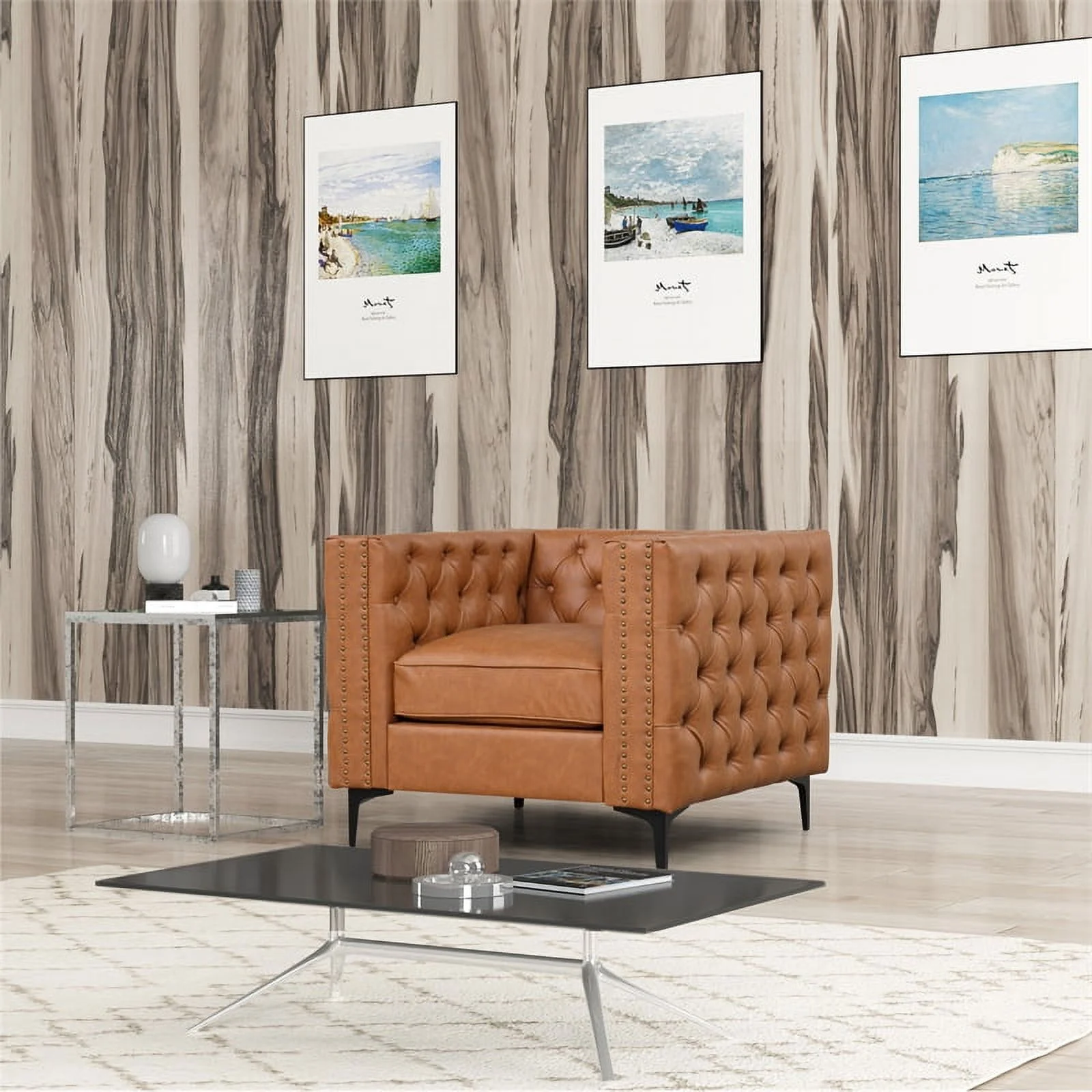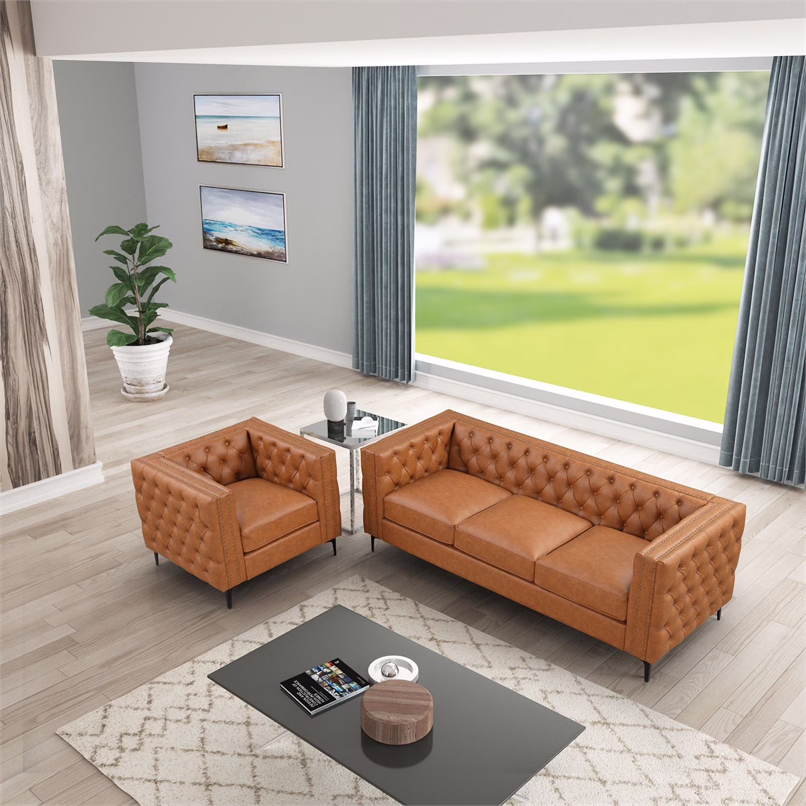 Rnfurnishings2-PC LeatherGel LivingRoom Furniture Sofa+Armchair Set-Saddle Brown