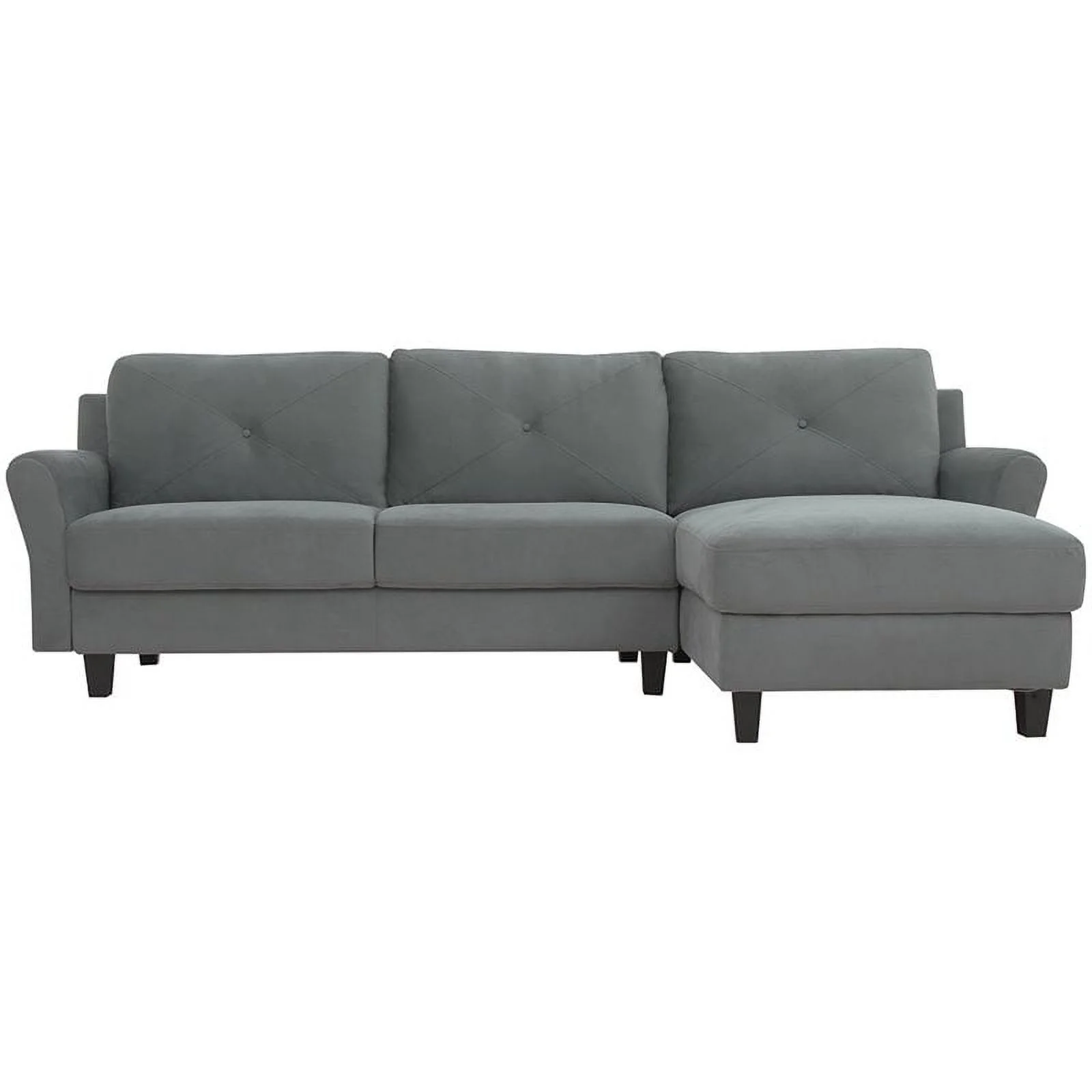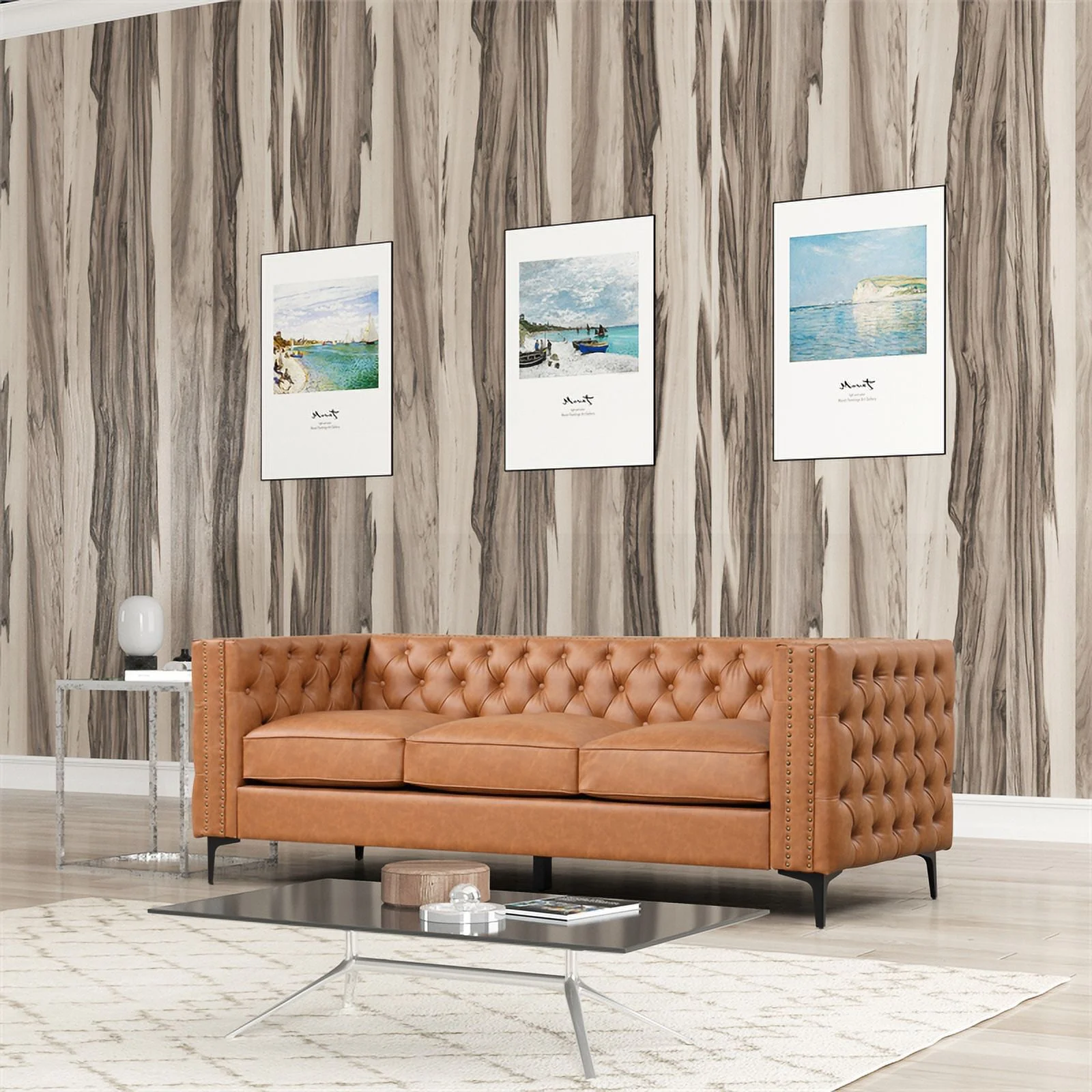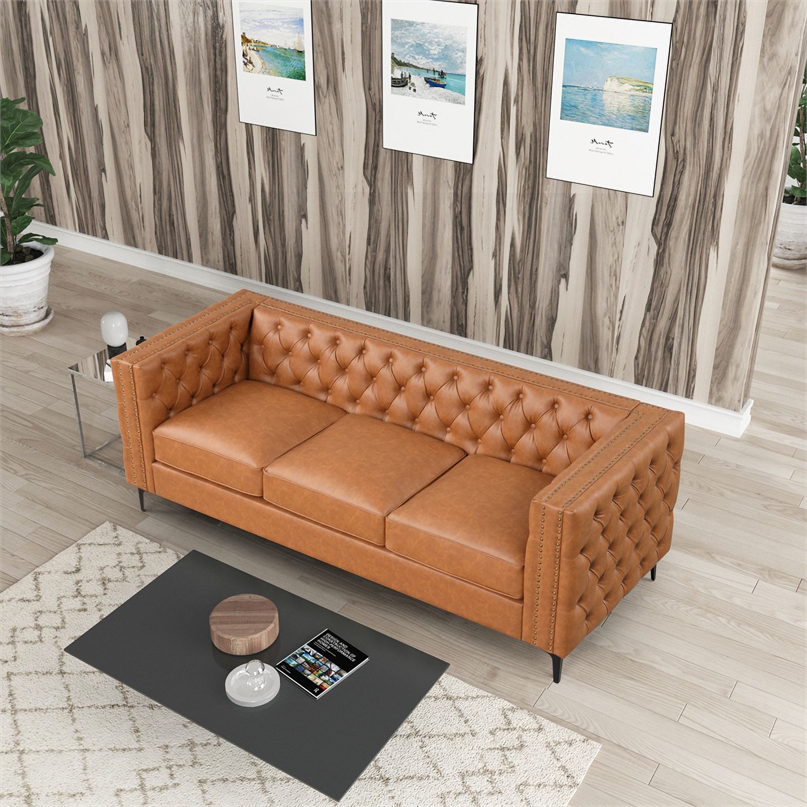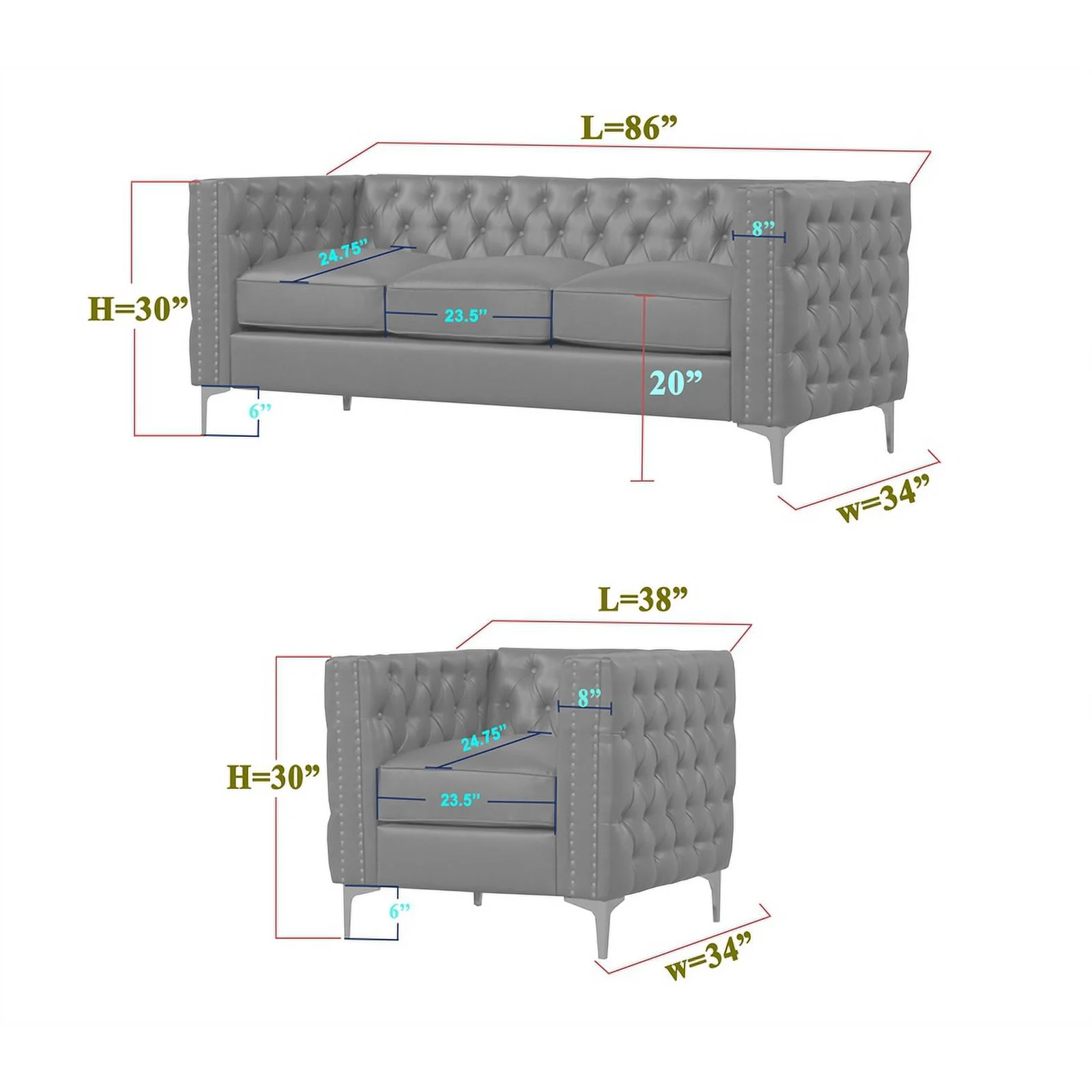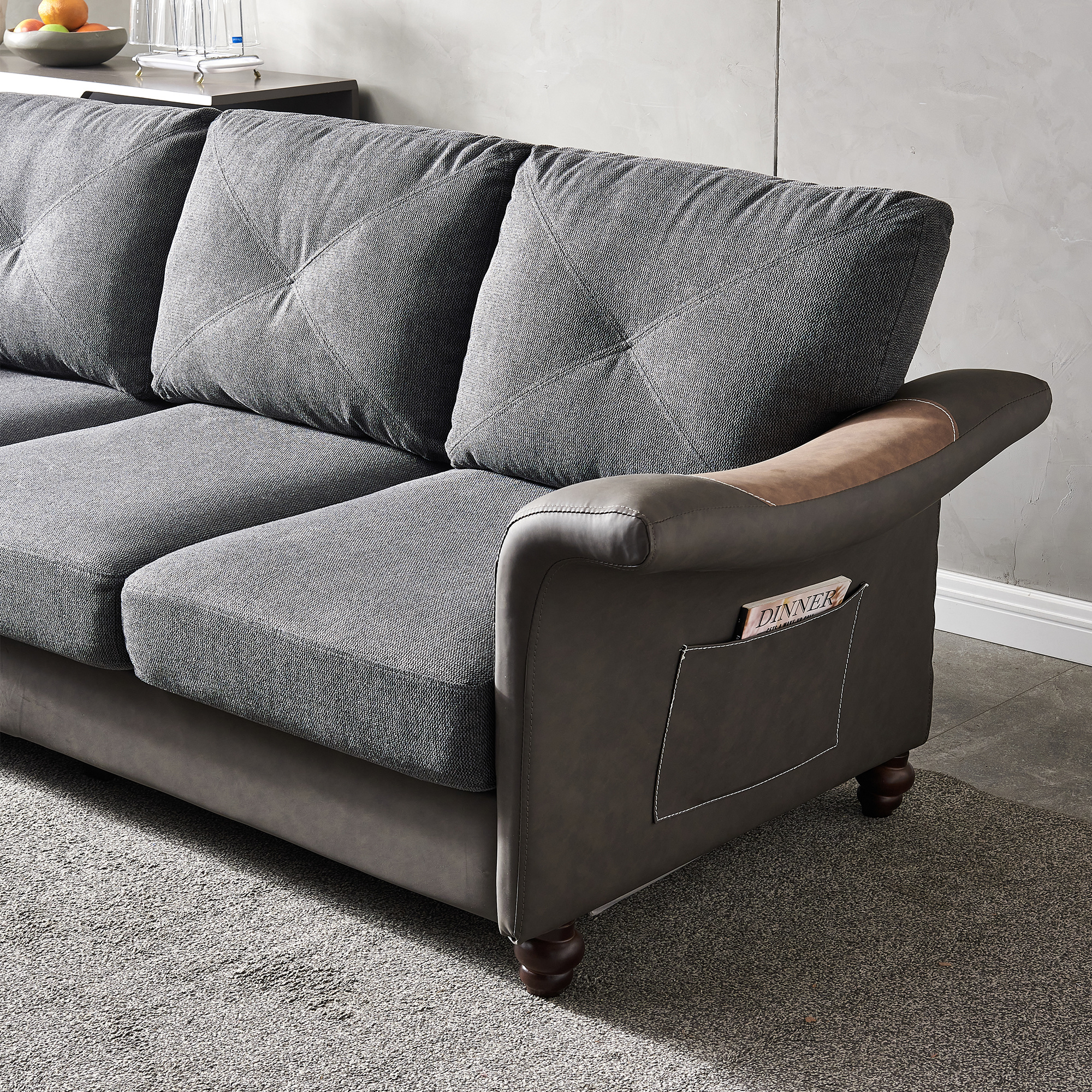 LANTRO JS Living Room Furniture Linen Fabric Leather with Wood Leg Sofa (Dark Grey)