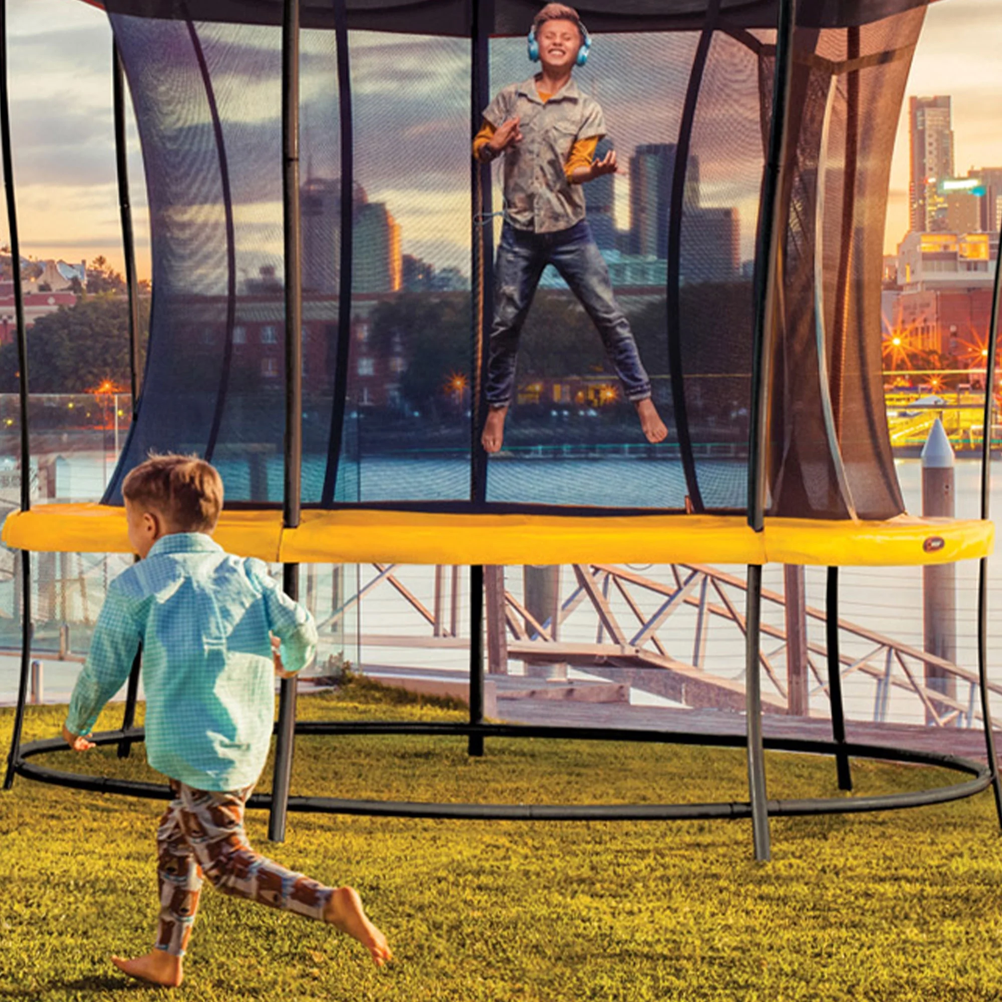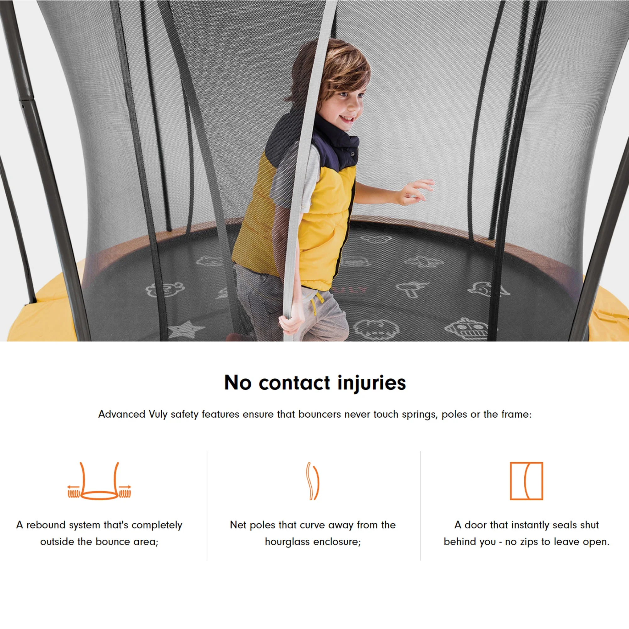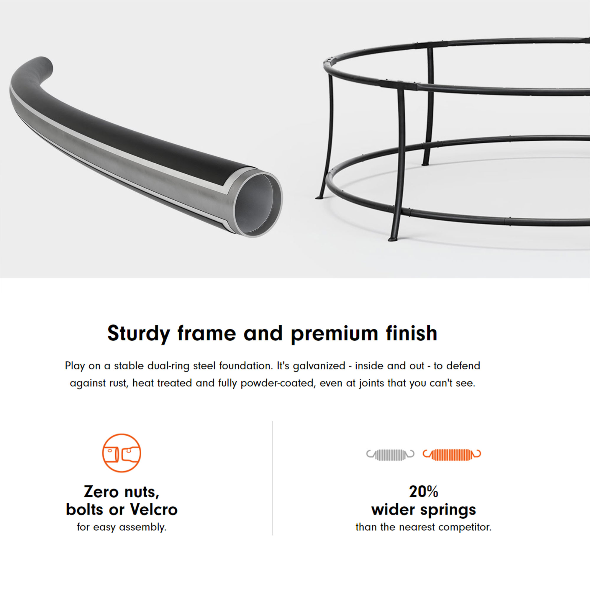 Vuly Trampoline 10 Ft Lift 2 with Zip Free Door and HexVex Game Mat, Black