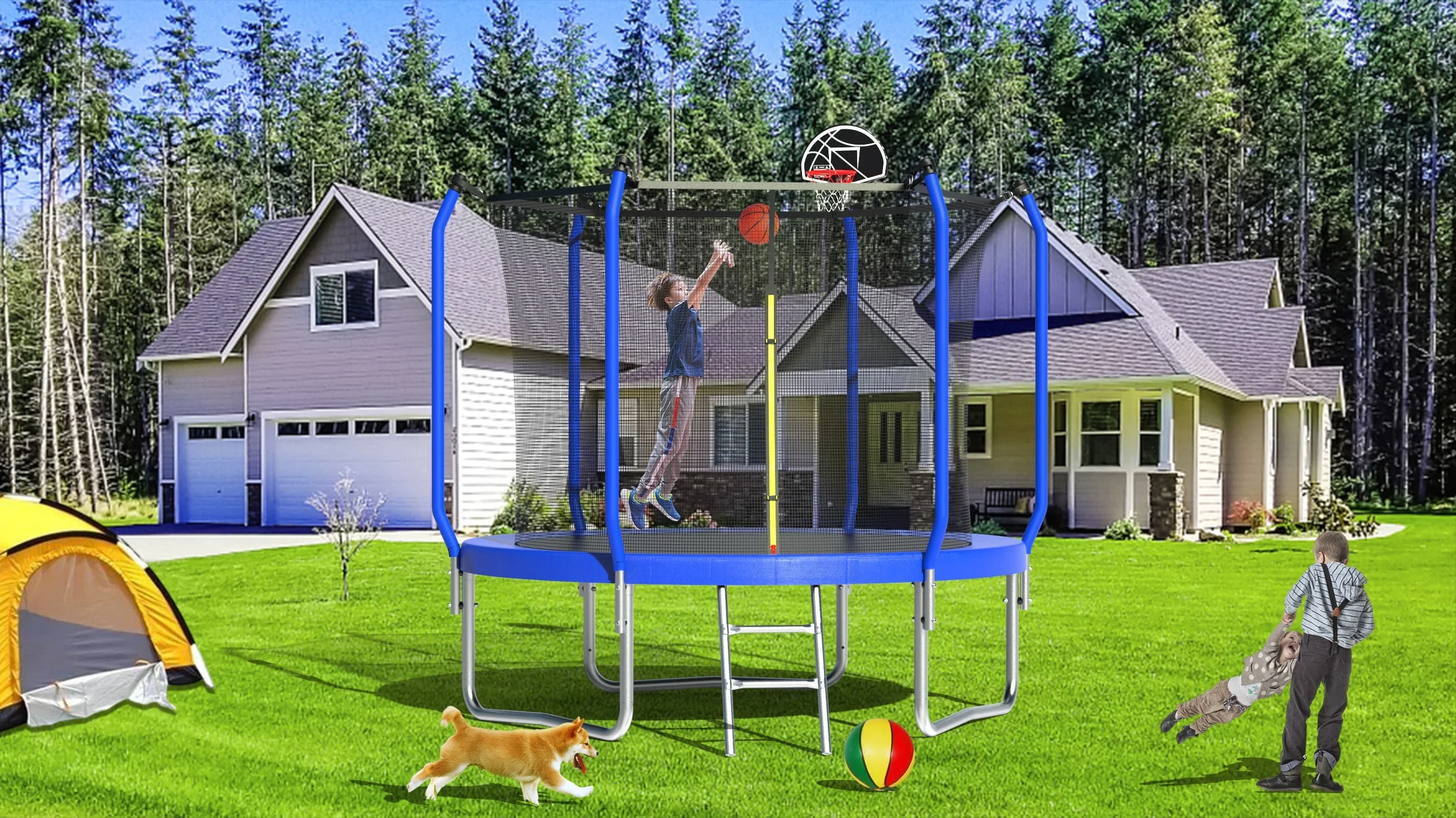 SogesPower 10FT Trampoline with Basketball Hoop, Outdoor Trampoline with Enclosure Net