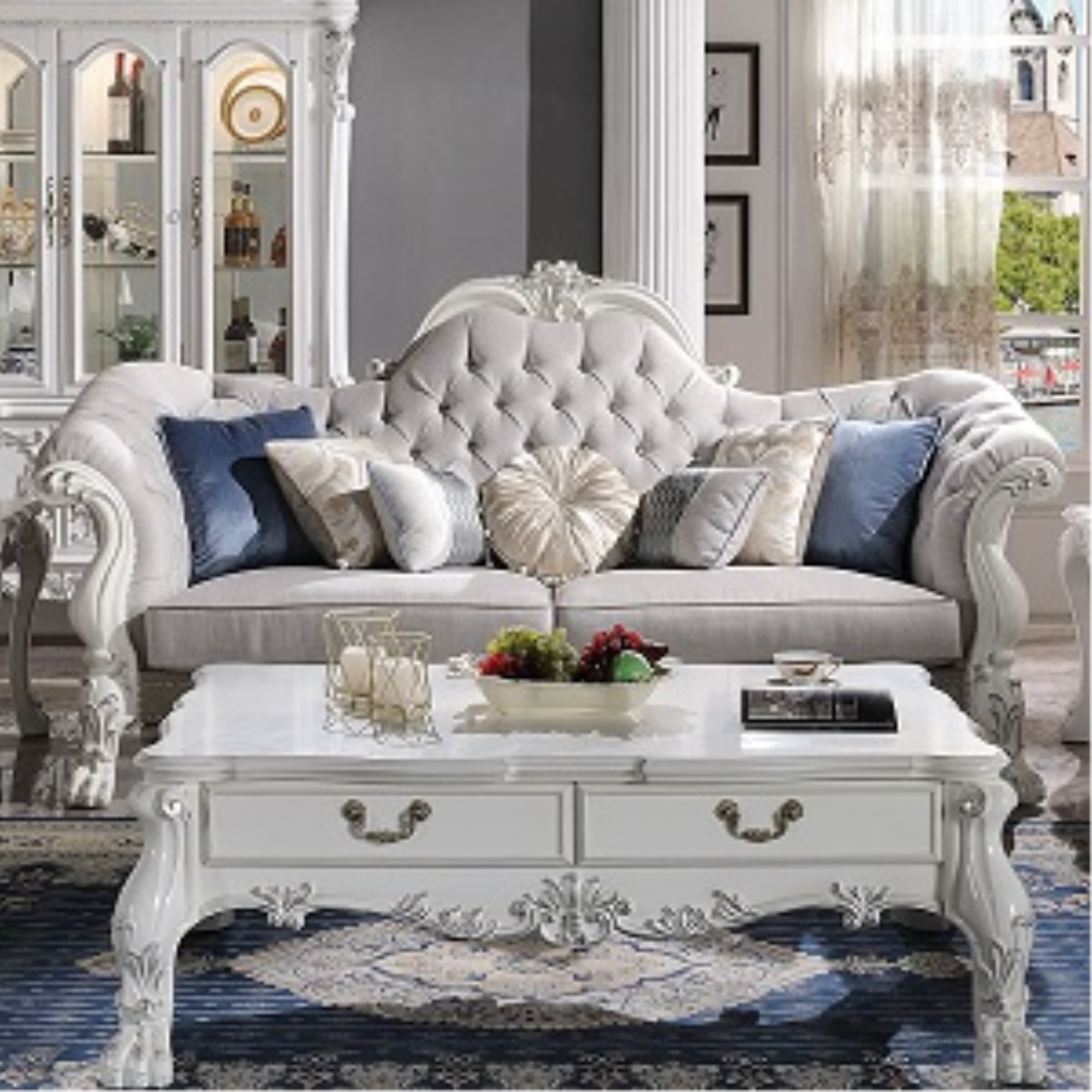ACME Dresden Sofa W/7 Pillows, Synthetic Leather & Bone White Finish