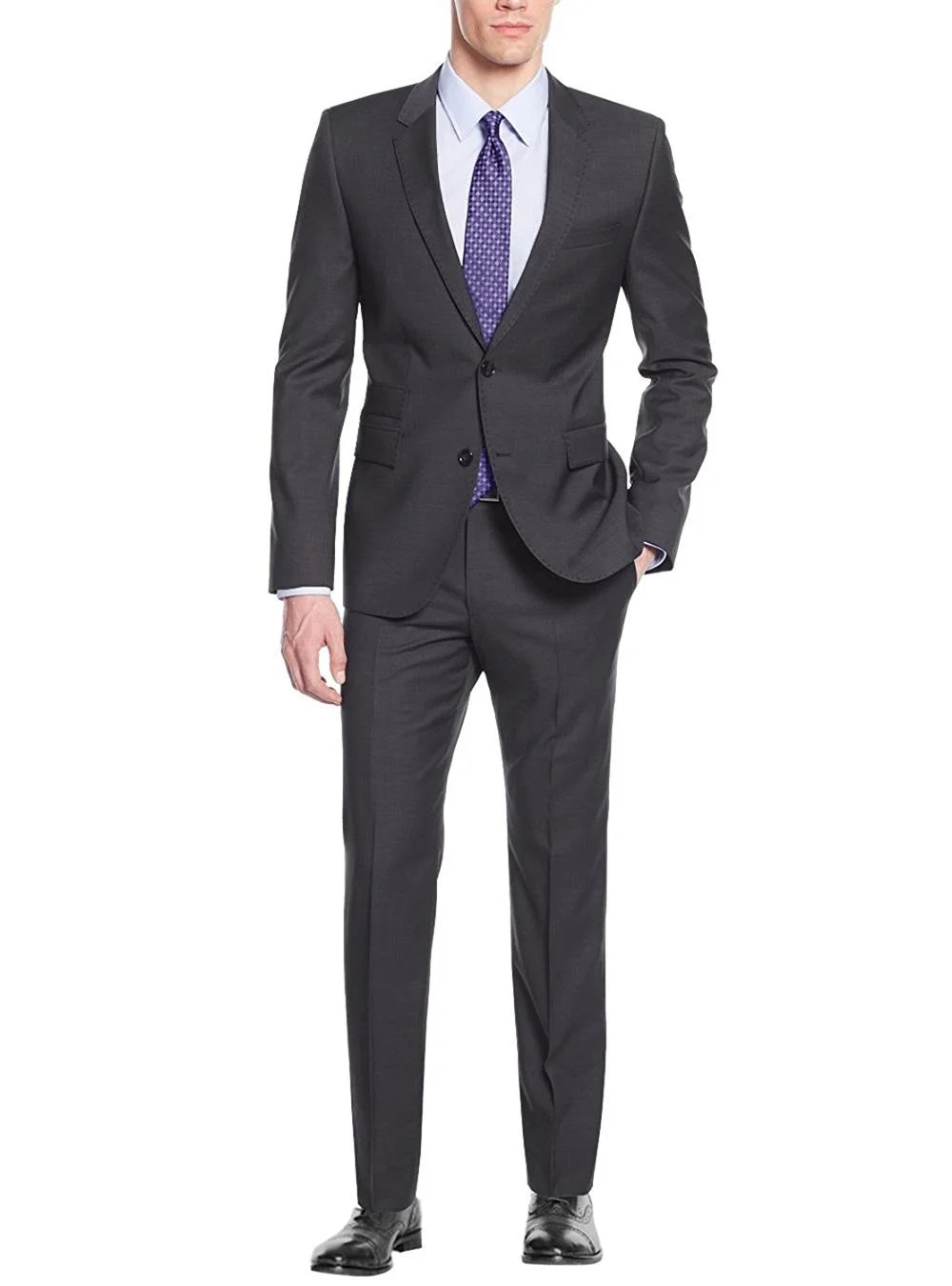 Nicoletti Men's Suit Two Button 2 Piece Working Buttonholes Jacket Modern Fit Charcoal