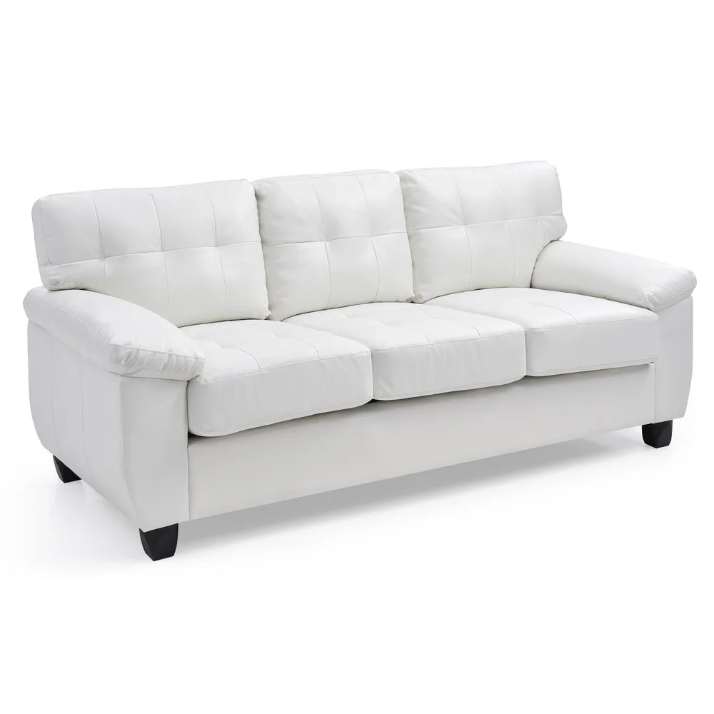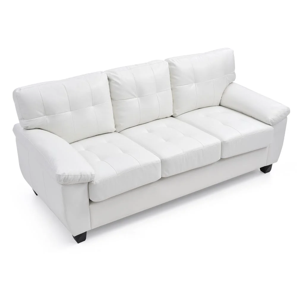 Passion Furniture PF-G907A-S 78 in. Gallant Flared Arm Faux Leather Straight Sofa, White