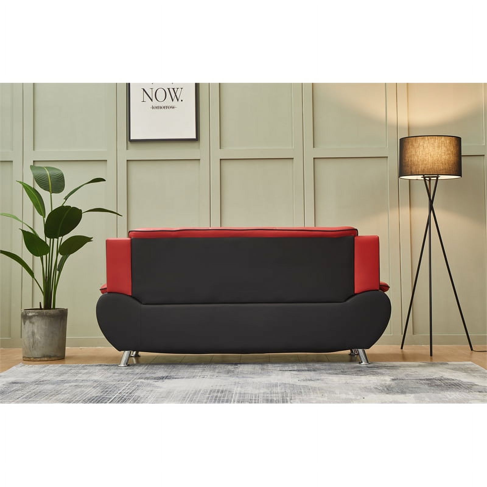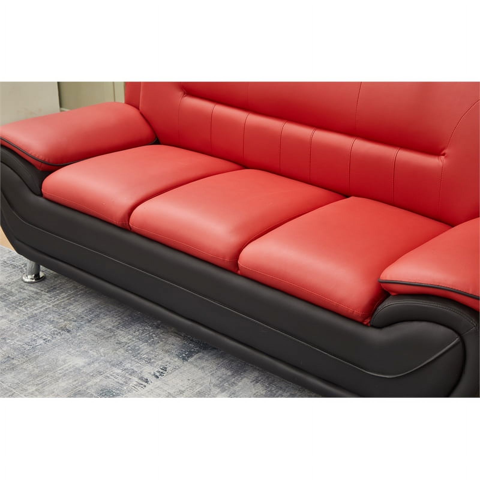 Kingway Furniture Zebra Faux Leather Sofa with Pillow Armrests in Black/Red