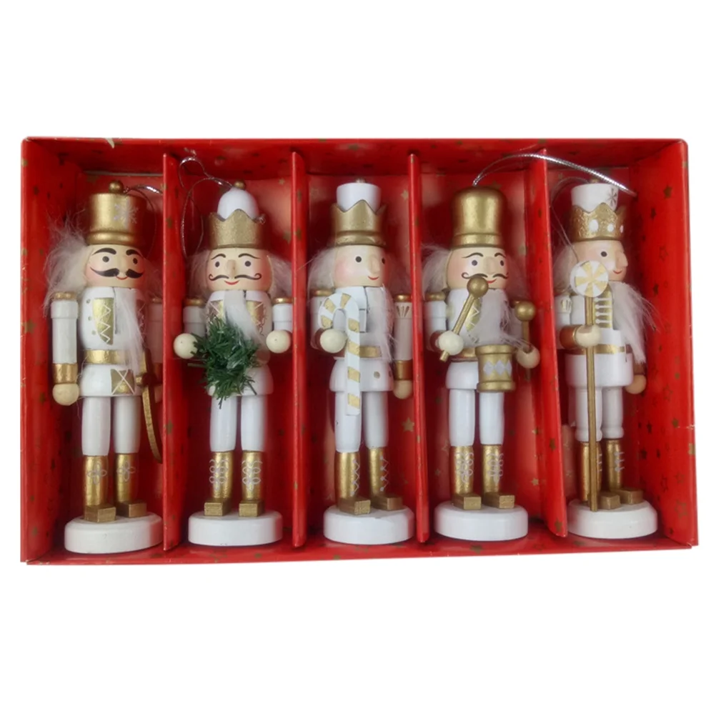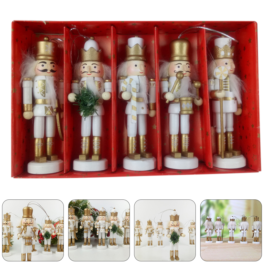 5pcs Christmas Wooden Decor Christmas Nutcracker Doll Pendant Hanging Ornament