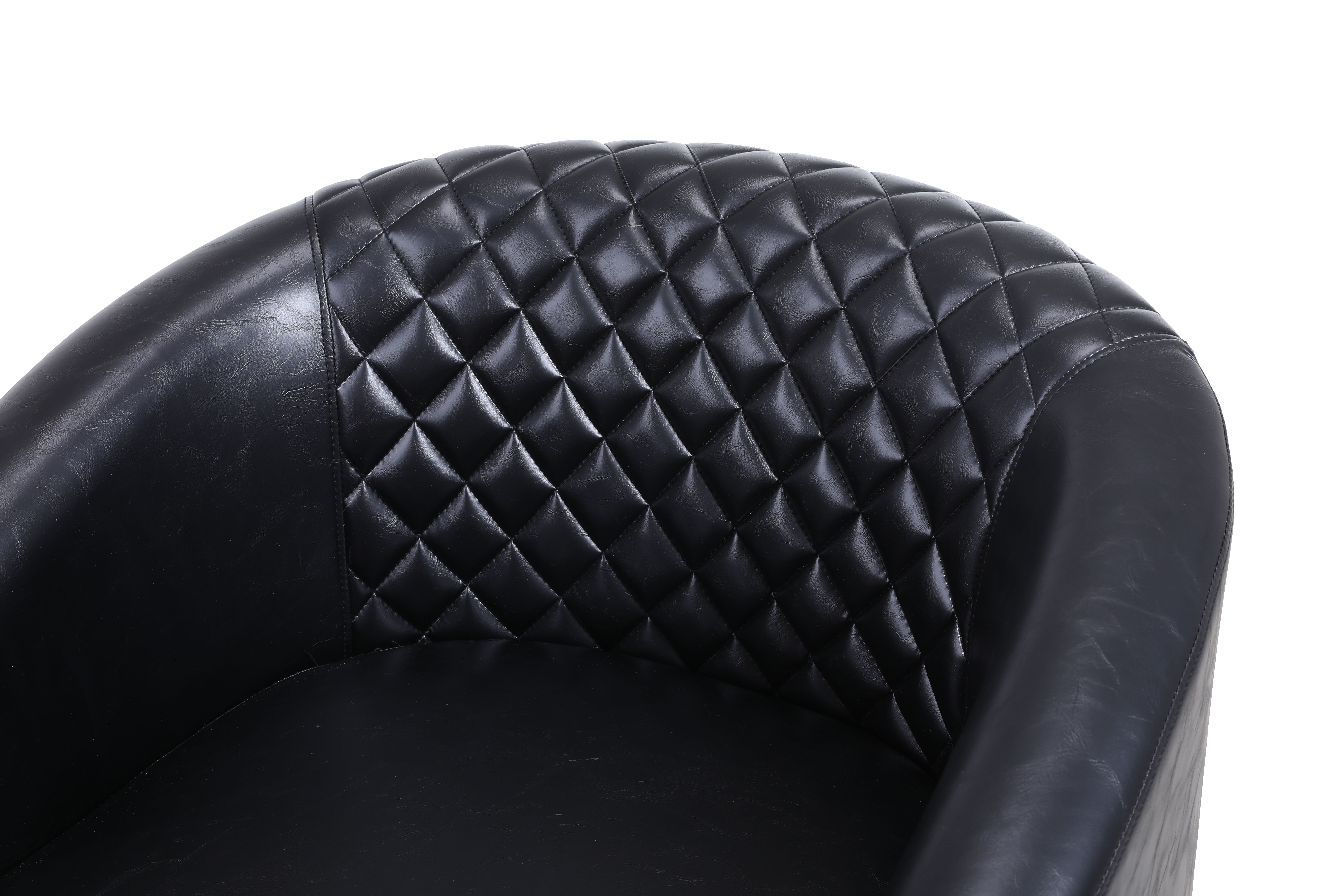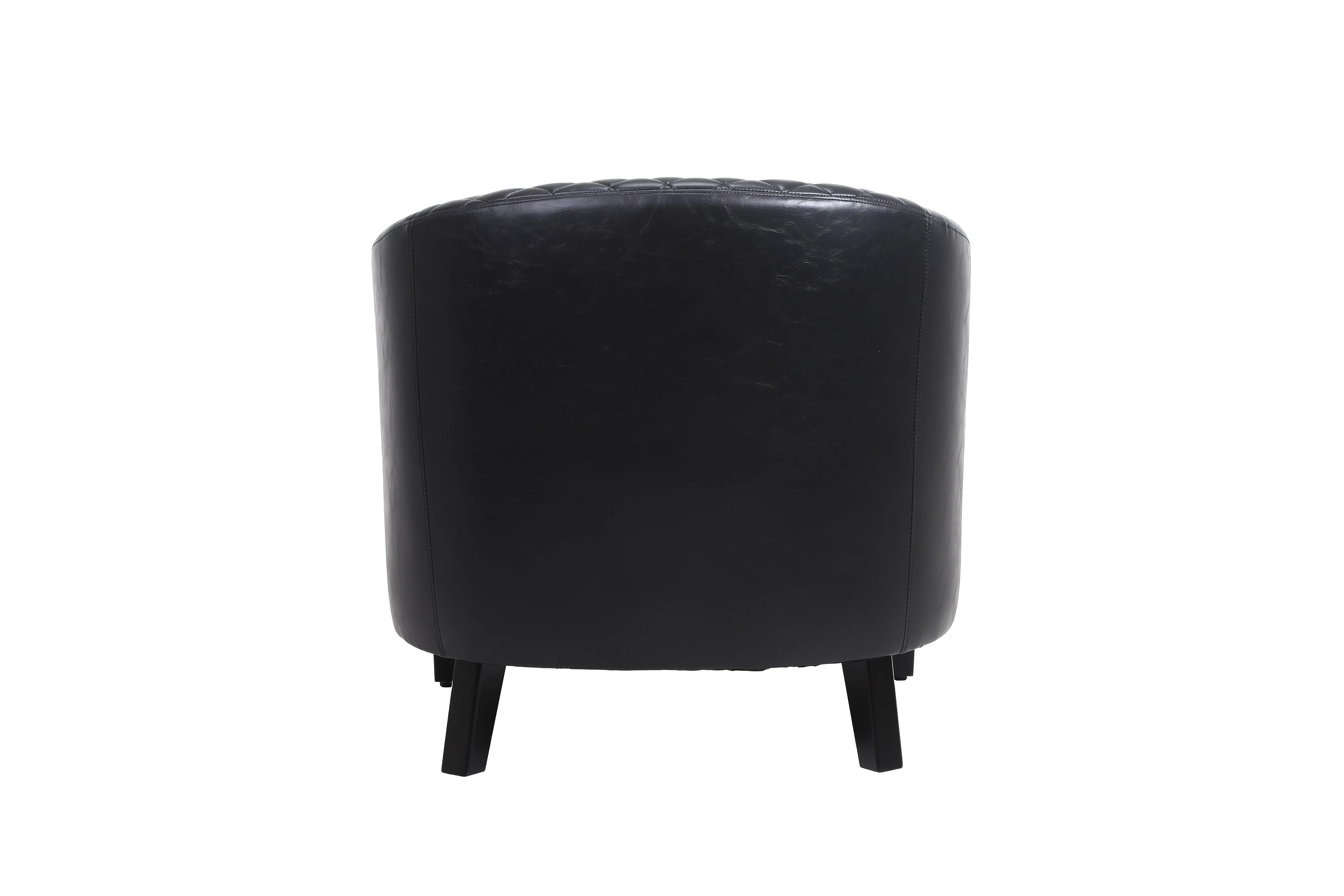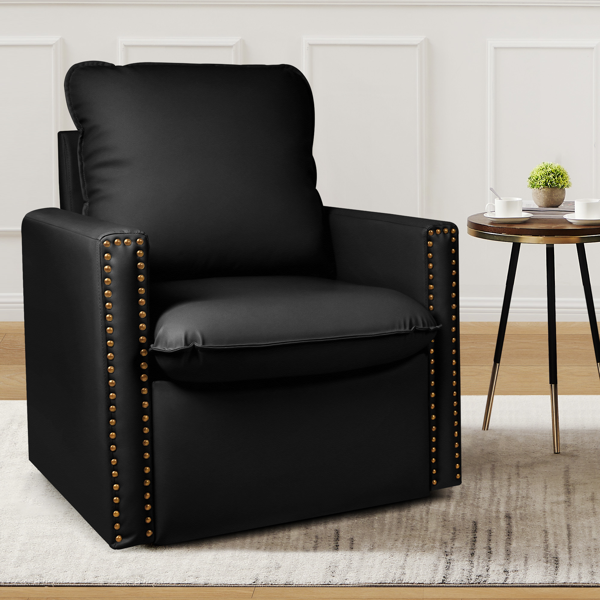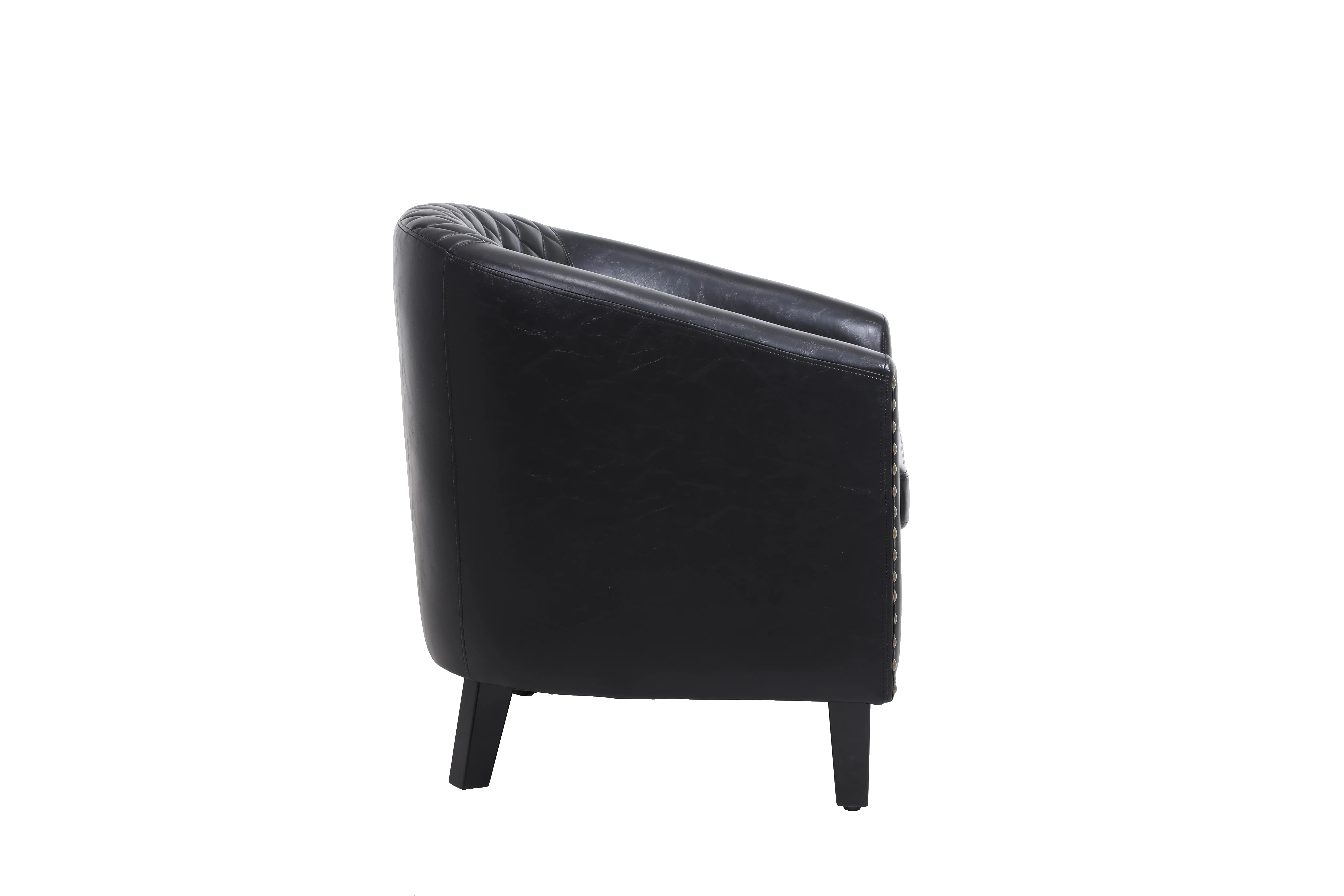 HOMEFUN Black Modern PU Leather Upholstered Accent Barrel Chair with Nailheads and Solid Wood Legs