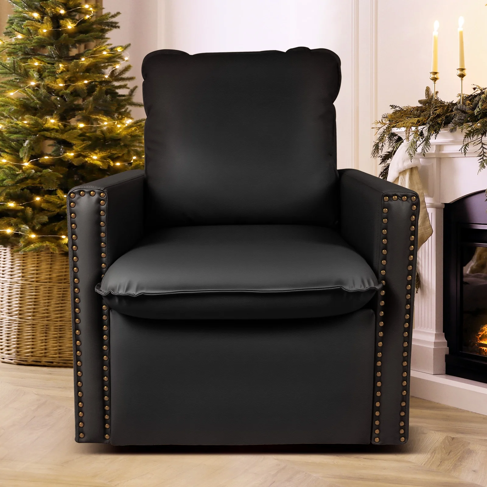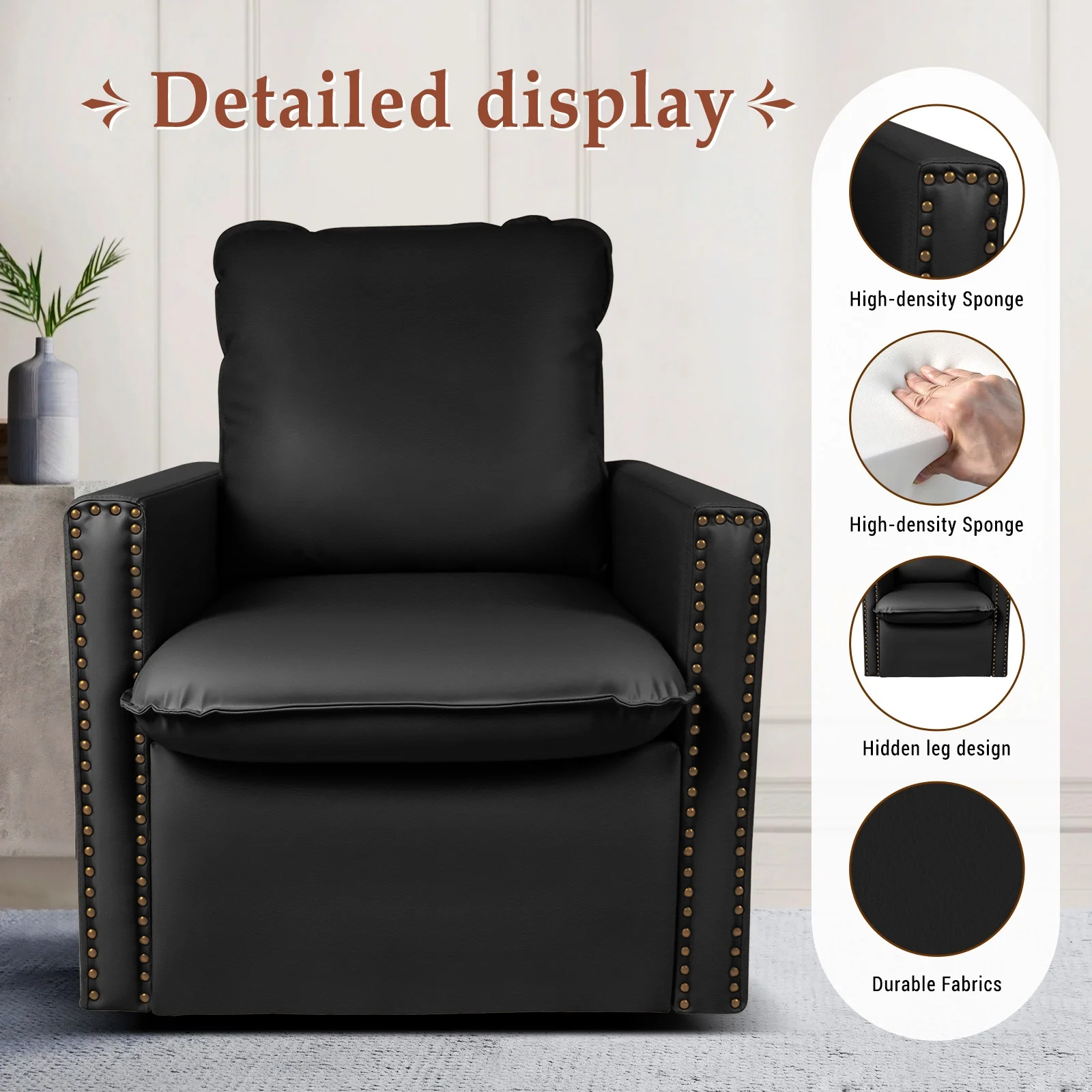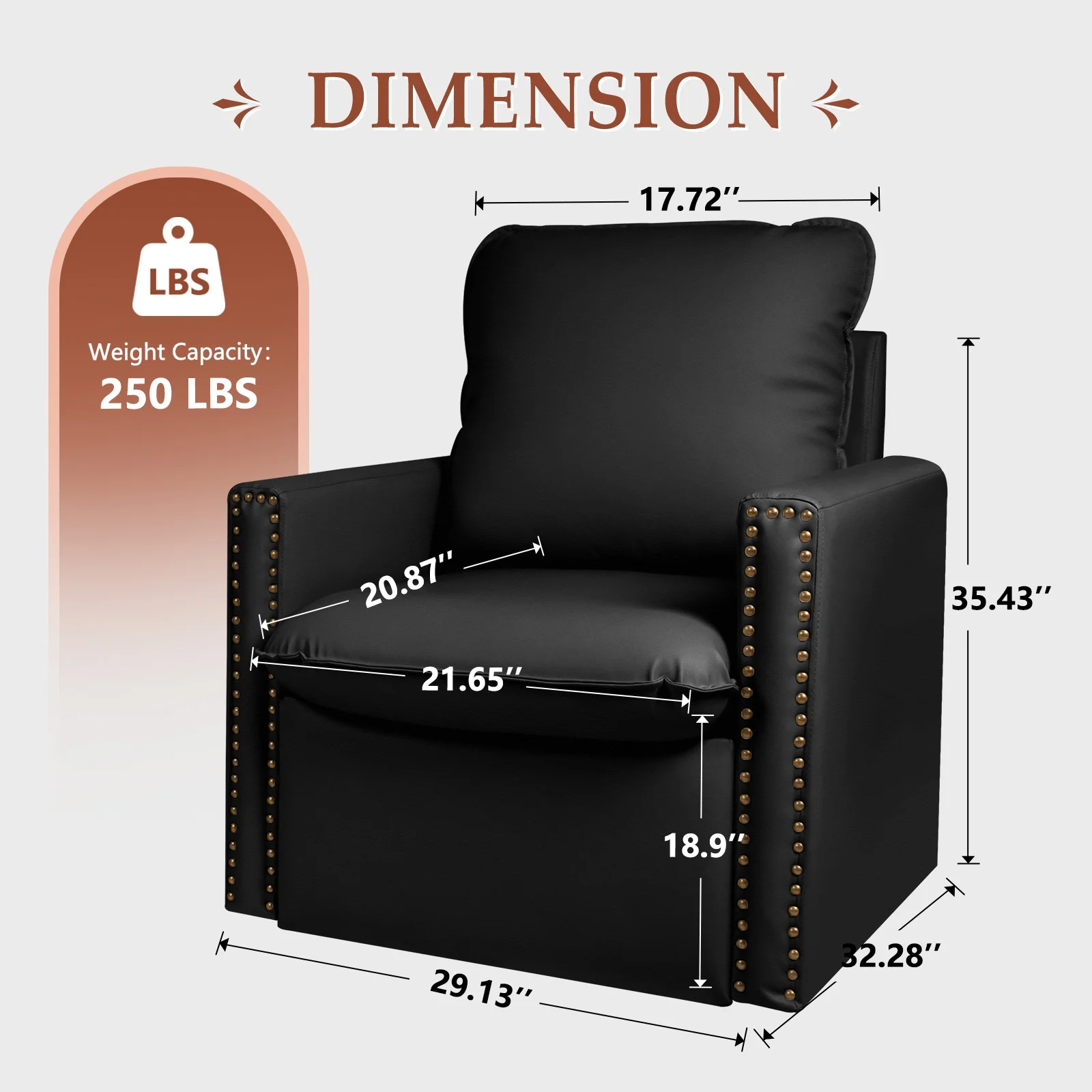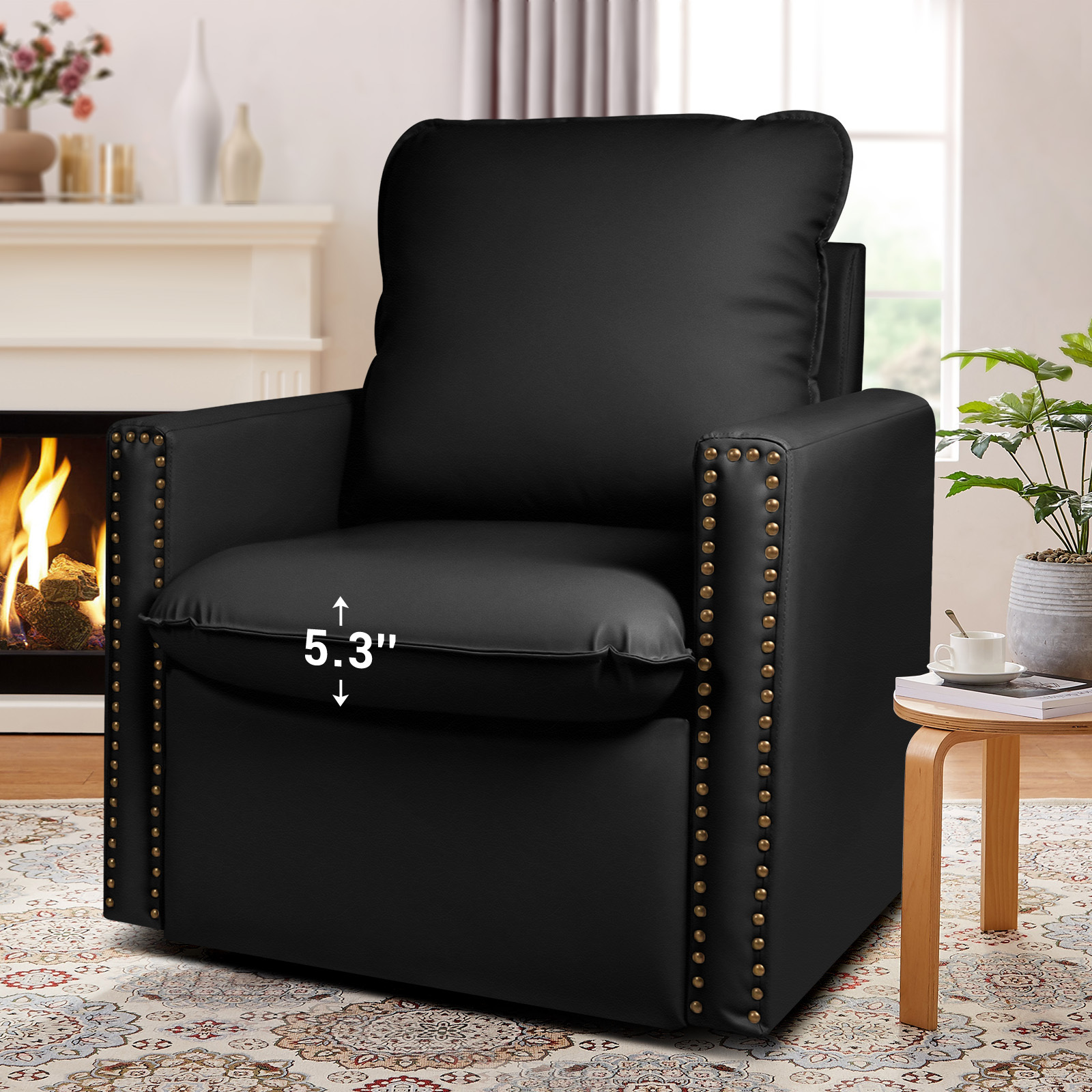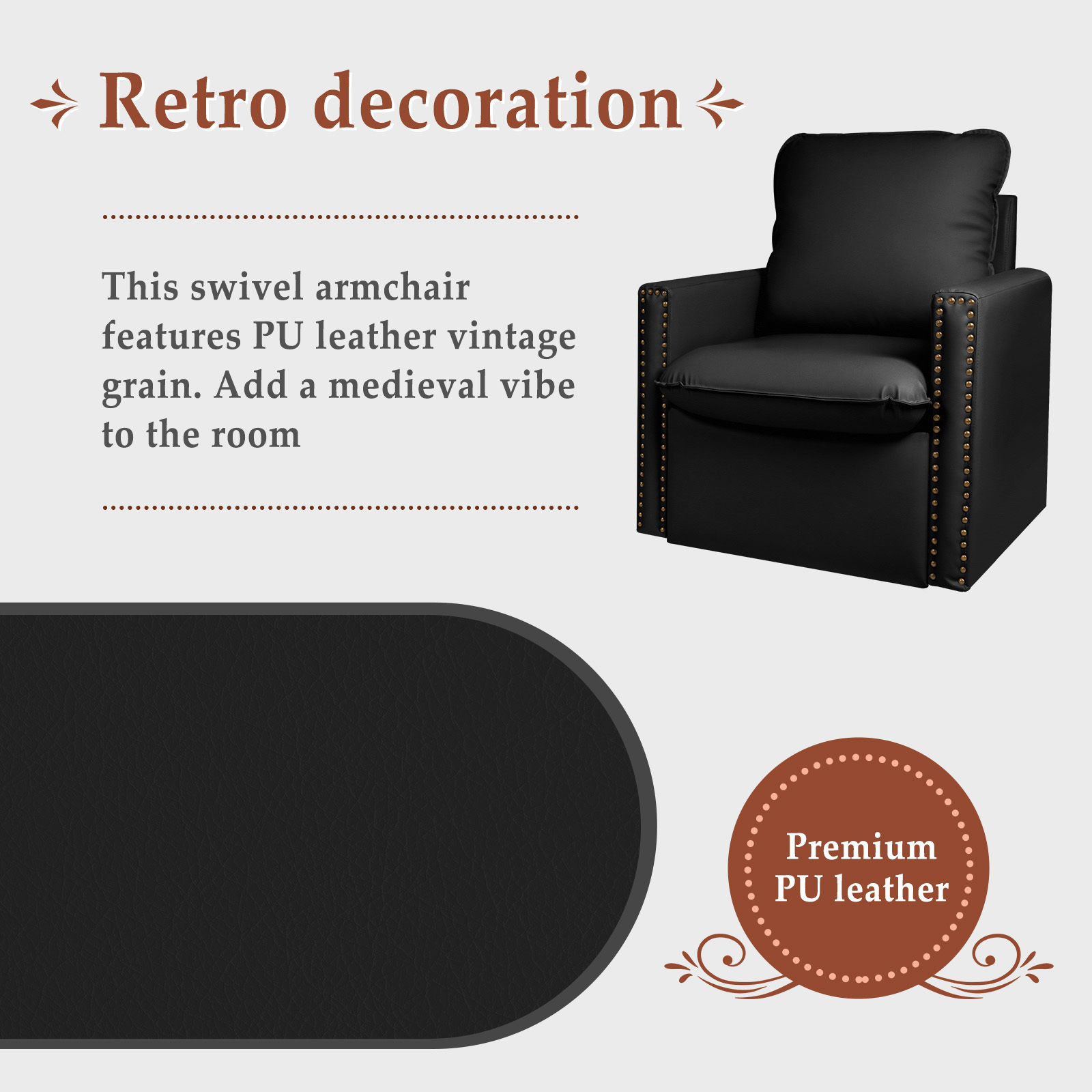 HOMEFUN Black Modern PU Leather Upholstered Accent Barrel Chair with Nailheads and Solid Wood Legs