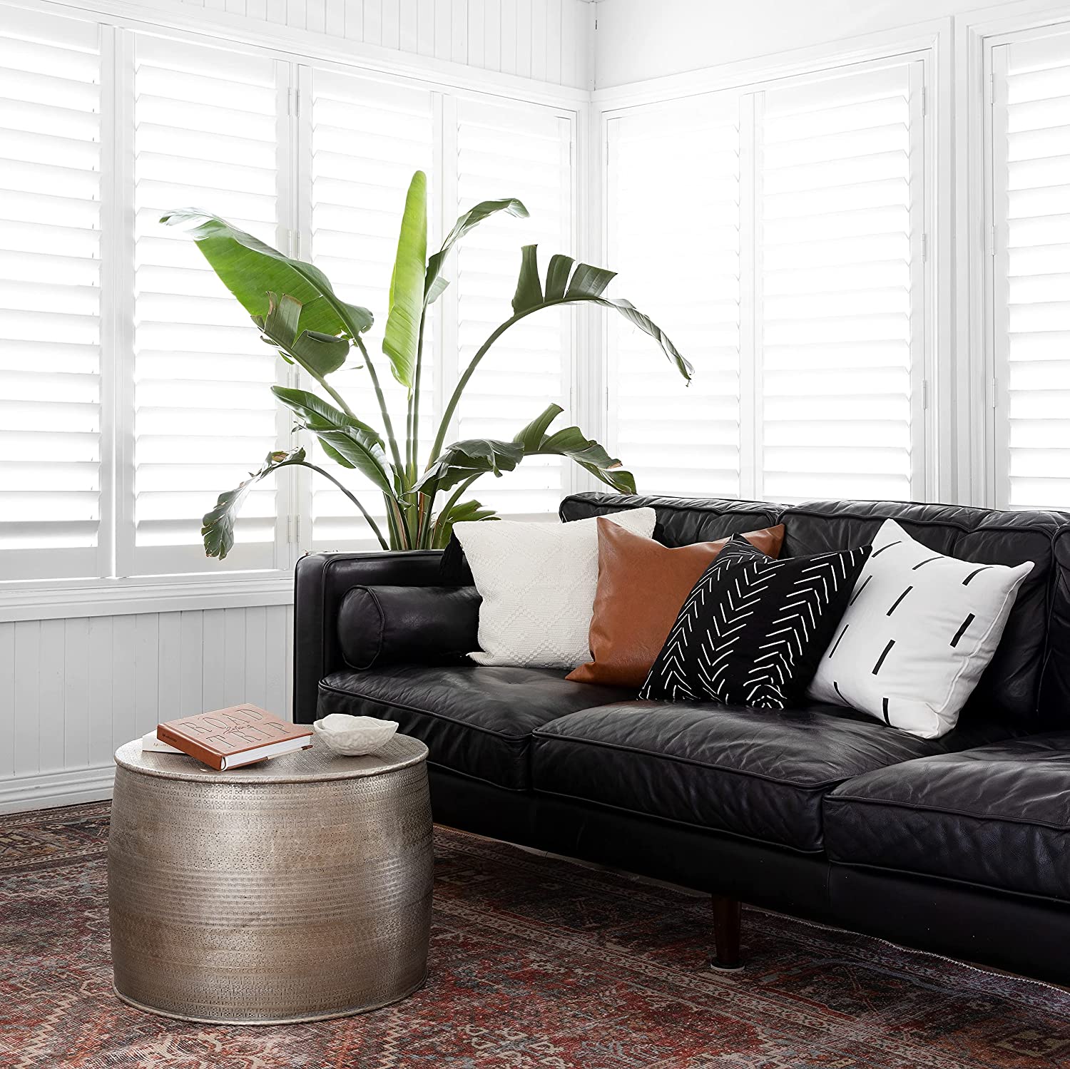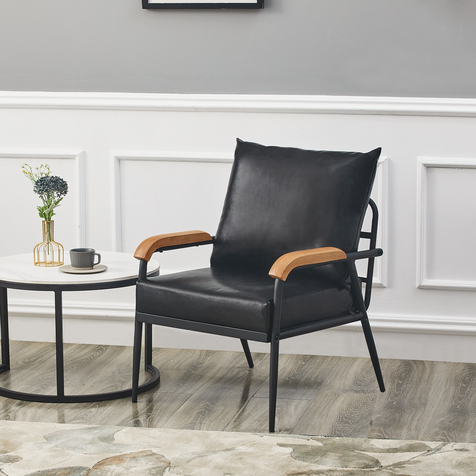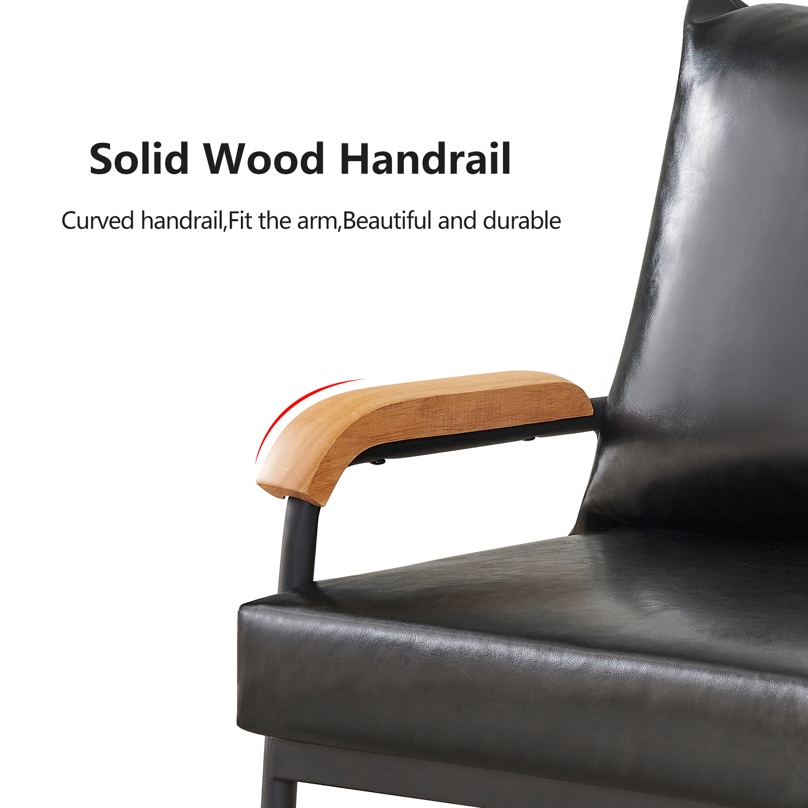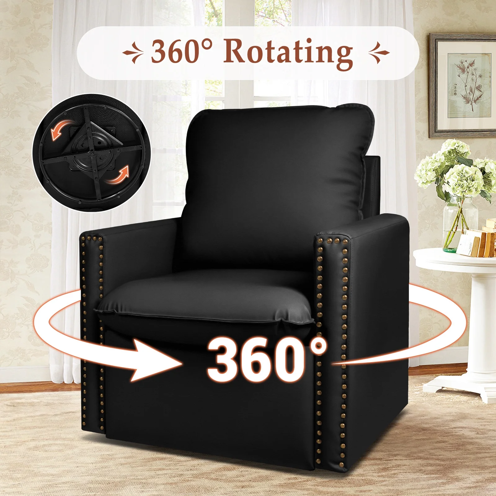 HOMEFUN Black Modern PU Leather Upholstered Accent Barrel Chair with Nailheads and Solid Wood Legs
