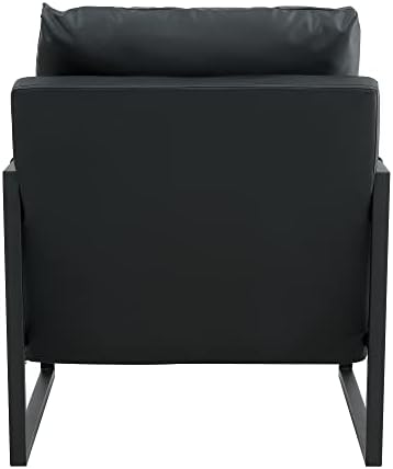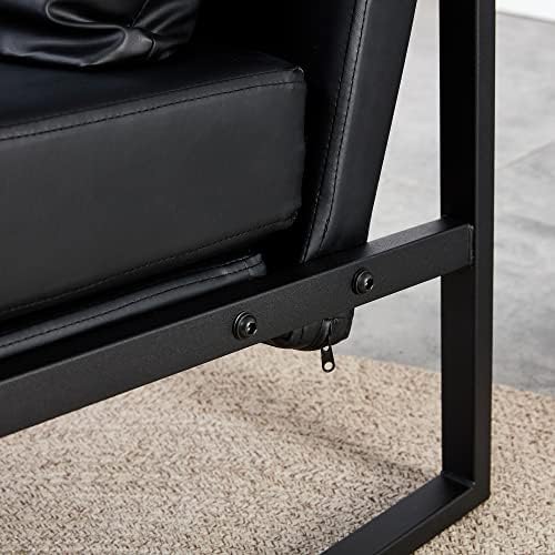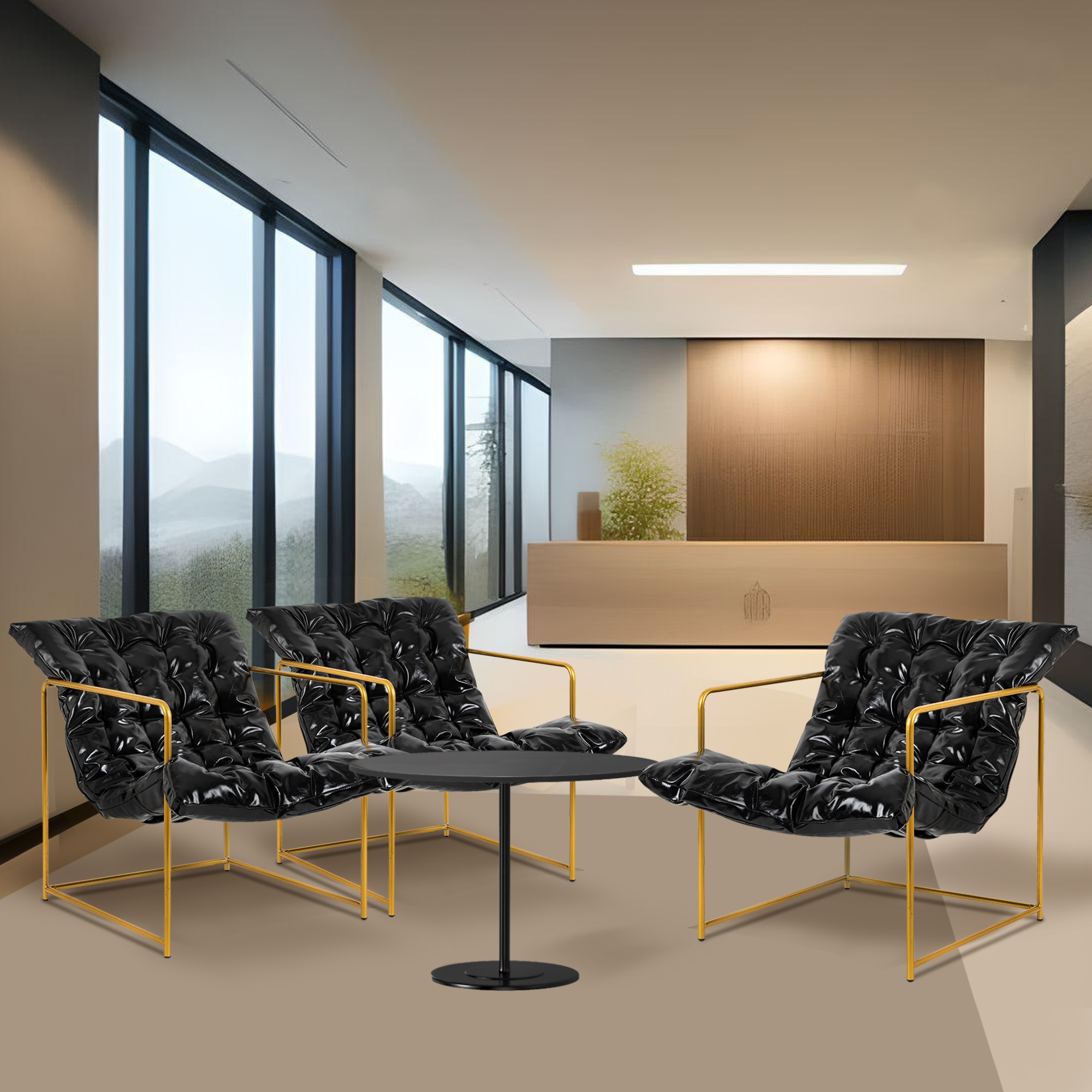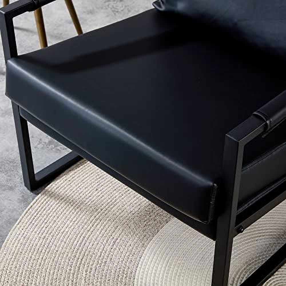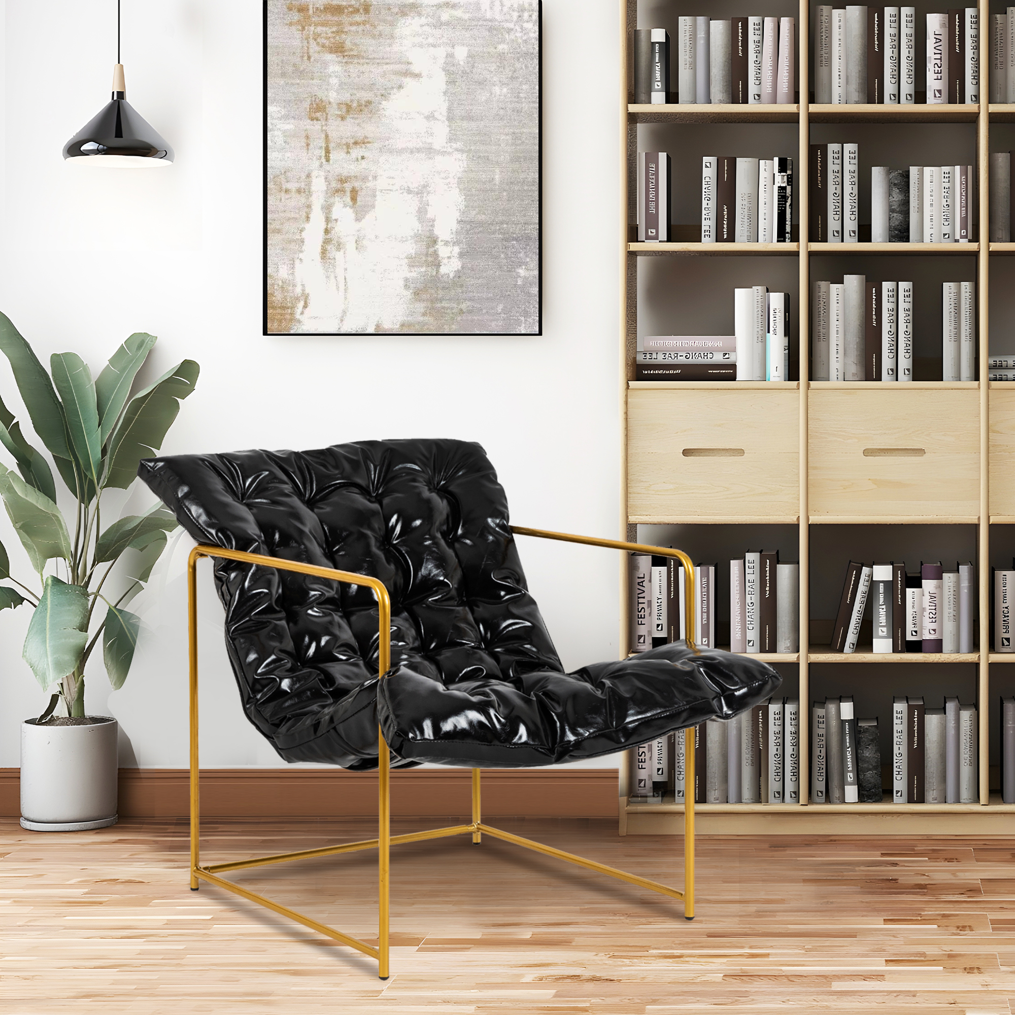 LEEJAY Modern Faux Leather Sling Chair,Gold Metal Frame Armchair for Living Room,Black