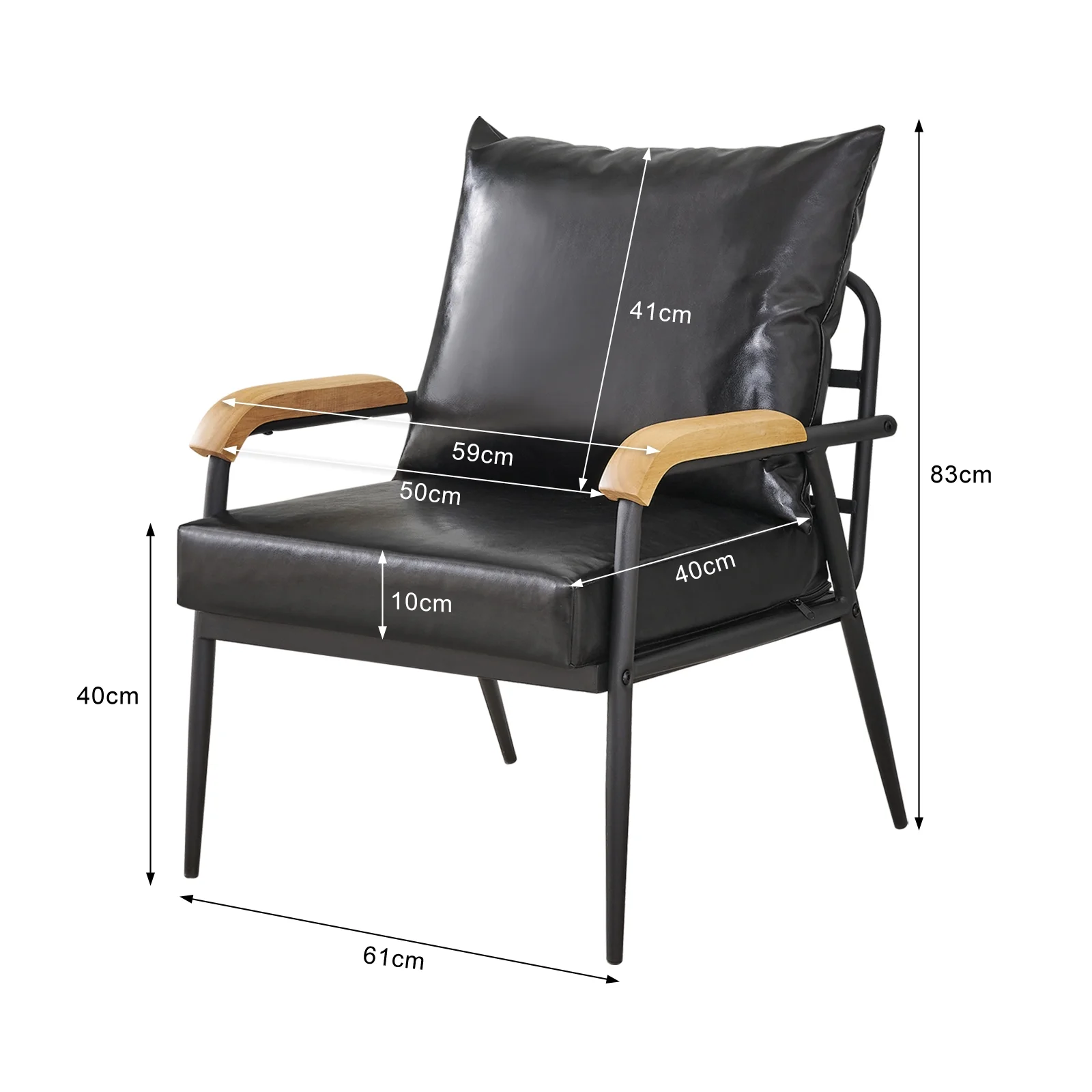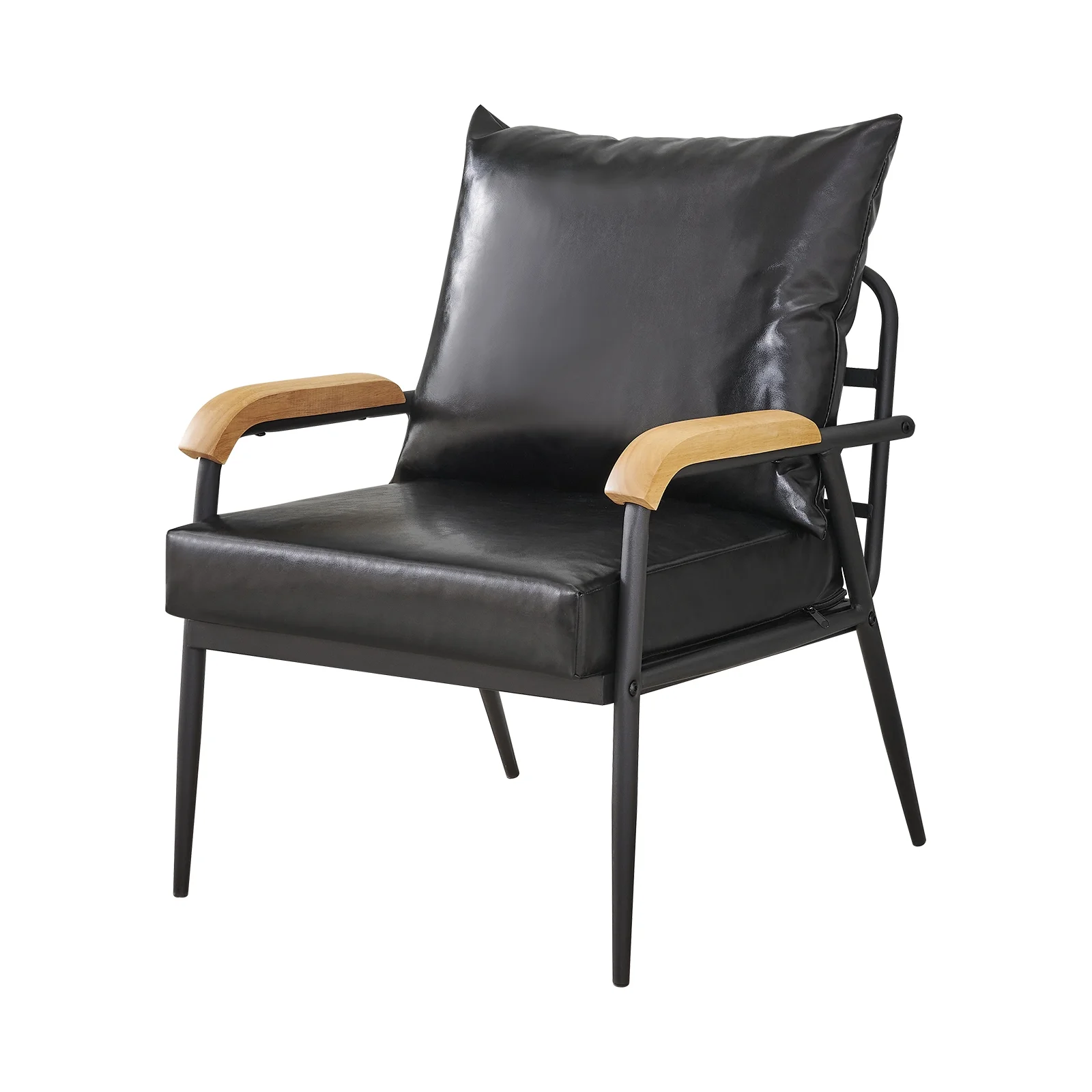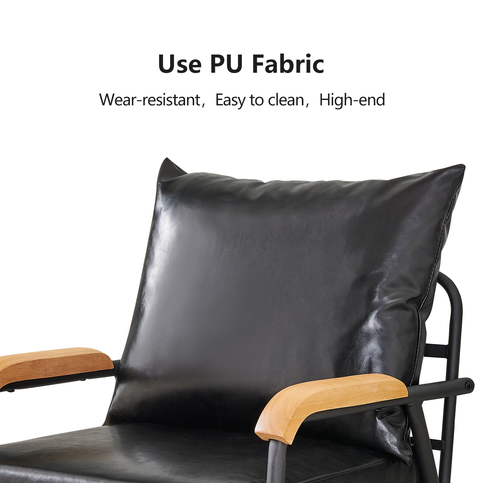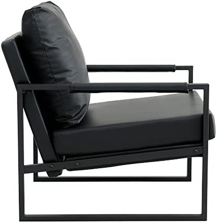 LEEJAY Modern Faux Leather Sling Chair,Gold Metal Frame Armchair for Living Room,Black