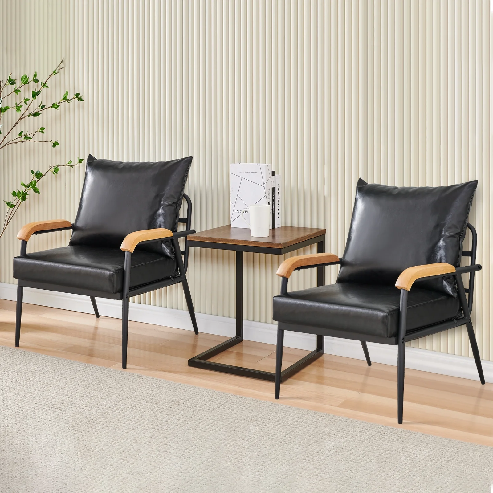 LEEJAY Modern Faux Leather Sling Accent Chair Set of 2,Gold Metal Frame Armchair for Living Room,Black
