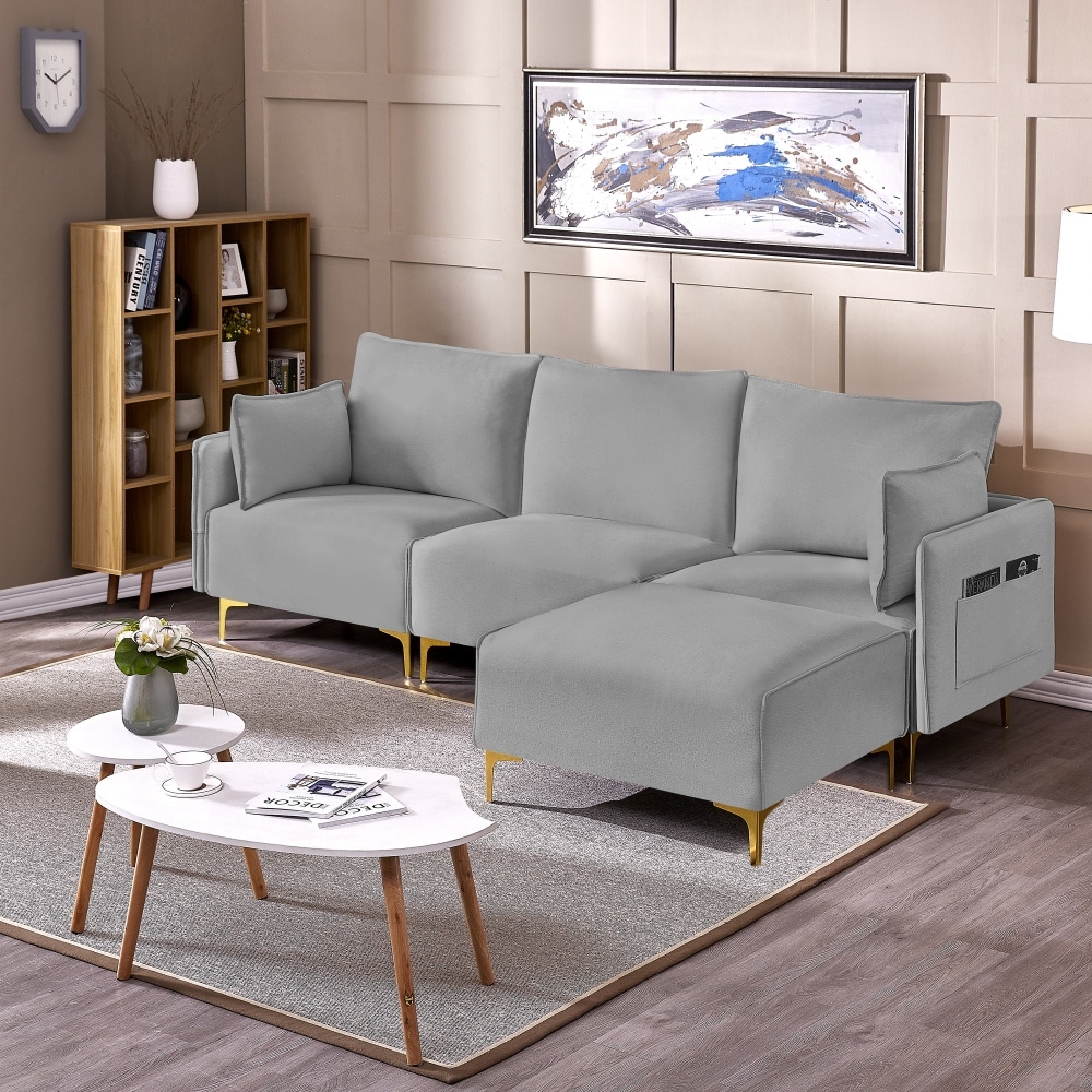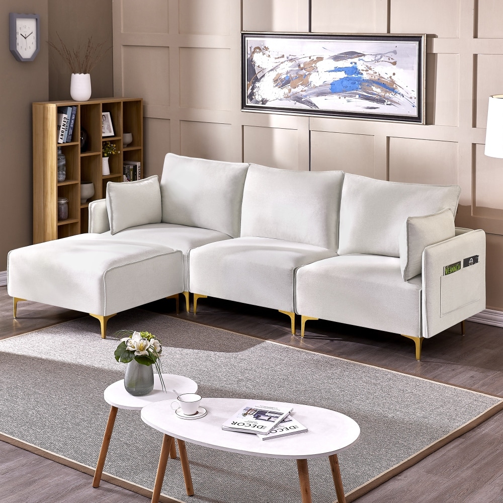 4 Piece Patio Sectional Wicker Rattan Outdoor Furniture Sofa Set with Storage Box Brown